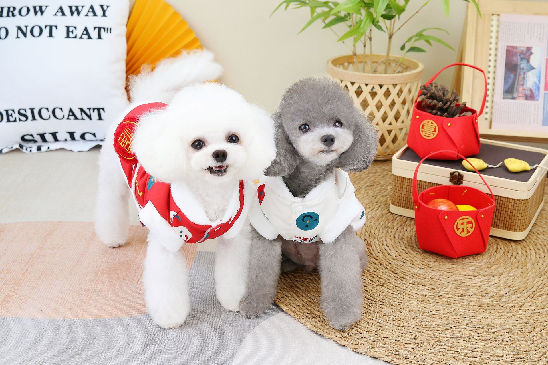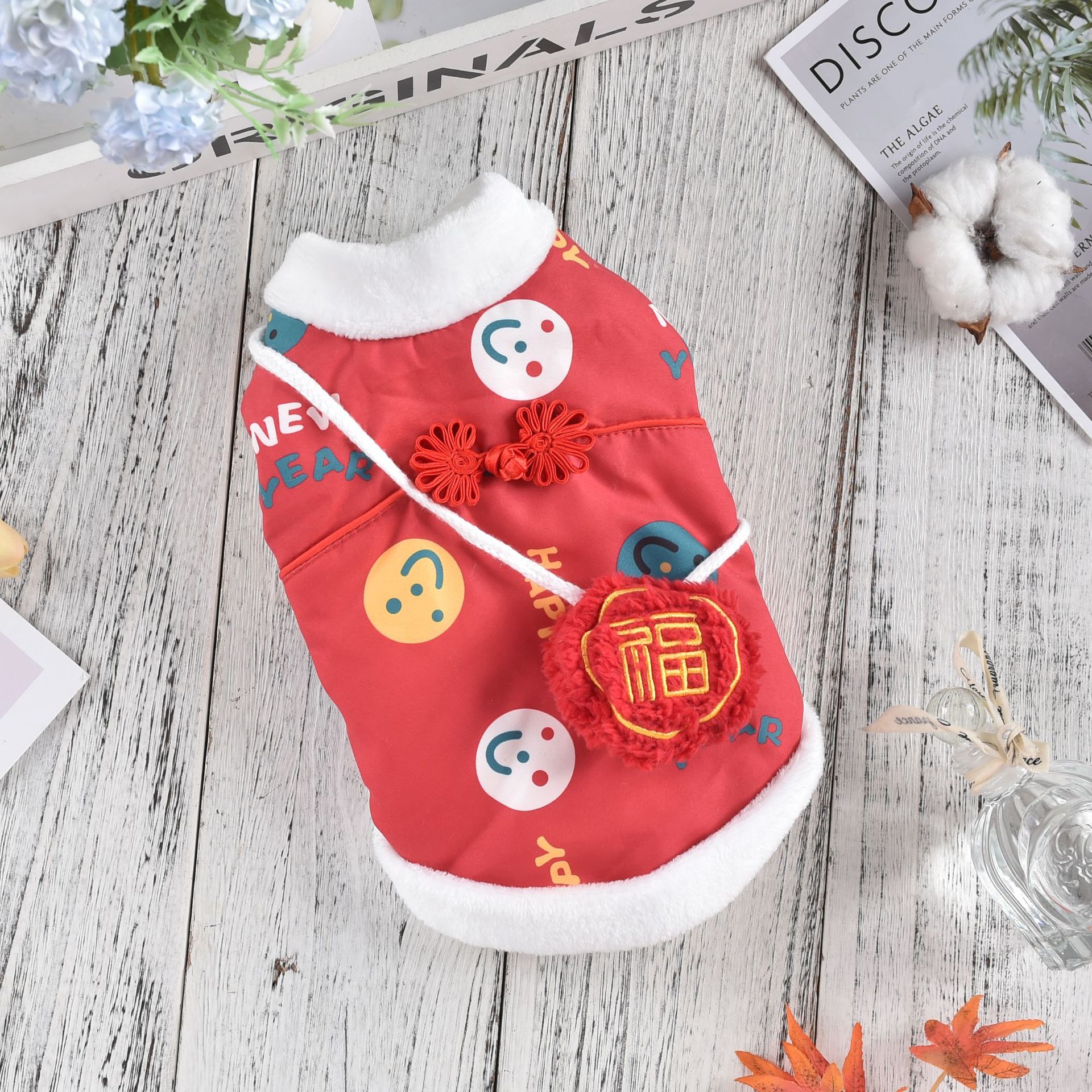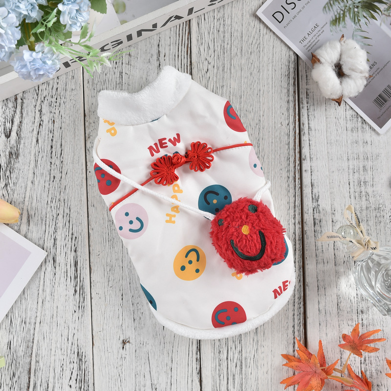 공장 공급 스마일 새해 조끼 코트 개 의류 개 테디 코르키 폴라 양털 애완 동물 의류