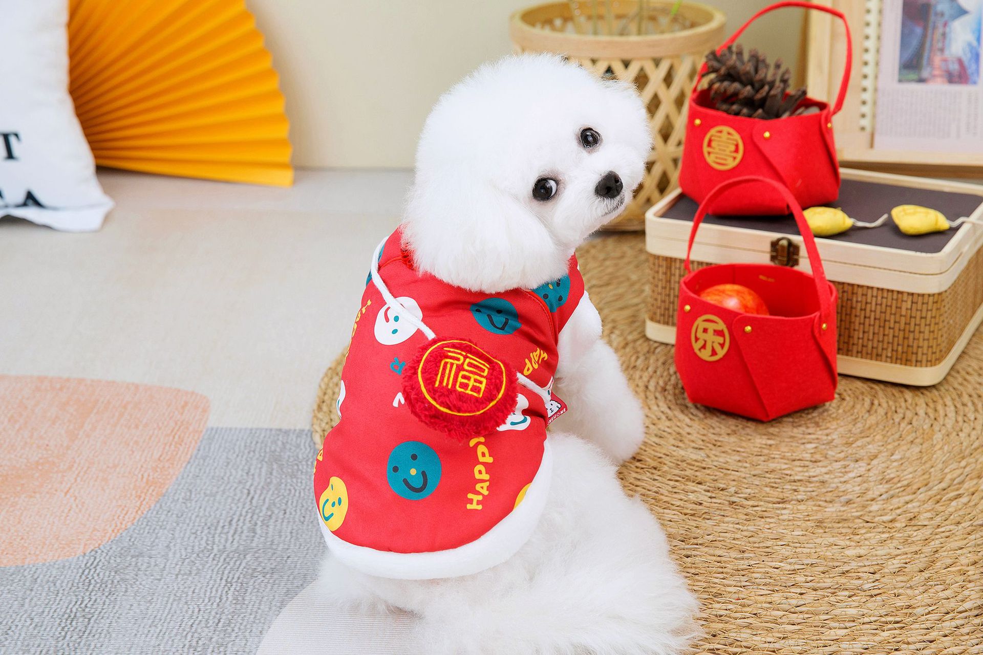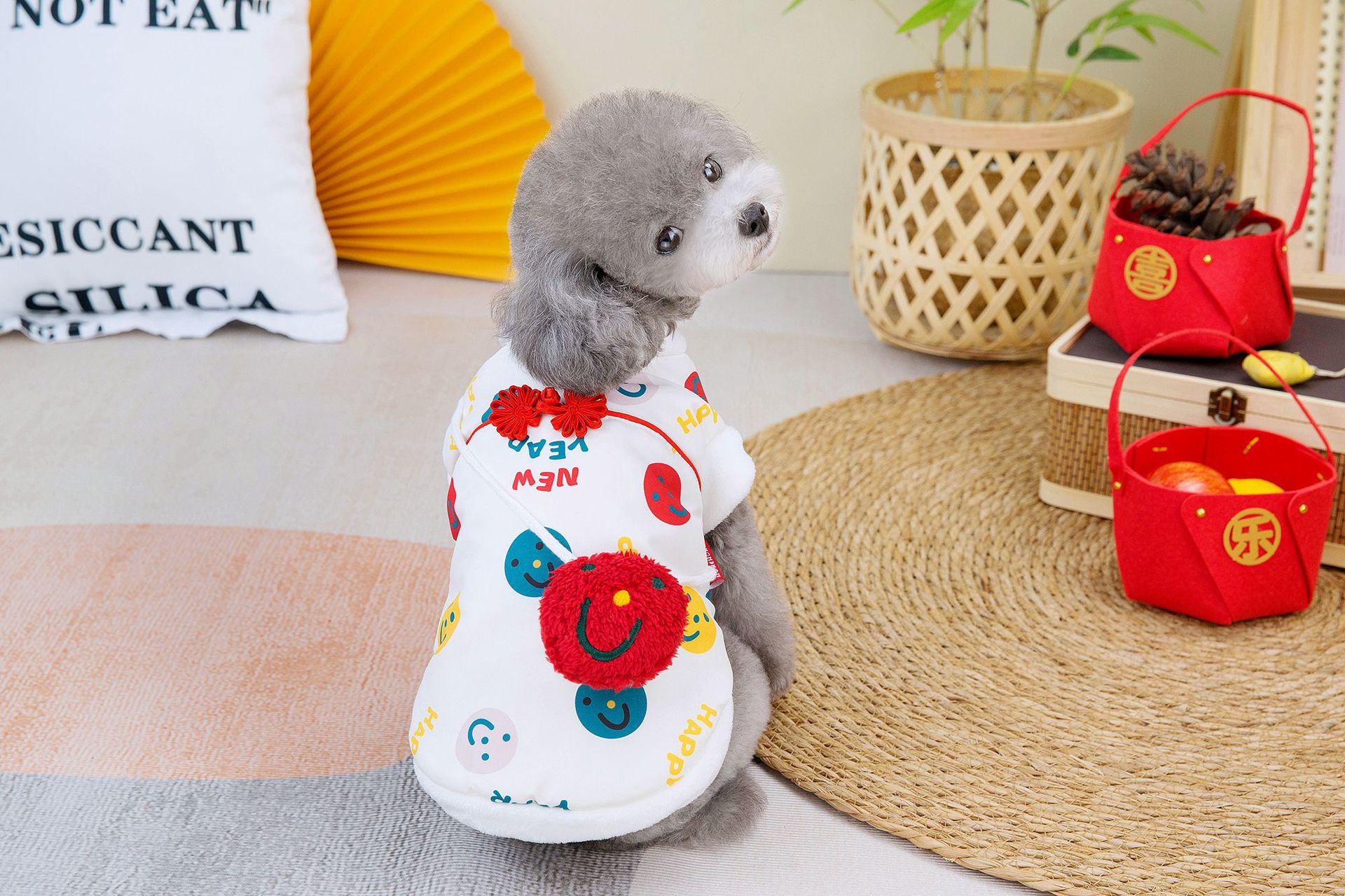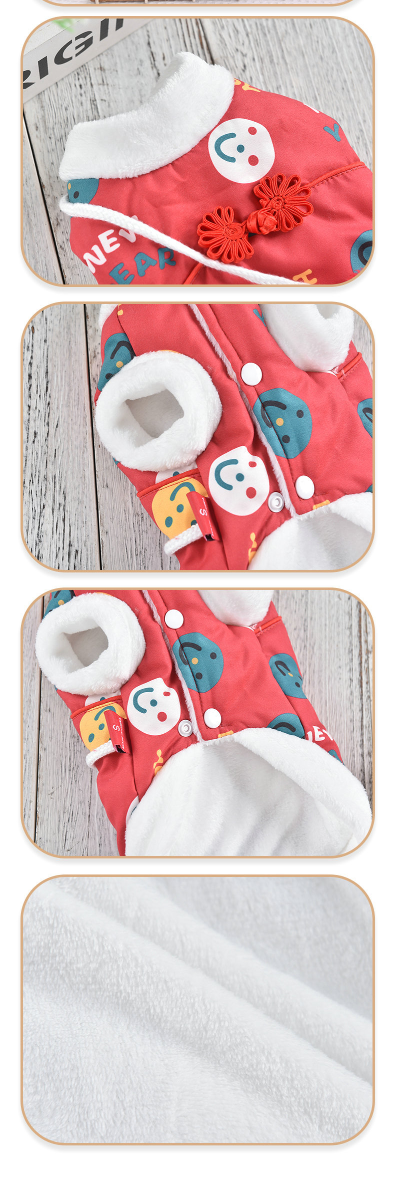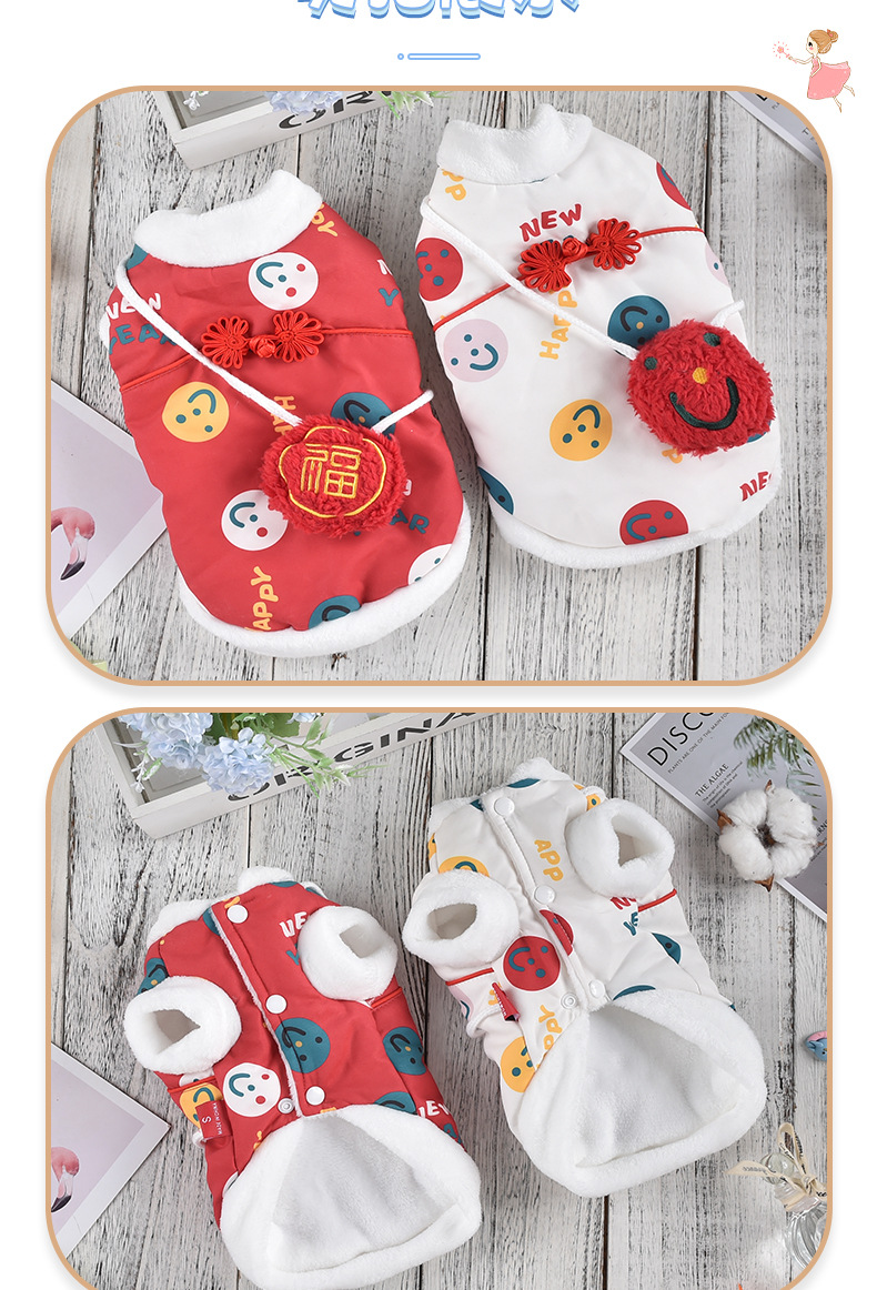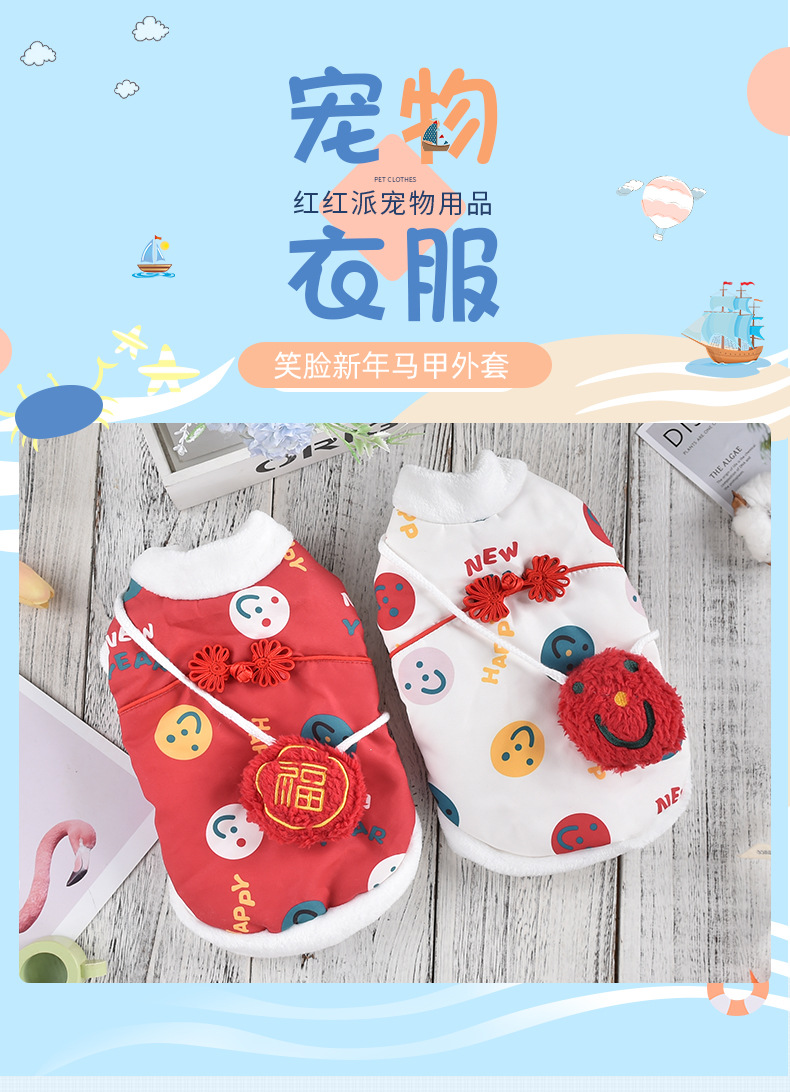 공장 공급 스마일 새해 조끼 코트 개 의류 개 테디 코르키 폴라 양털 애완 동물 의류스토어 가기