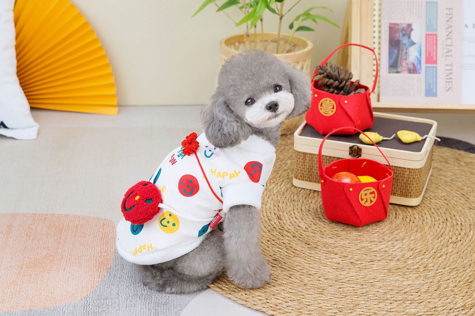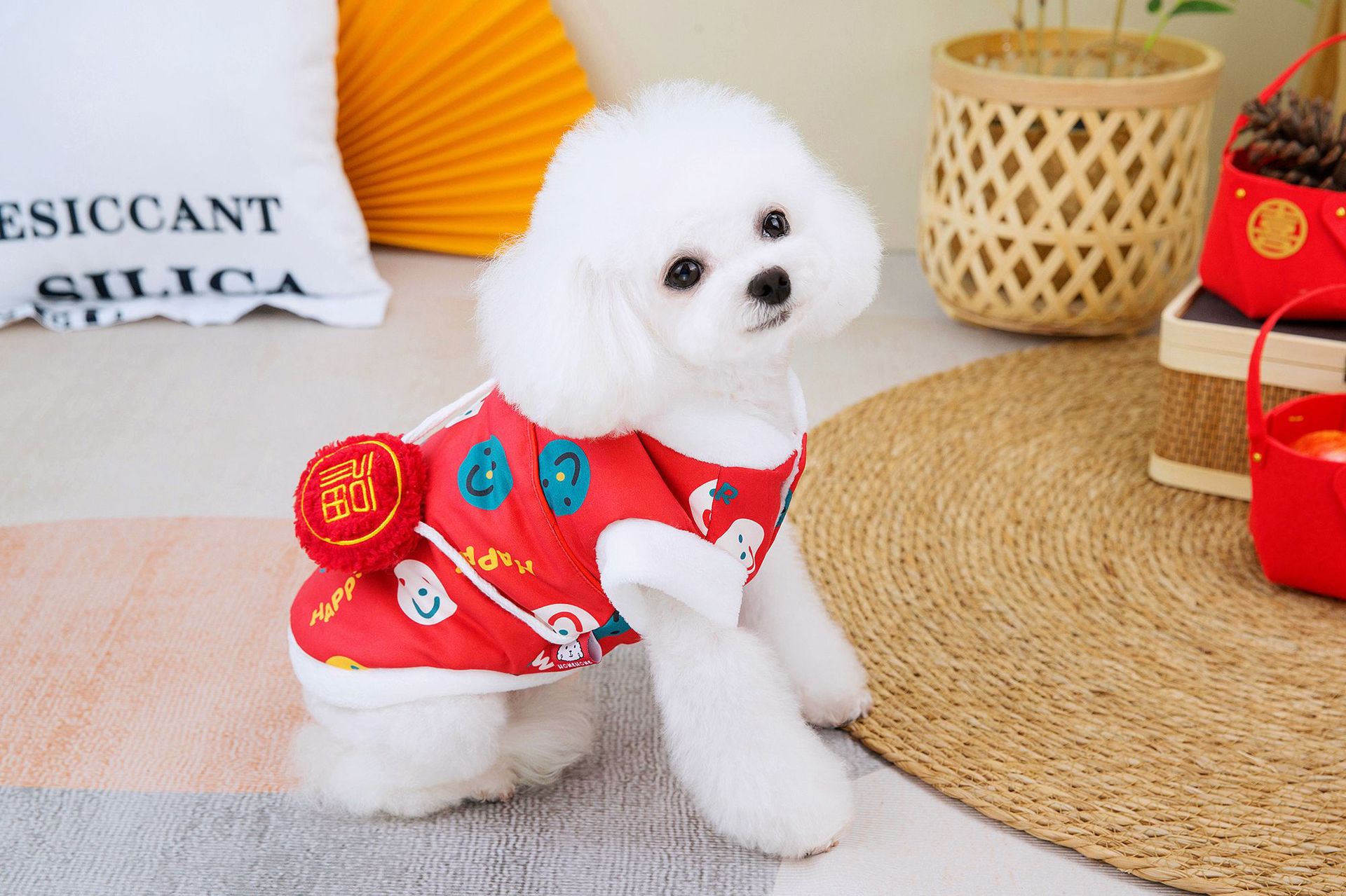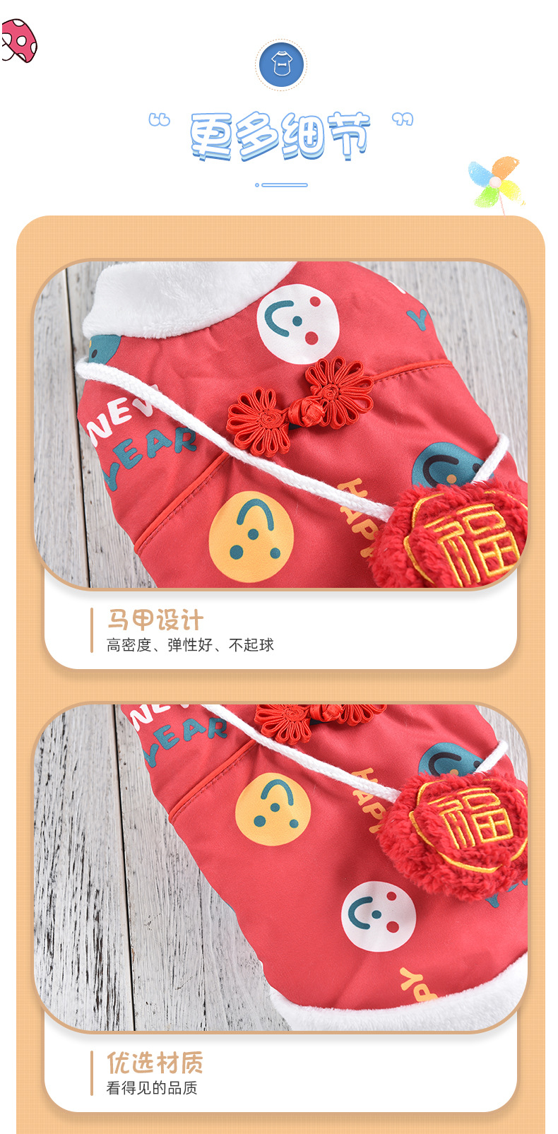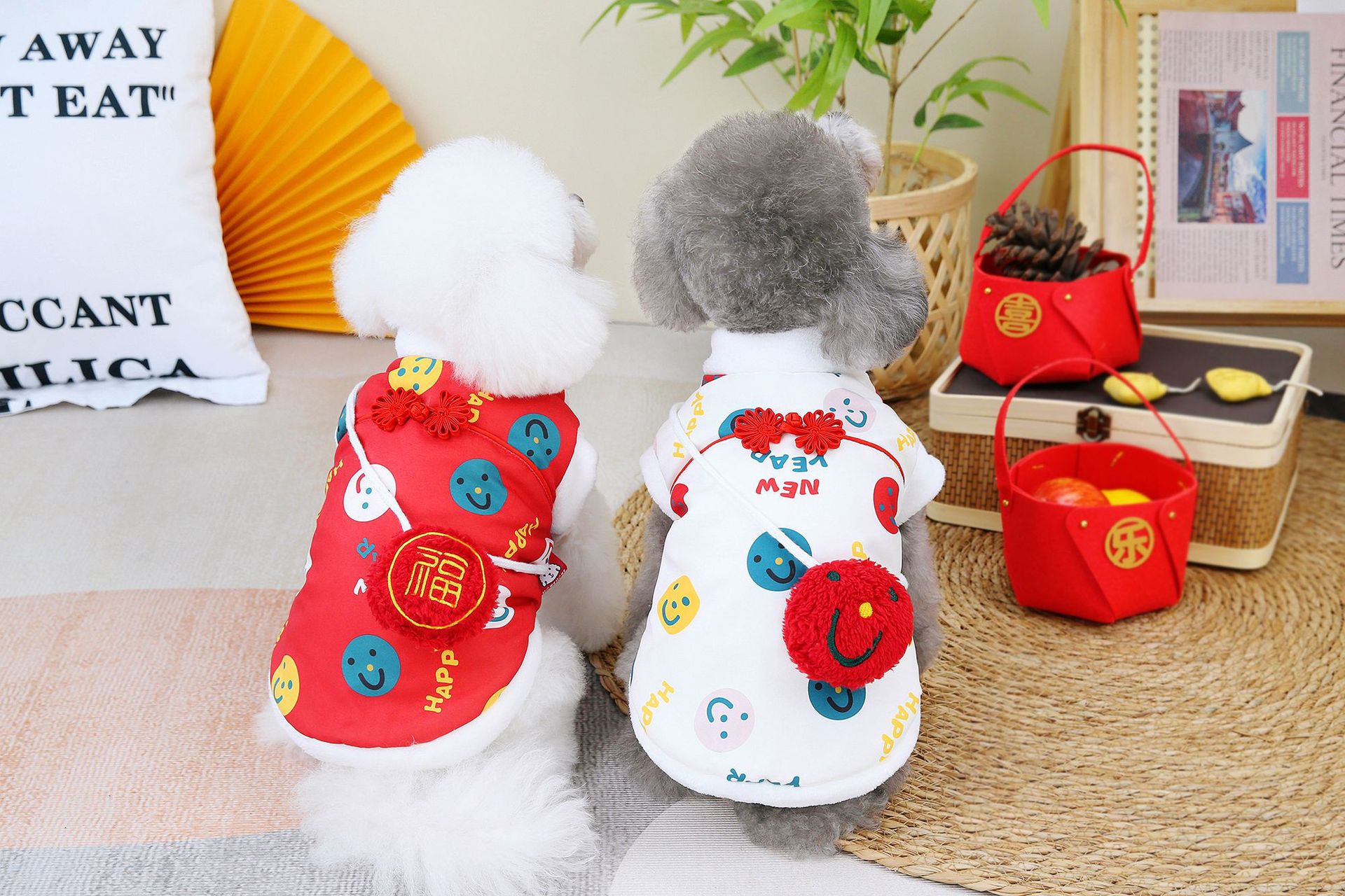 공장 공급 스마일 새해 조끼 코트 개 의류 개 테디 코르키 폴라 양털 애완 동물 의류스토어 가기