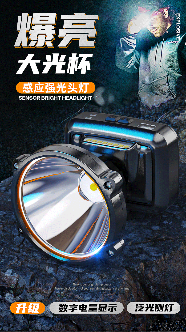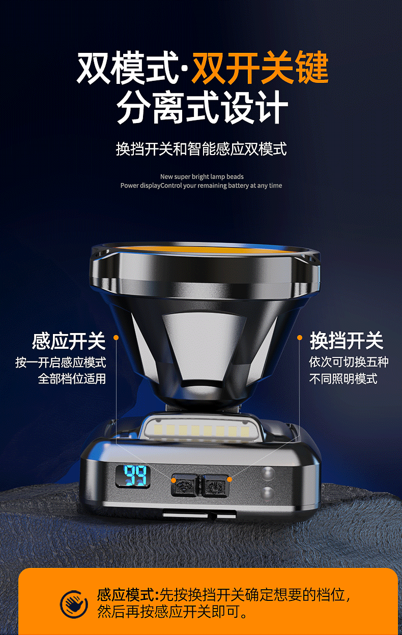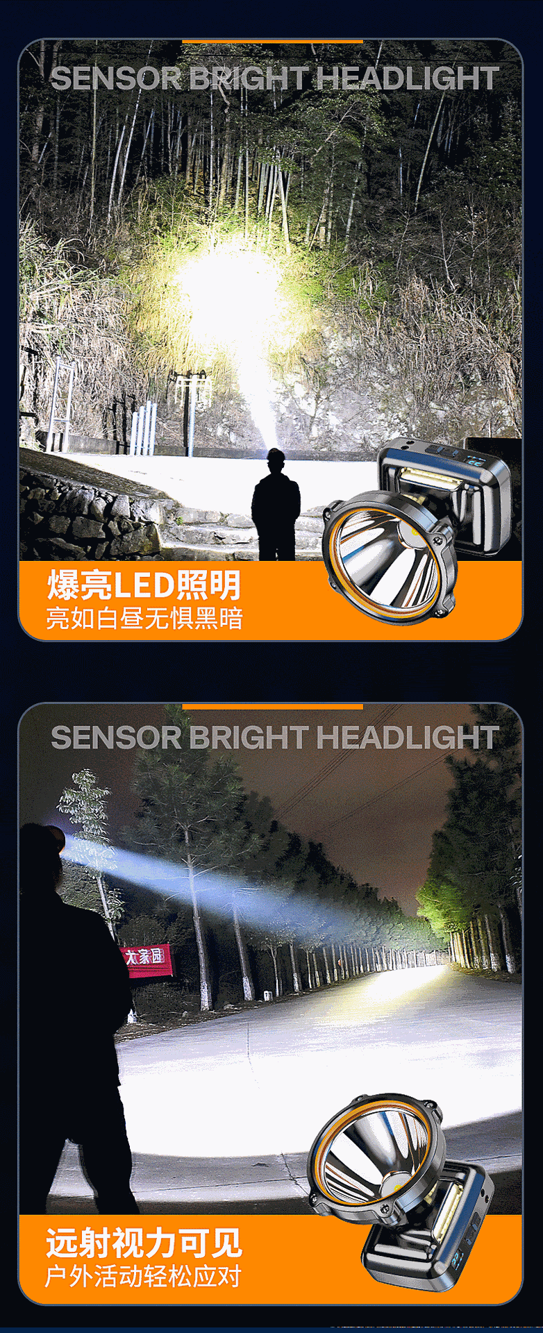 새로운 헤드램프 야외 강한 빛 충전식 유도 장거리 헤드 마운트 더블 리튬 배터리 슈퍼 긴 내구성 야간 낚시 광부 램프스토어 가기
