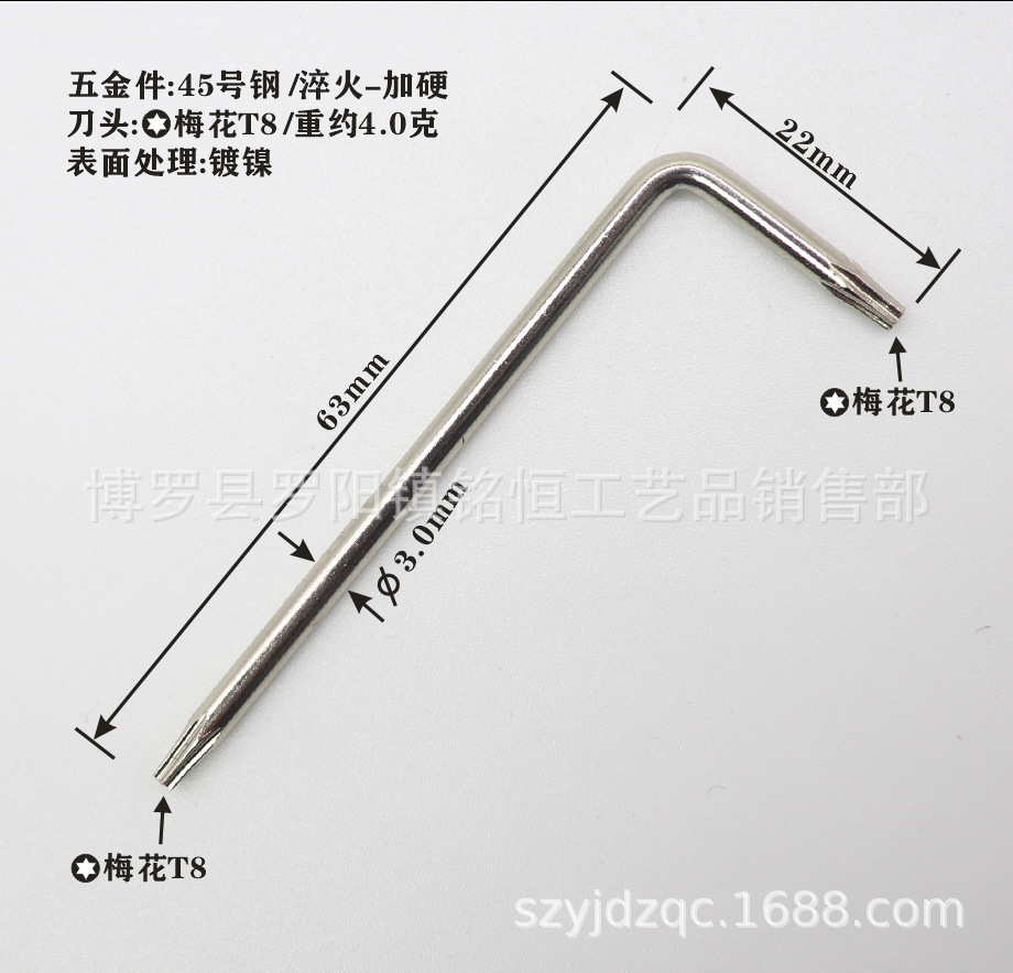 • T8 비 구멍 렌치 3*22*63 니켈 도금