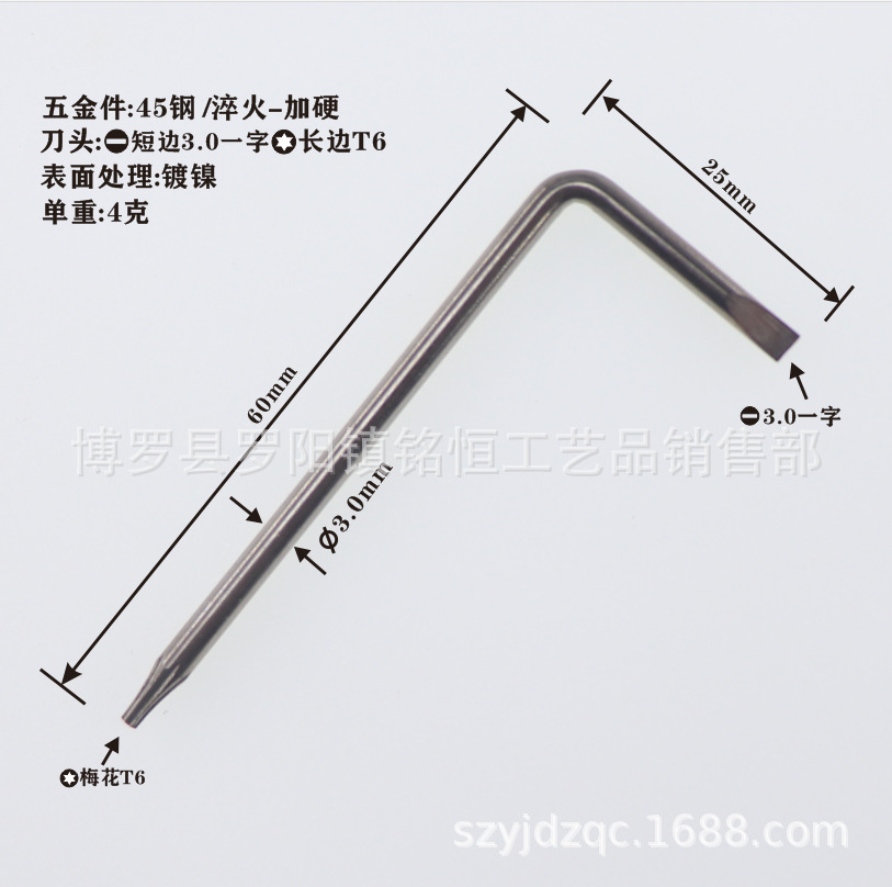 • 한 단어-T6 렌치 3*25*60 니켈 도금