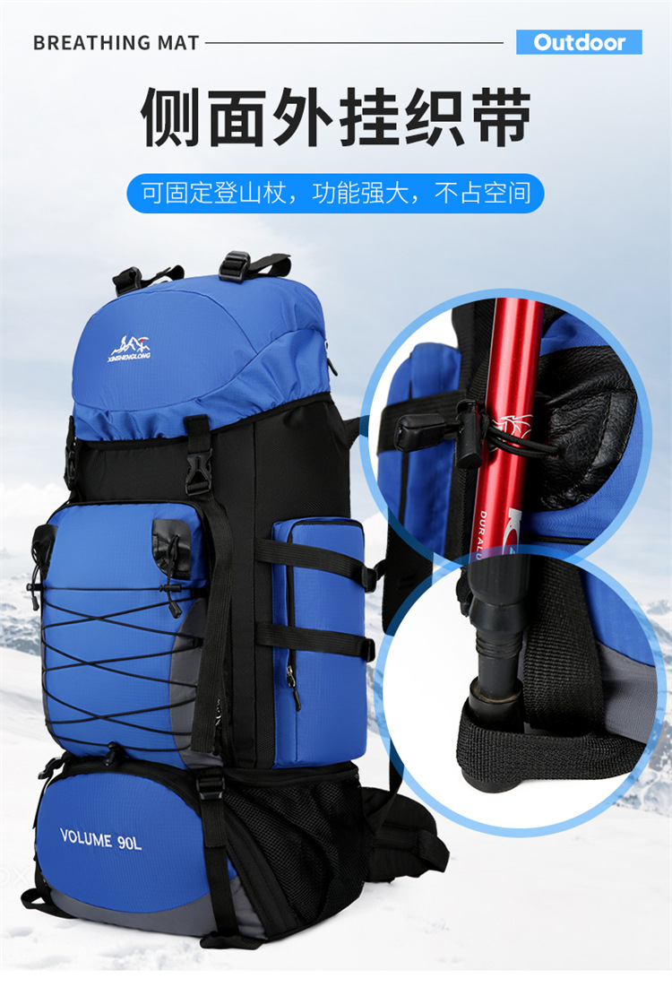 남성용 및 여성용 90L 대용량 야외 등산 가방, 대용량 야외 하이킹 배낭, 인쇄 가능한 로고 여행 가방 재고 있음스토어 가기