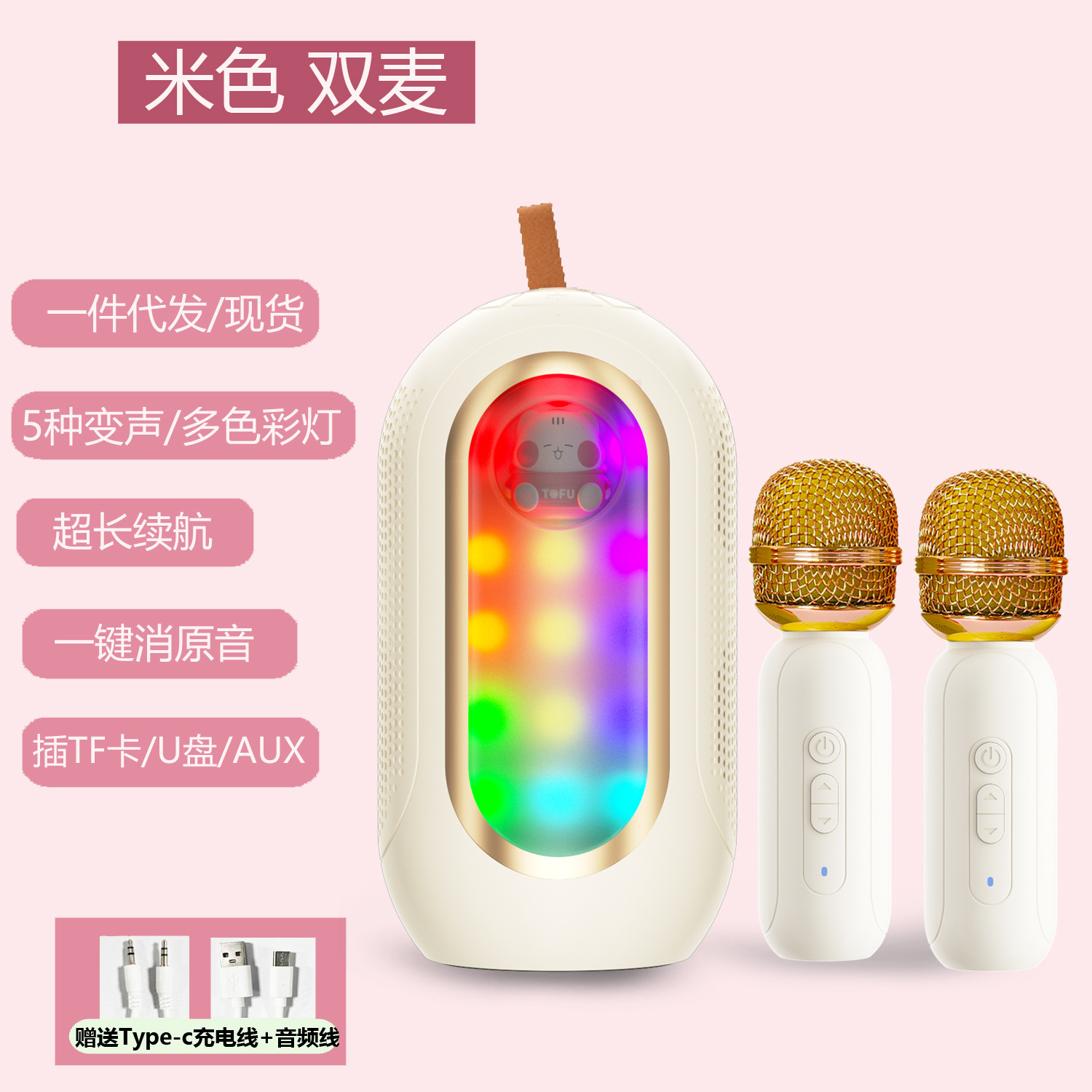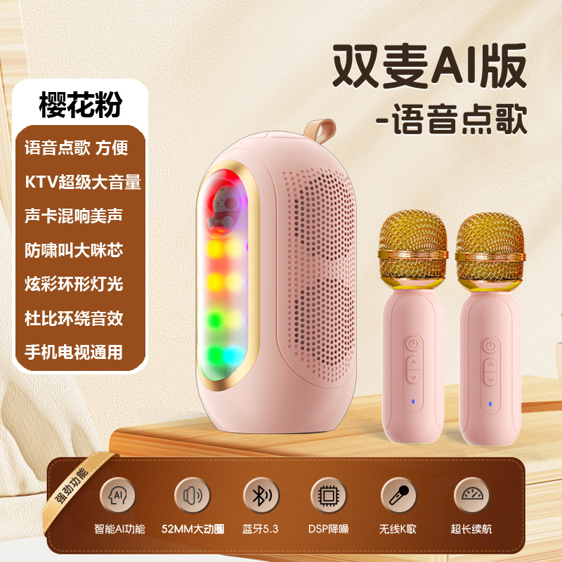 跨境无线蓝牙音箱便携K歌音响话筒麦克风户外桌面家庭唱歌KTV批发 无线麦克风 蓝牙麦克风 手机K歌宝 电容麦克风 K歌音箱  K歌话筒