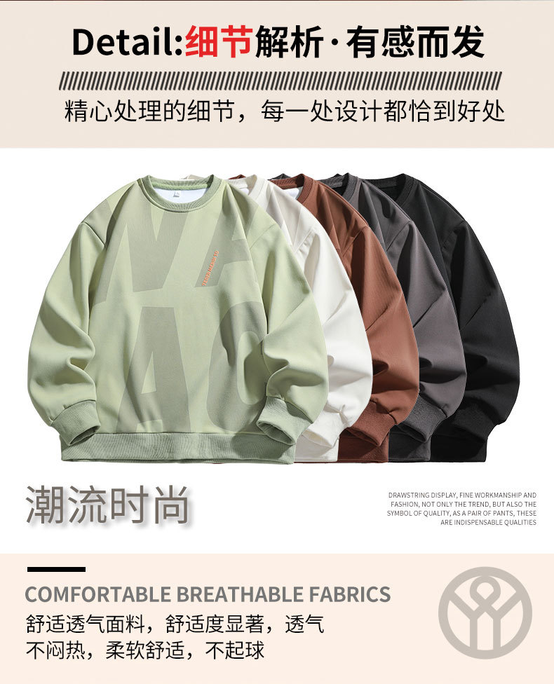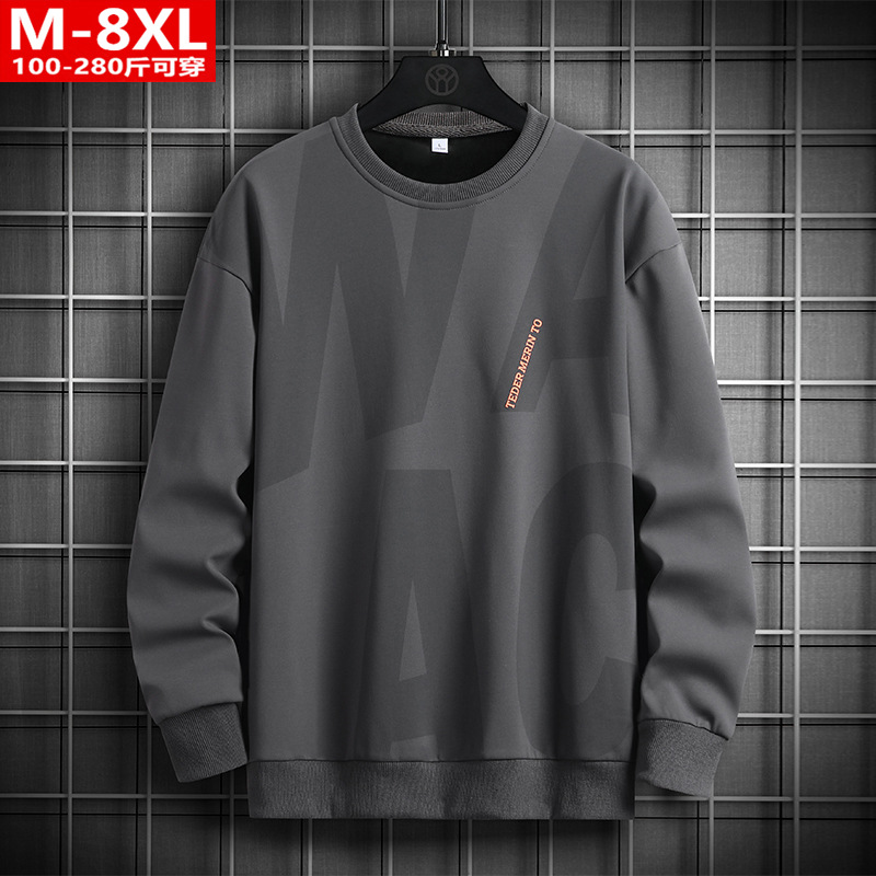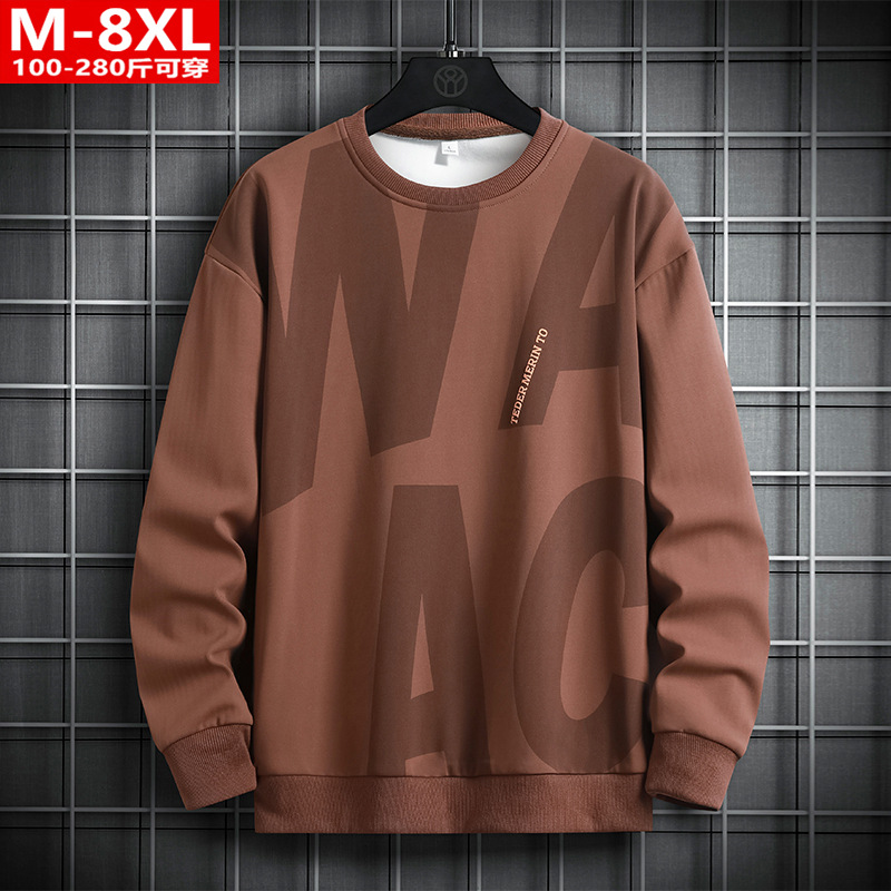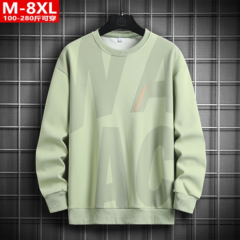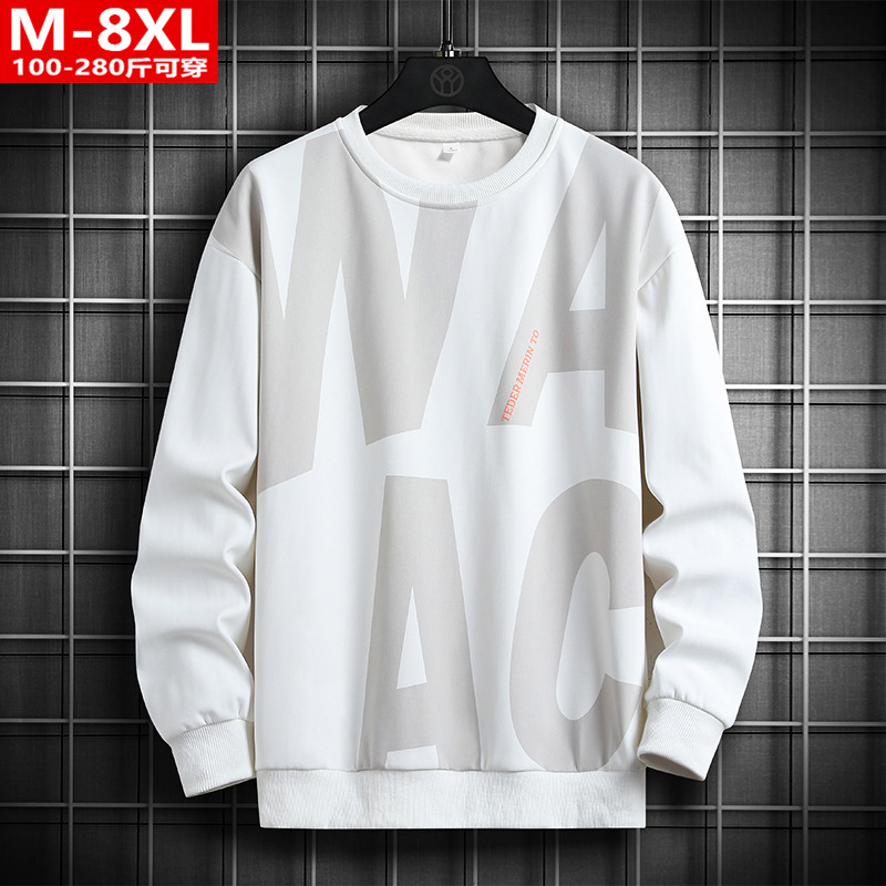 봄과 가을 유행 홍콩 스타일 남자의 인쇄 라운드 넥 니트 스웨터 통통한 대형 플러스 사이즈 느슨한 스포츠 캐주얼 탑스토어 가기