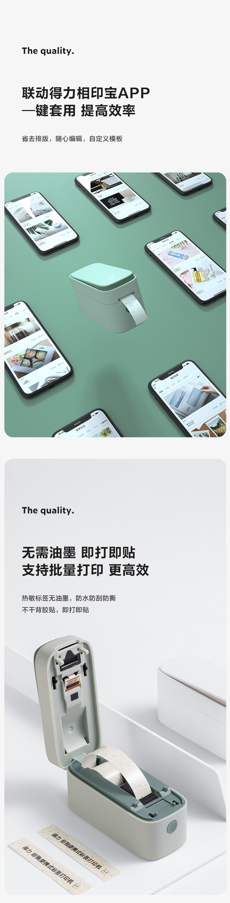 델리 Q1 무선 블루투스 휴대용 스마트 핸드헬드 하프 인치 라벨 프린터 소형 열전사 프린터 홈스토어 가기