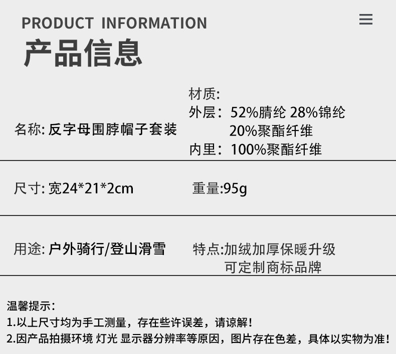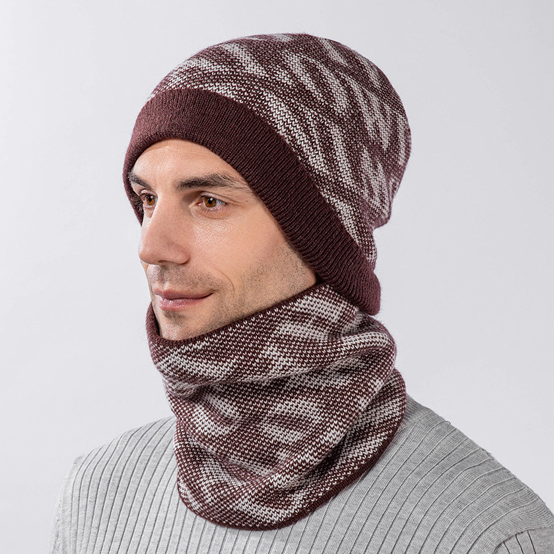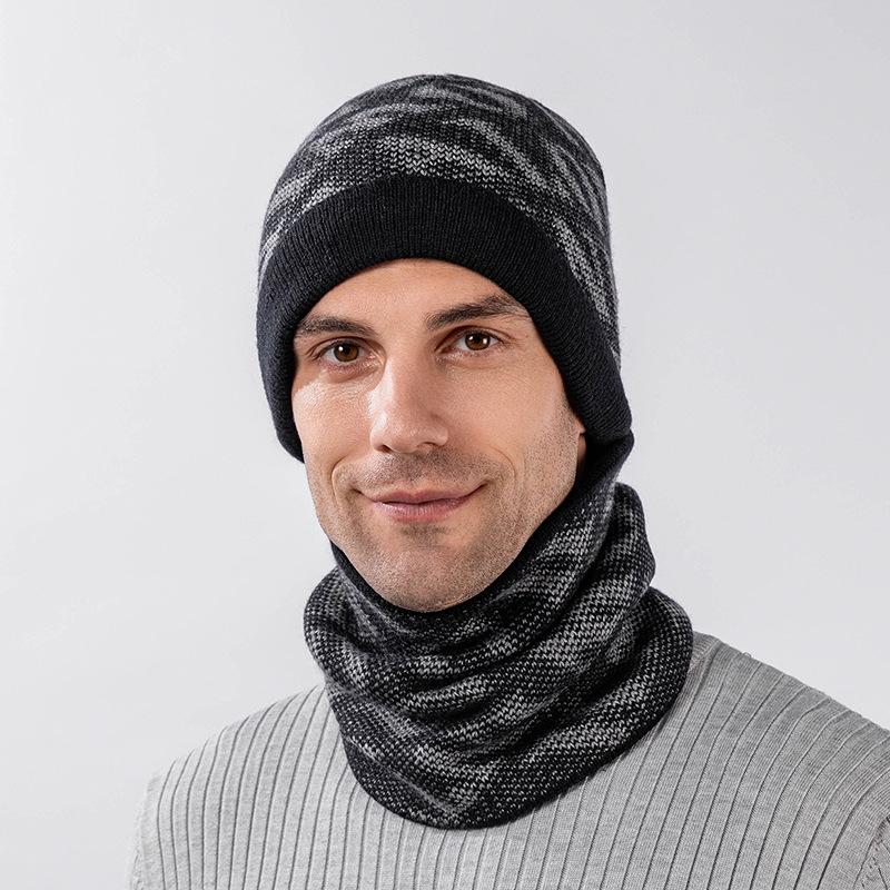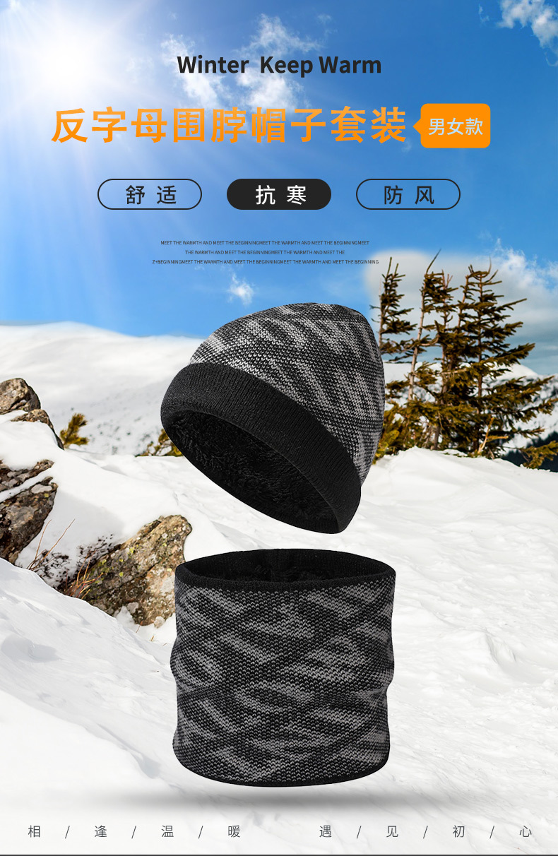 겨울용 다용도 레터링 모자와 목도리 세트 남성용 플러스 벨벳 두꺼운 목 보호대 귀 보호 니트 후드 여성용