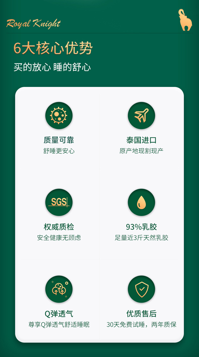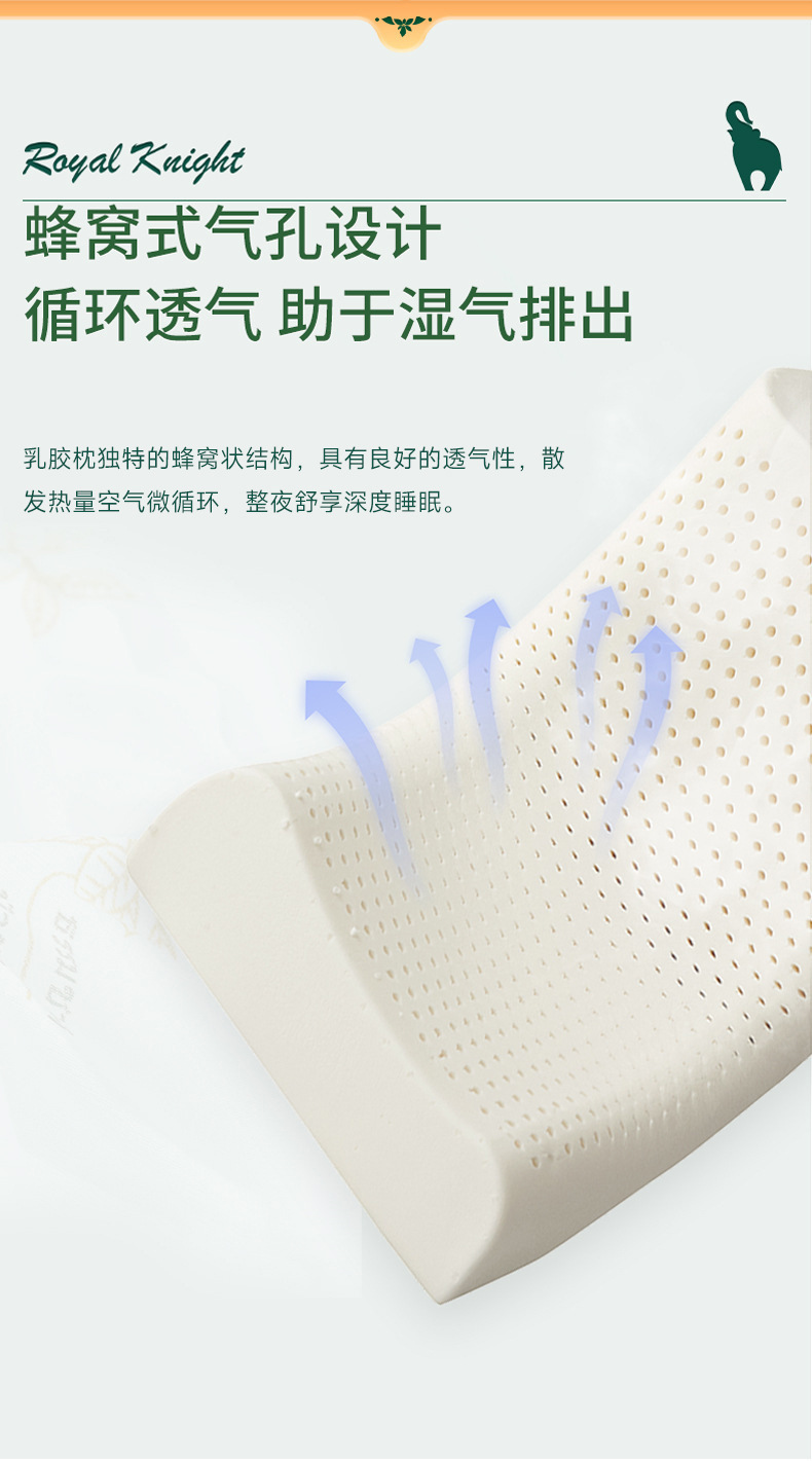 정품 ROYAL KNIGHT 라텍스 베개 성인용 마사지 경추 천연 곡선 목 보호 베개 코어 선물용 수면베개