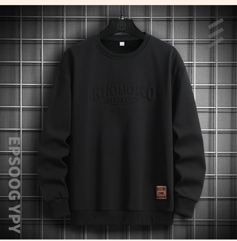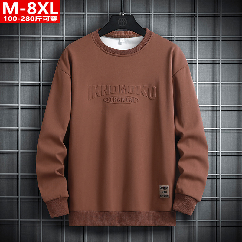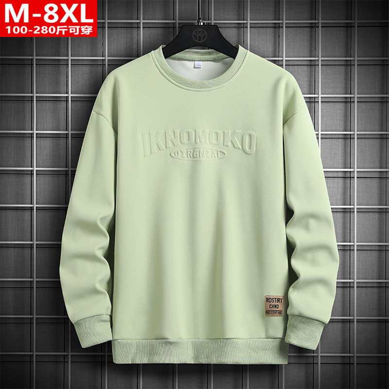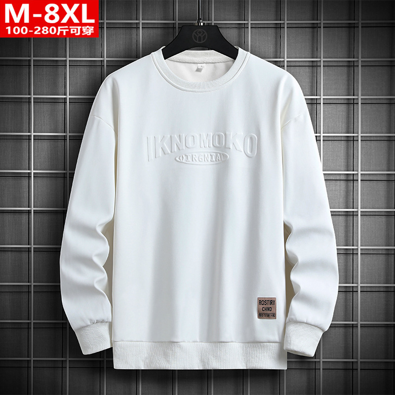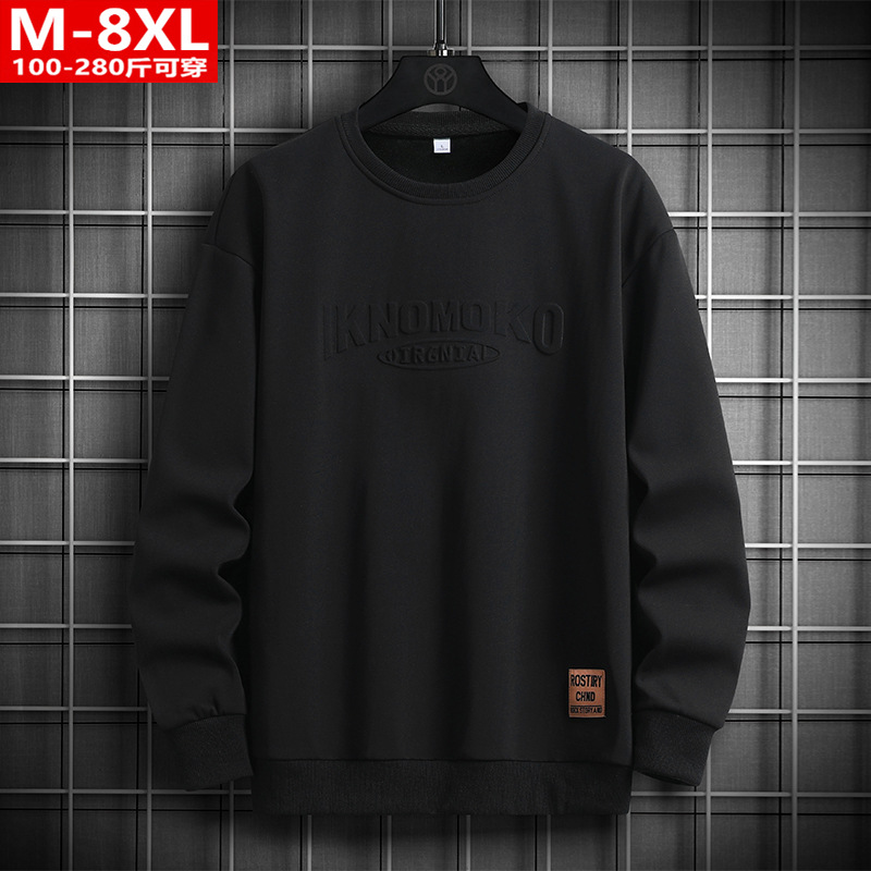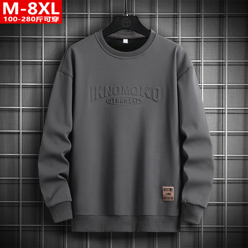 봄과 가을 유행 홍콩 스타일 남자의 인쇄 라운드 넥 니트 스웨터 통통한 대형 플러스 사이즈 느슨한 스포츠 캐주얼 탑스토어 가기