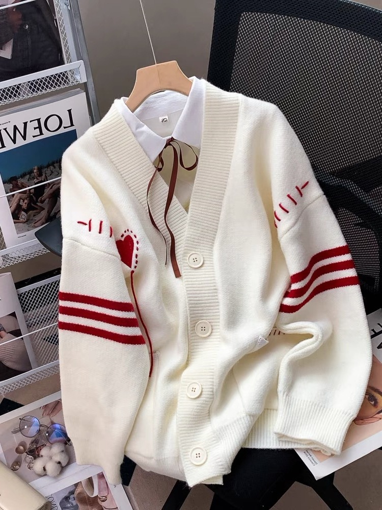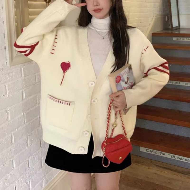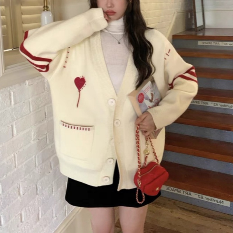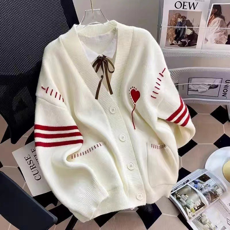 가을과 겨울 새로운 젠틀 게으른 스타일 스웨터 코트 여성용 루즈한 V-넥 탑 여성용 고급 일본 니트 가디건스토어 가기