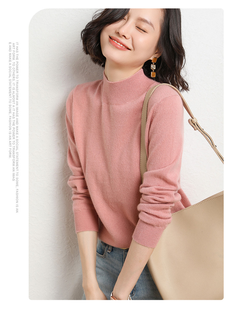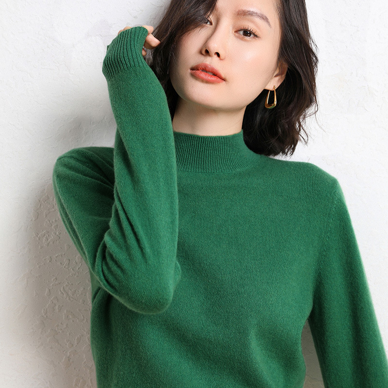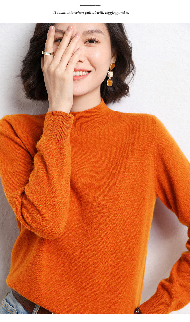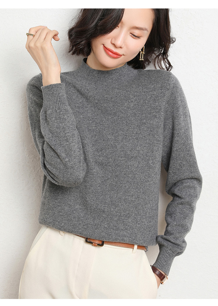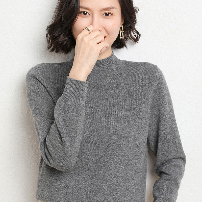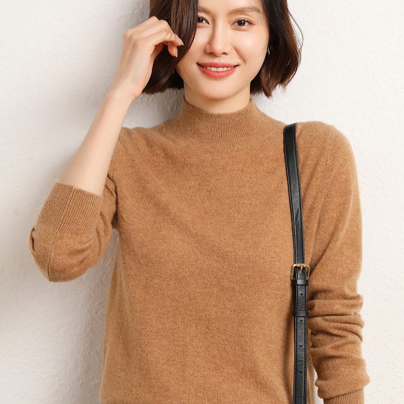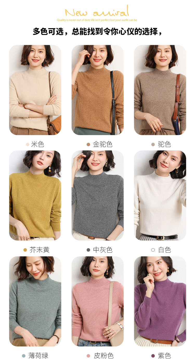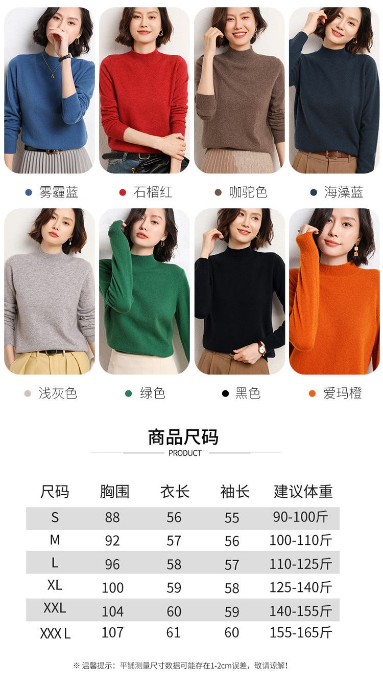 가을과 겨울 새로운 하프 터틀넥 스웨터 여성용 느슨한 긴팔 베이스 풀오버 플러스 사이즈 니트 탑스토어 가기