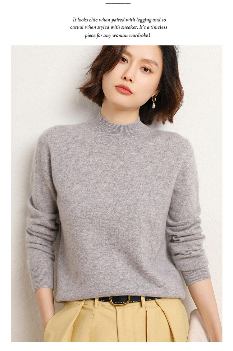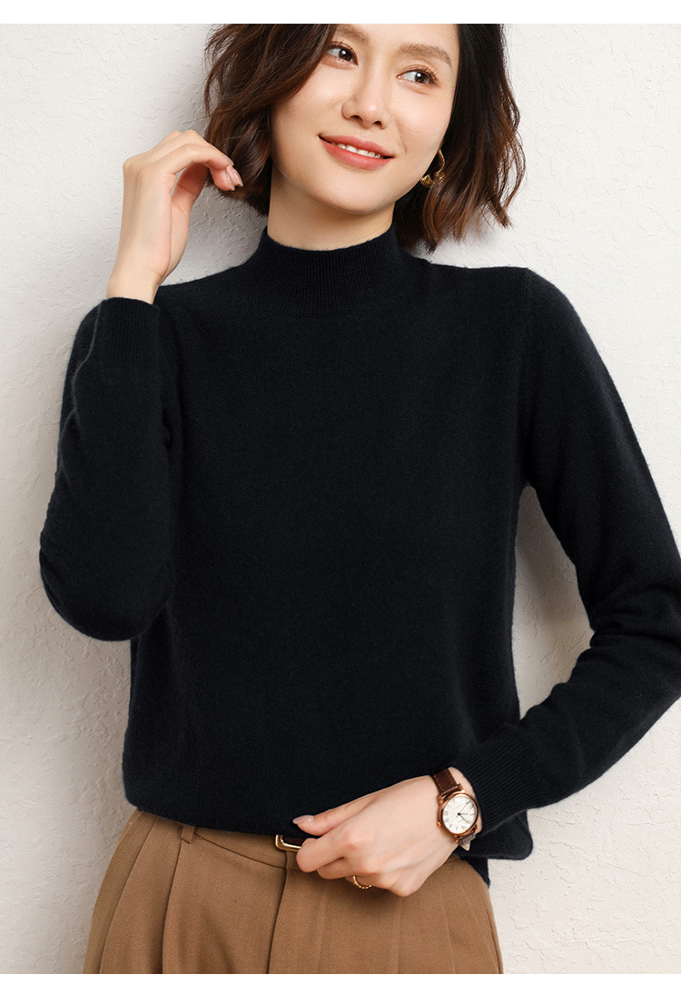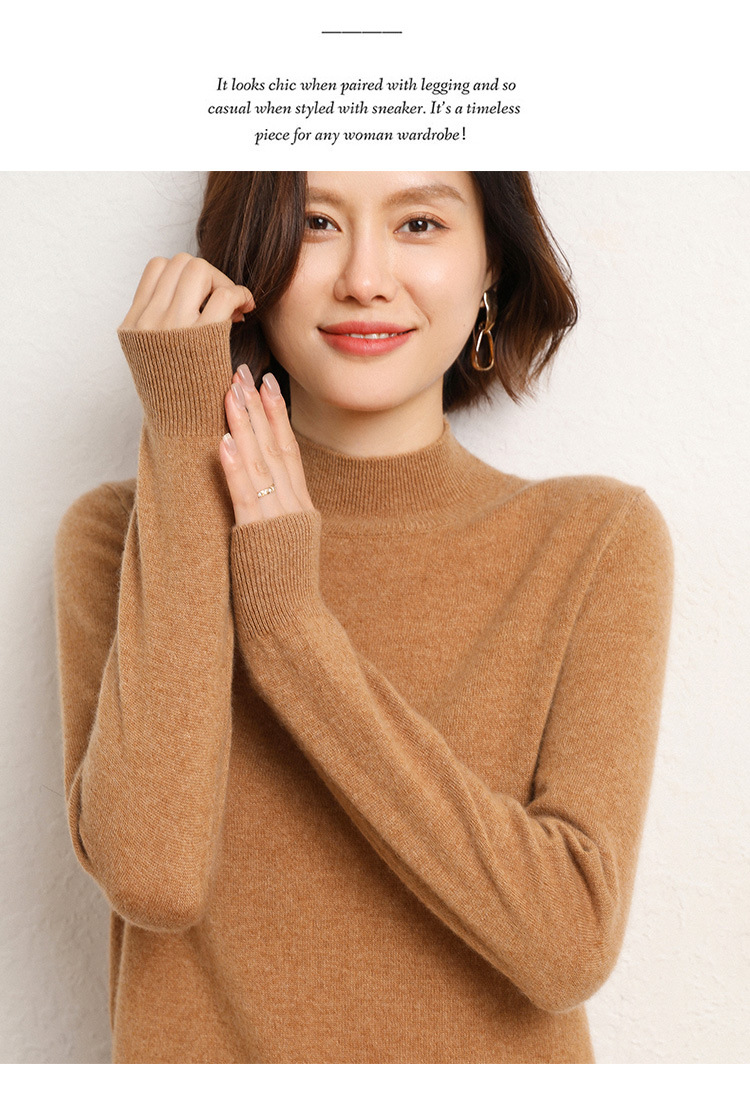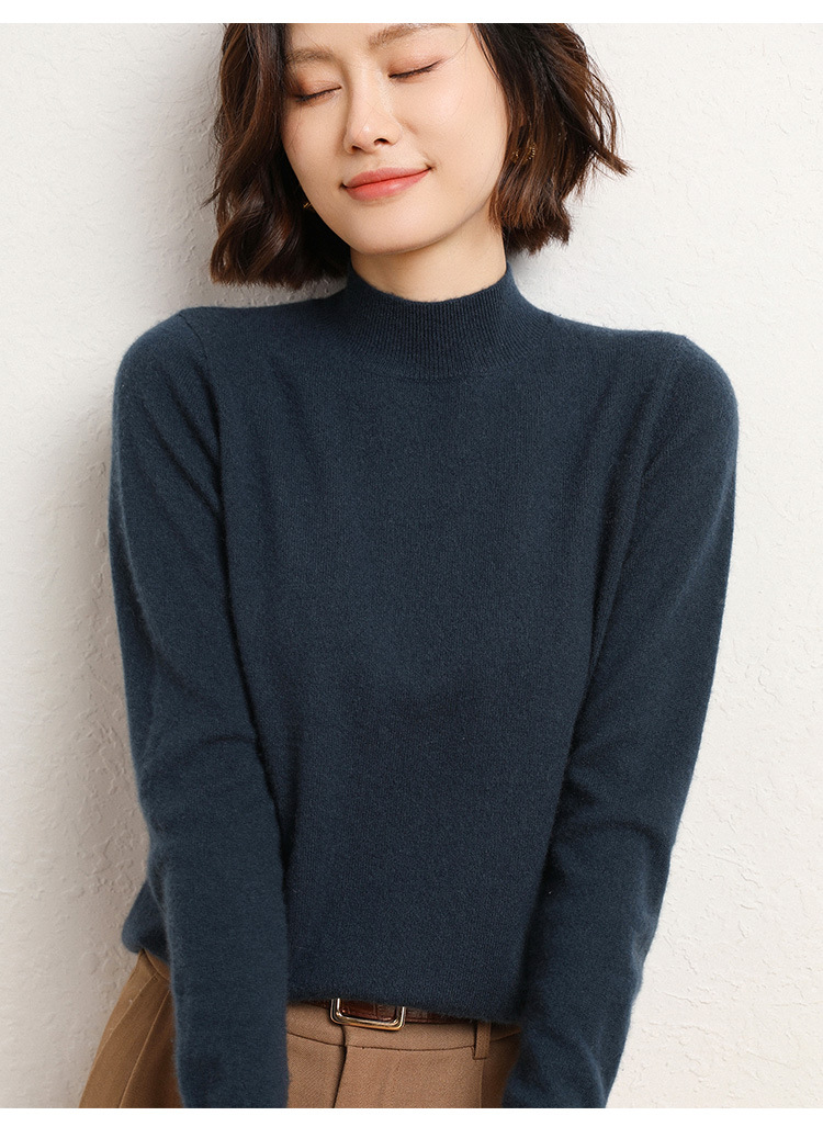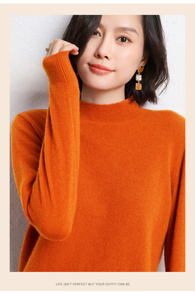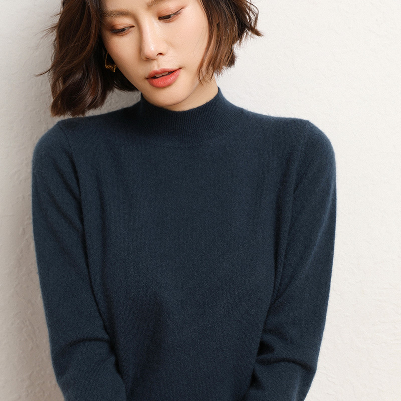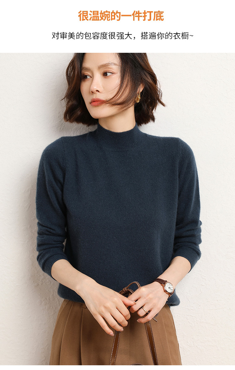 가을과 겨울 새로운 하프 터틀넥 스웨터 여성용 느슨한 긴팔 베이스 풀오버 플러스 사이즈 니트 탑스토어 가기