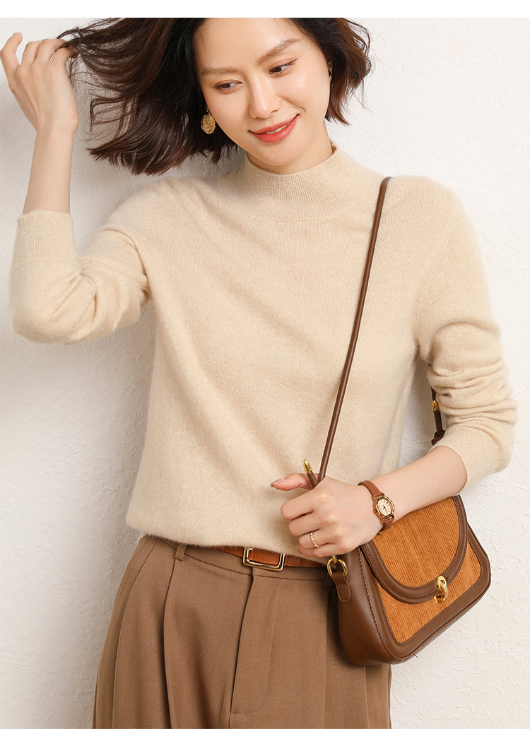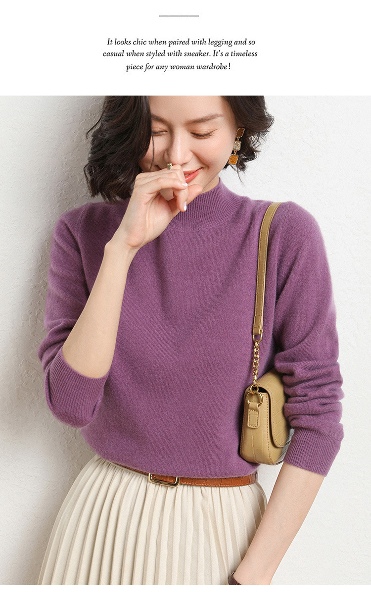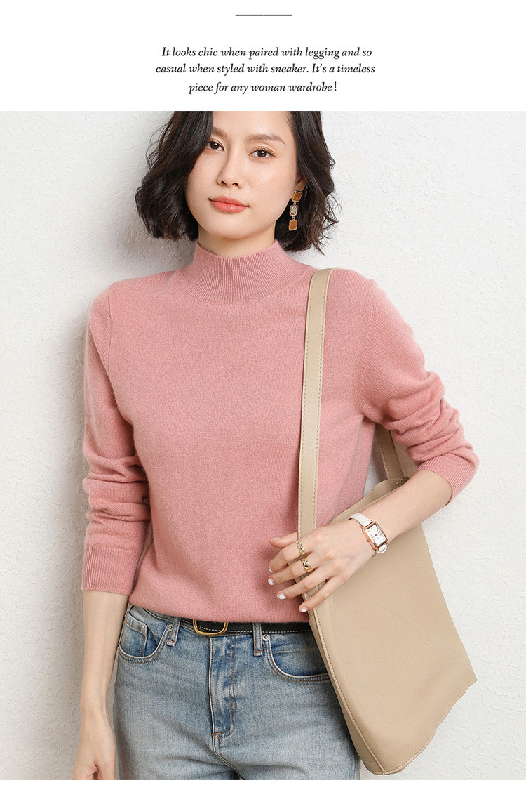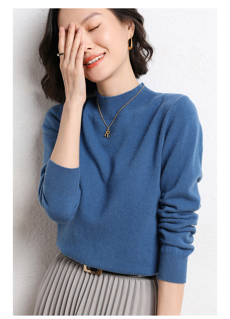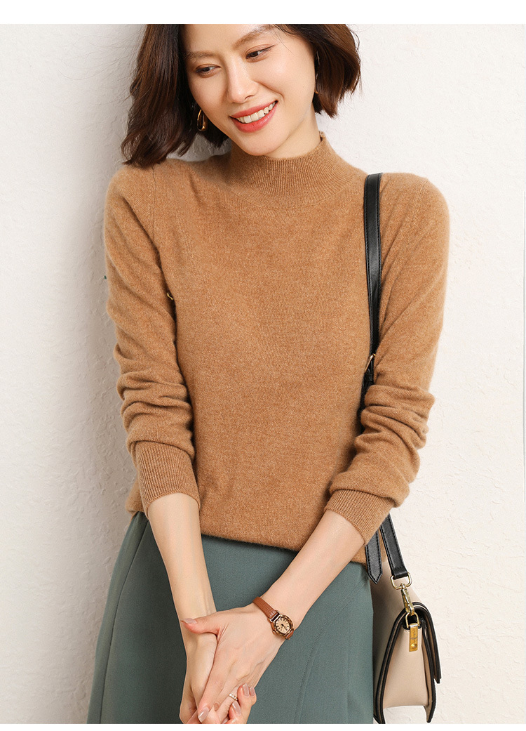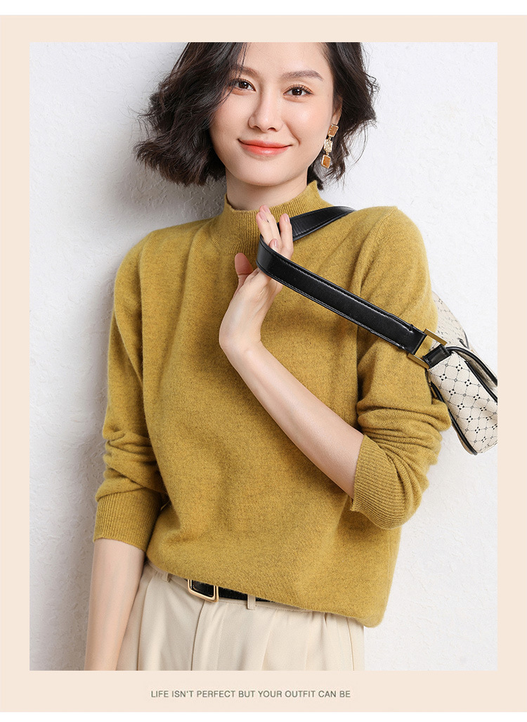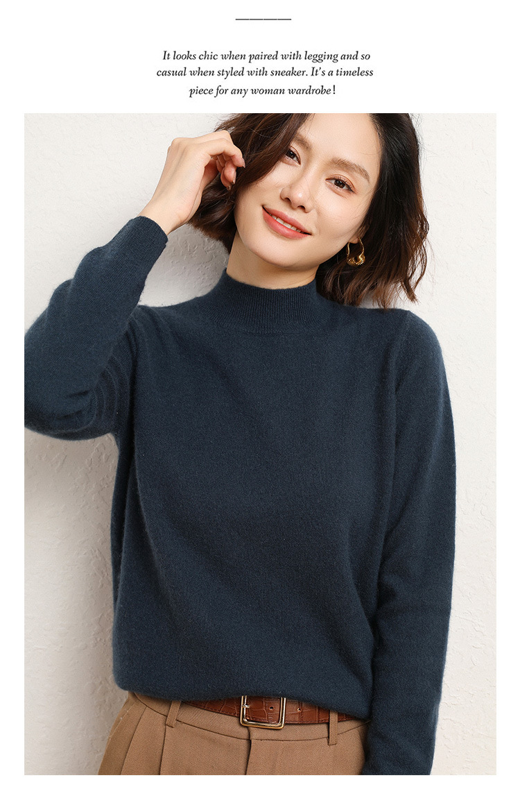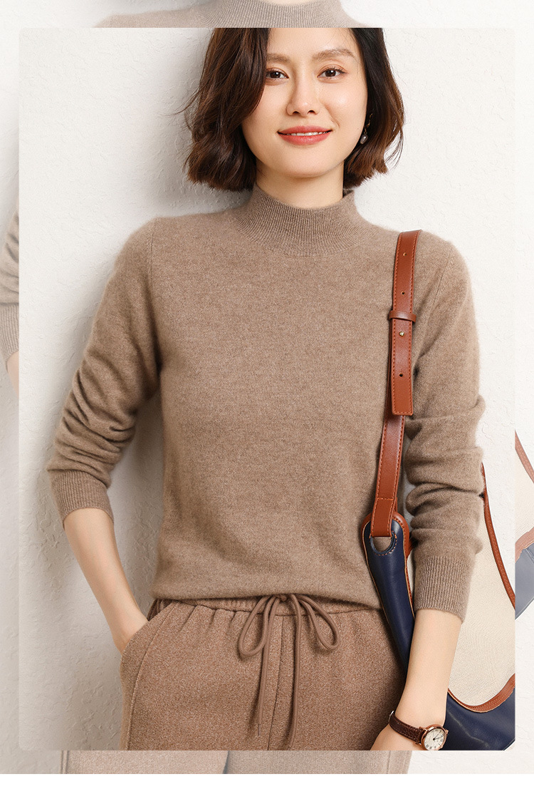 가을과 겨울 새로운 하프 터틀넥 스웨터 여성용 느슨한 긴팔 베이스 풀오버 플러스 사이즈 니트 탑스토어 가기