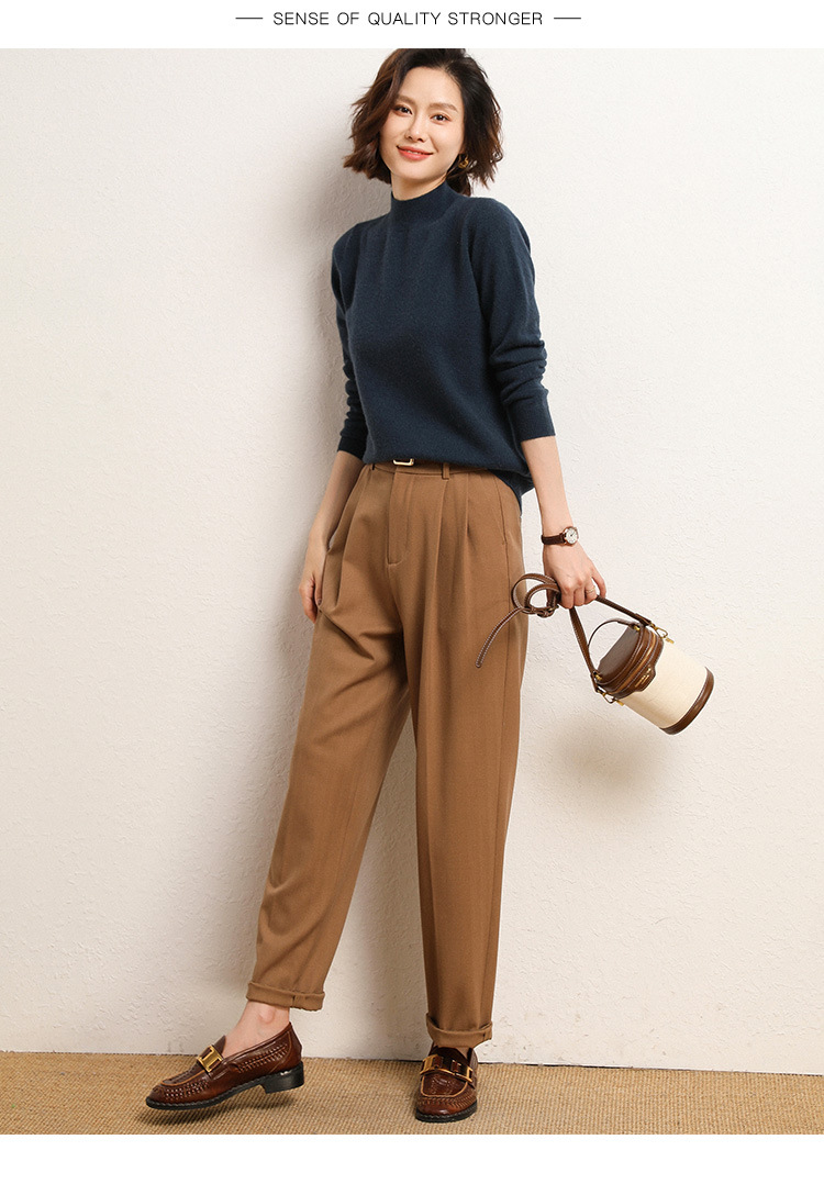 가을과 겨울 새로운 하프 터틀넥 스웨터 여성용 느슨한 긴팔 베이스 풀오버 플러스 사이즈 니트 탑