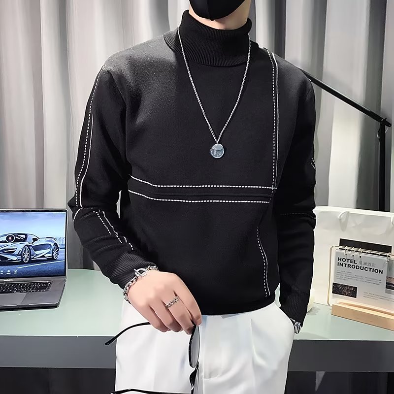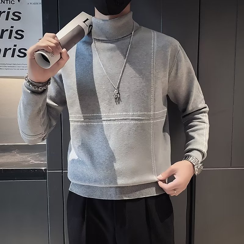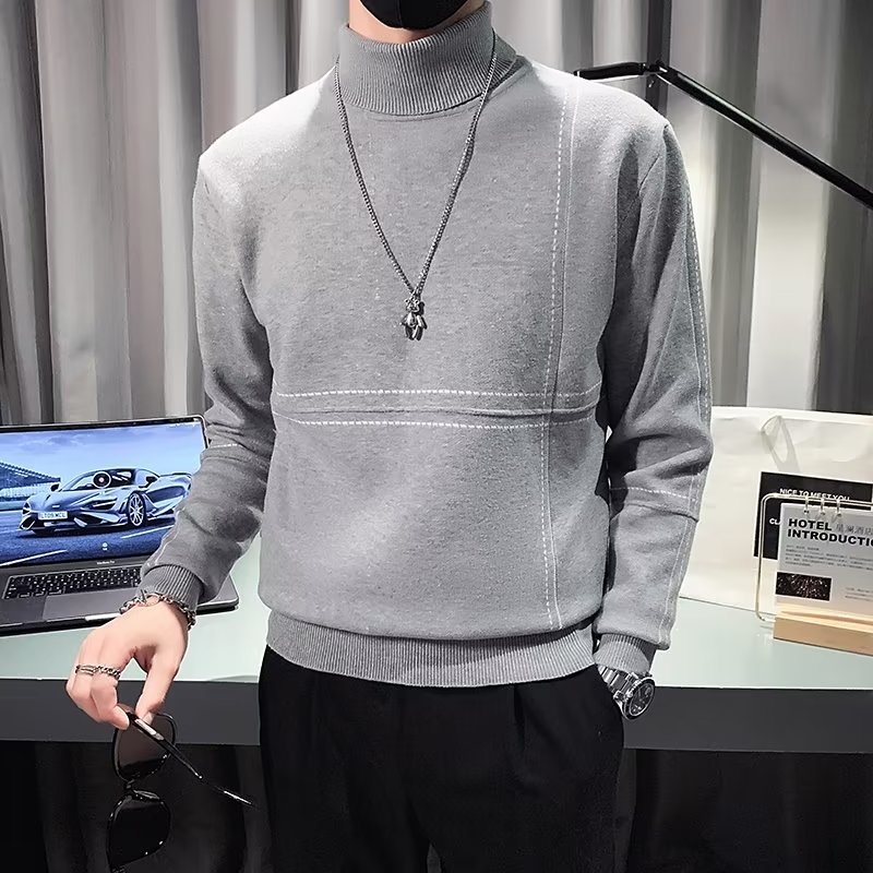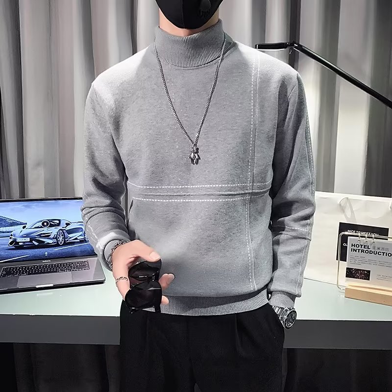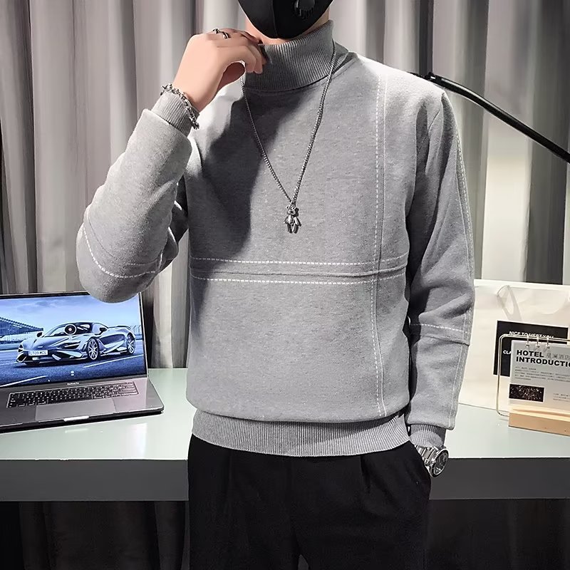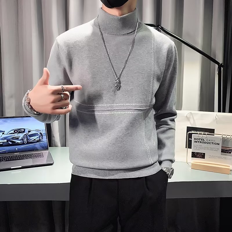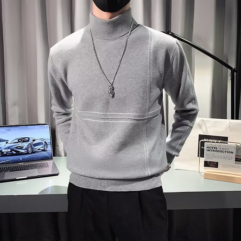 겨울 남성용 양모 두꺼운 니트웨어 하프 하이 칼라 느슨한 유럽과 미국의 간단한 패션 스티칭 청소년을위한 비 철 셔츠스토어 가기