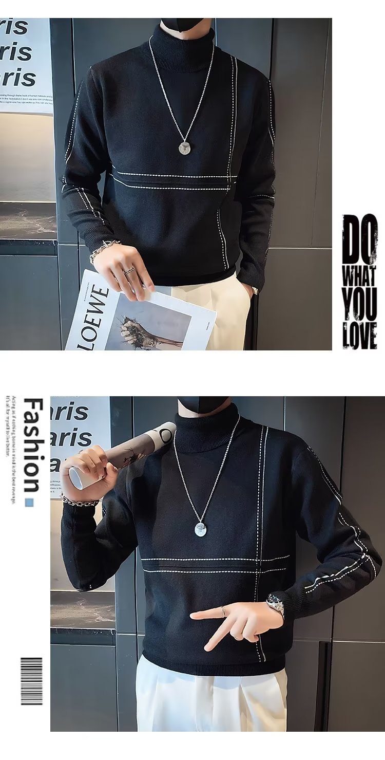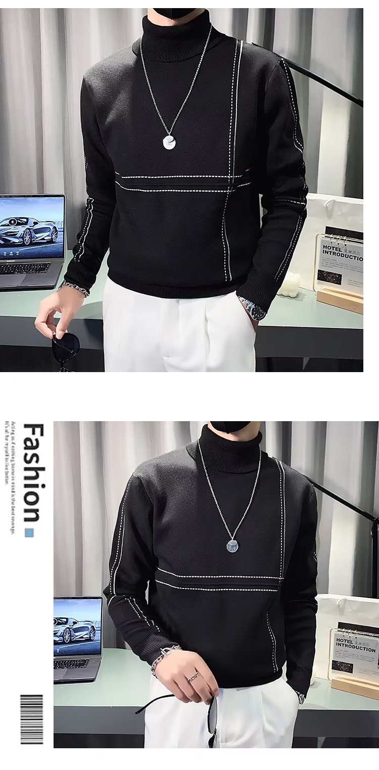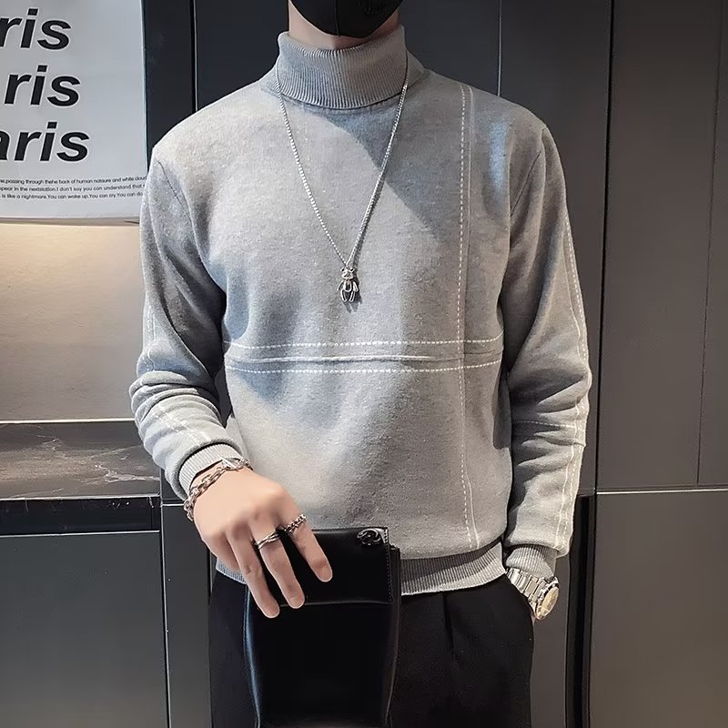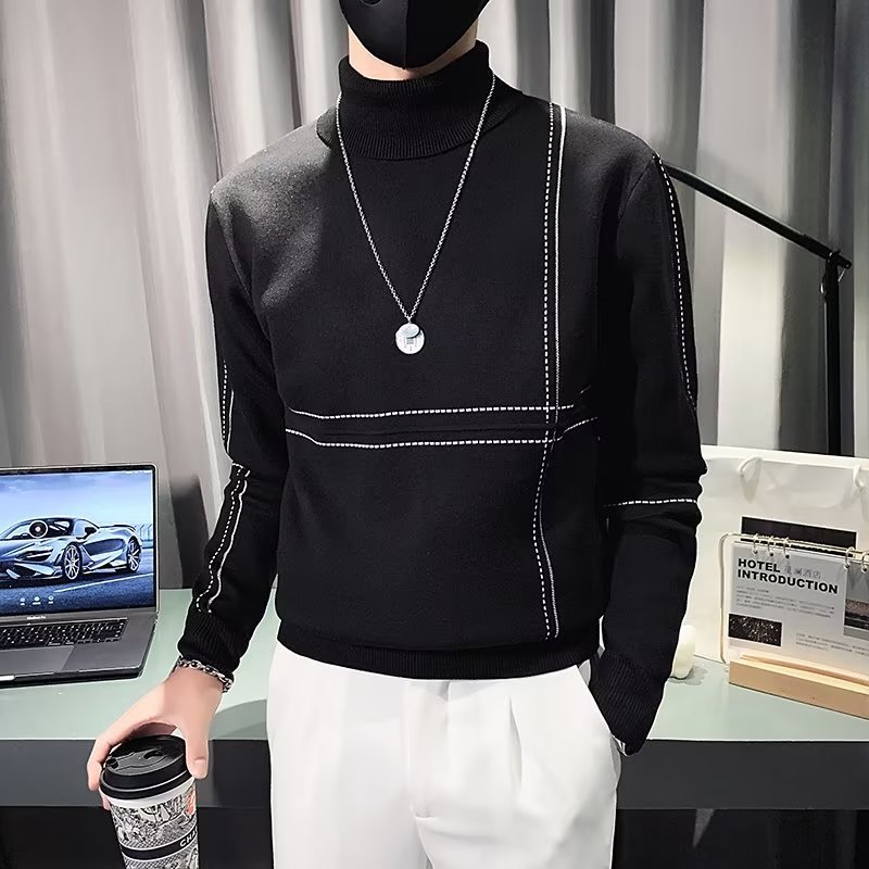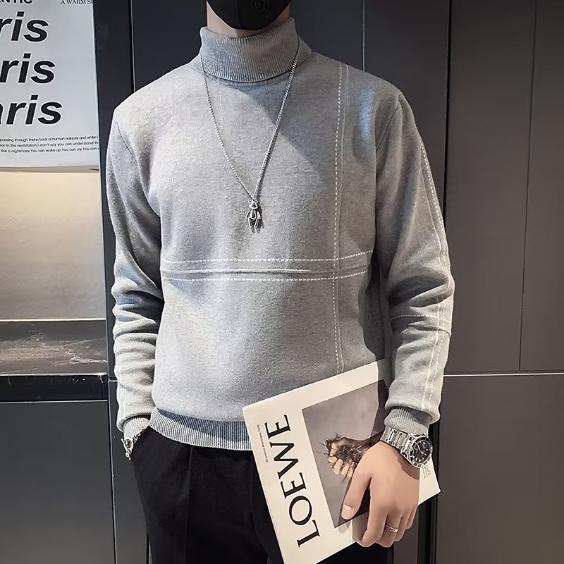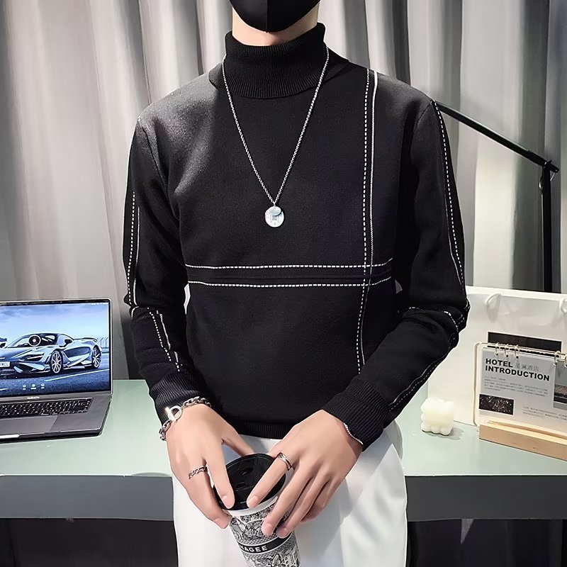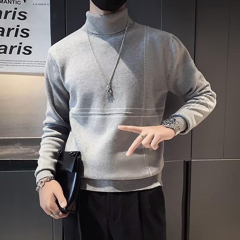 겨울 남성용 양모 두꺼운 니트웨어 하프 하이 칼라 느슨한 유럽과 미국의 간단한 패션 스티칭 청소년을위한 비 철 셔츠스토어 가기