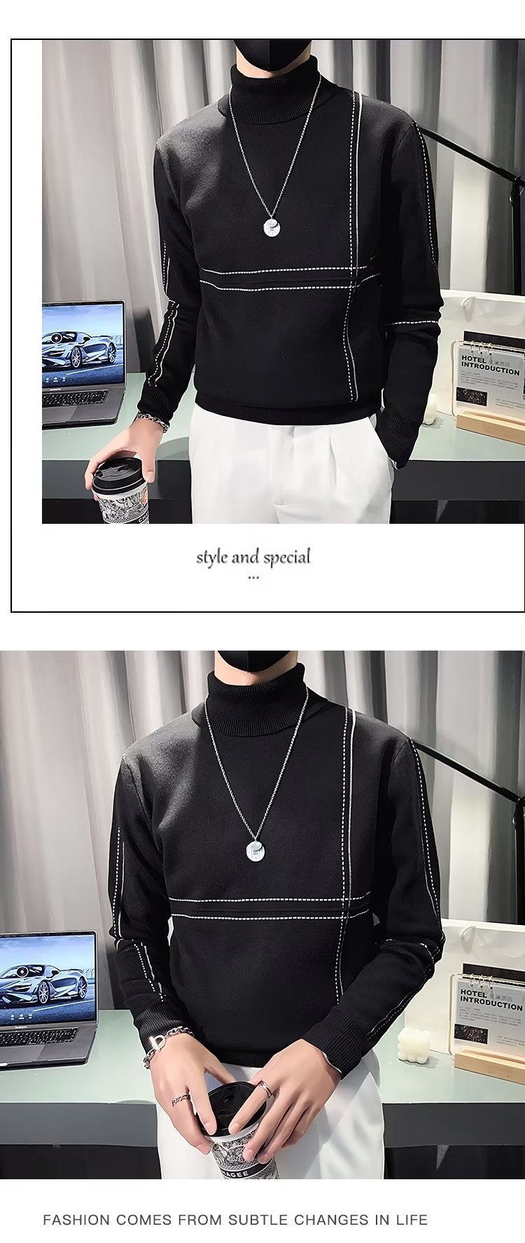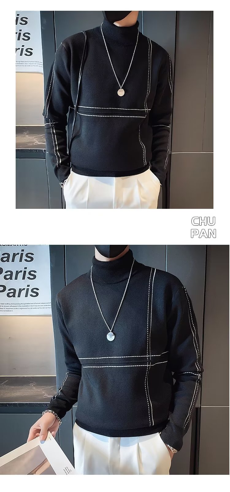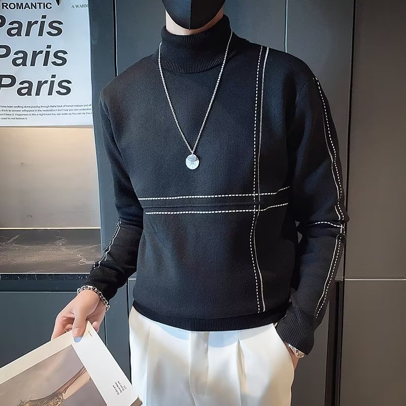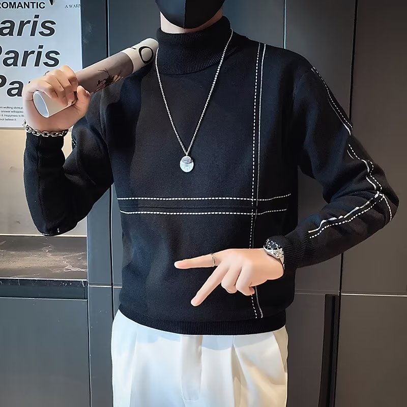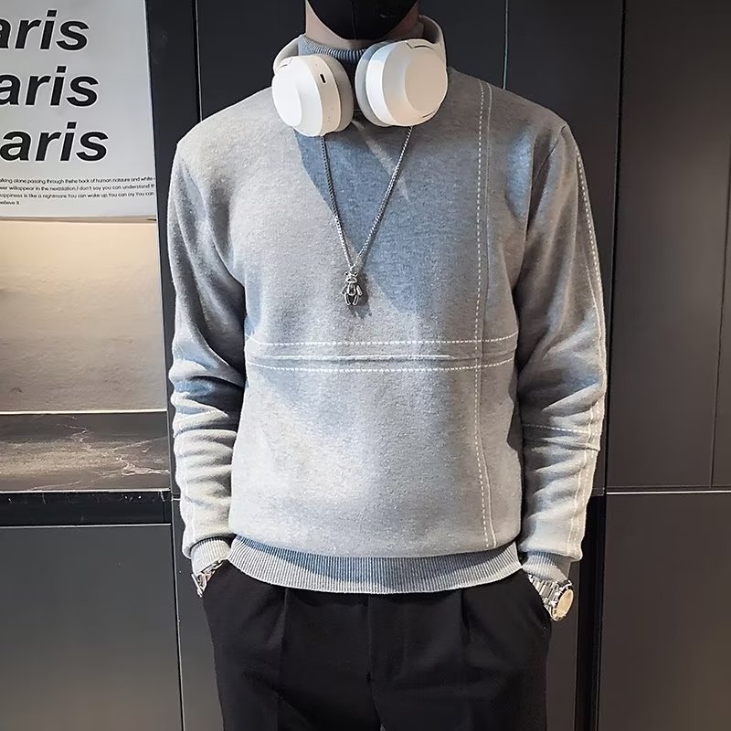 겨울 남성용 양모 두꺼운 니트웨어 하프 하이 칼라 느슨한 유럽과 미국의 간단한 패션 스티칭 청소년을위한 비 철 셔츠스토어 가기
