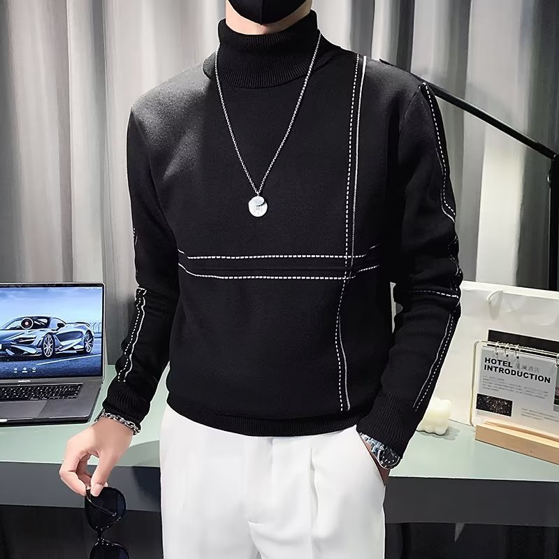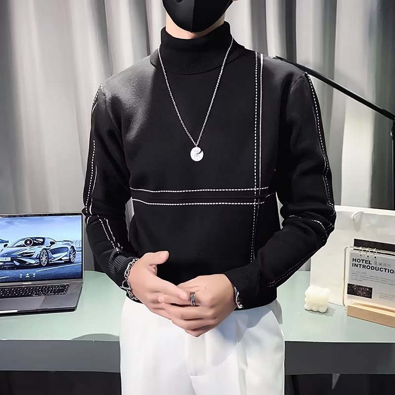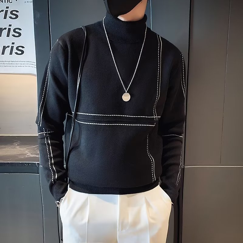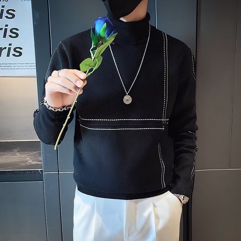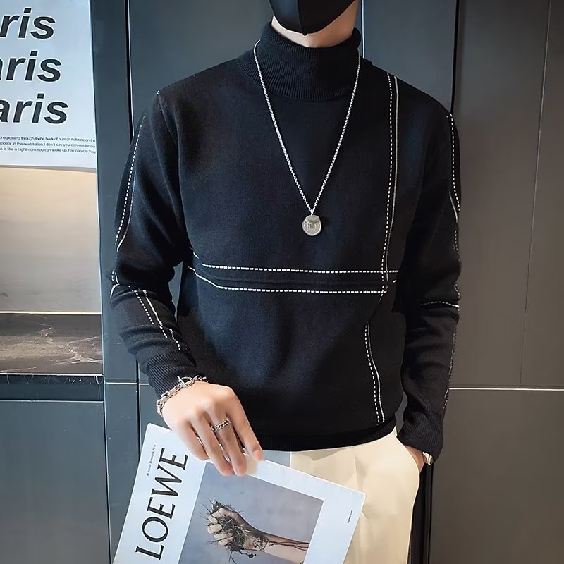 겨울 남성용 양모 두꺼운 니트웨어 하프 하이 칼라 느슨한 유럽과 미국의 간단한 패션 스티칭 청소년을위한 비 철 셔츠