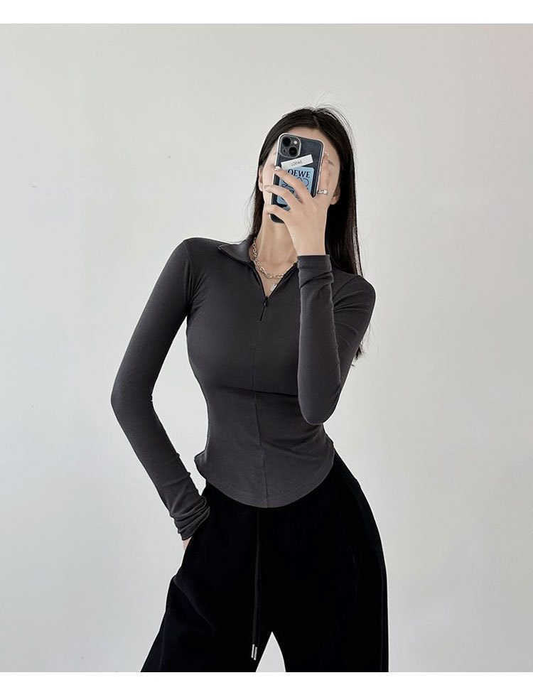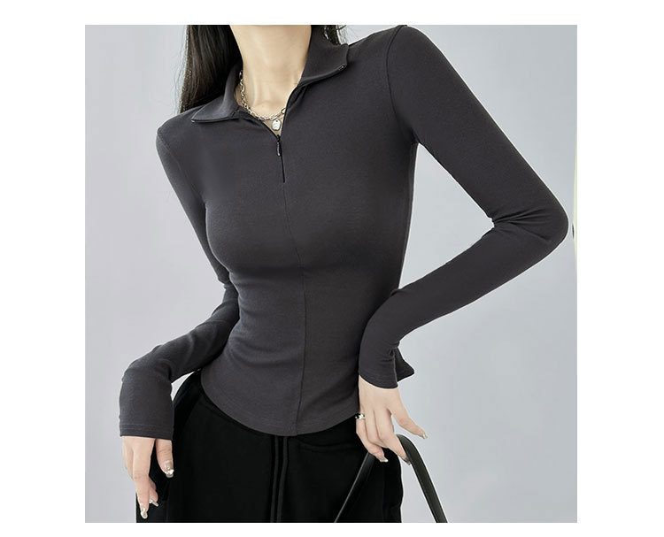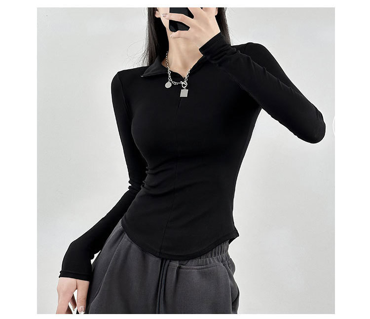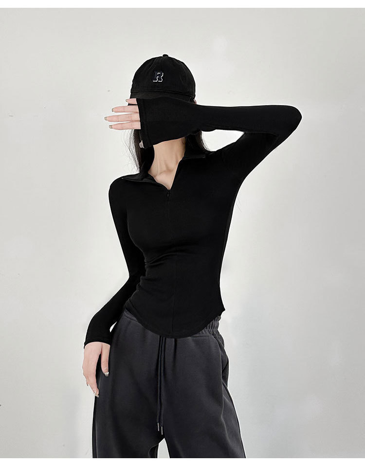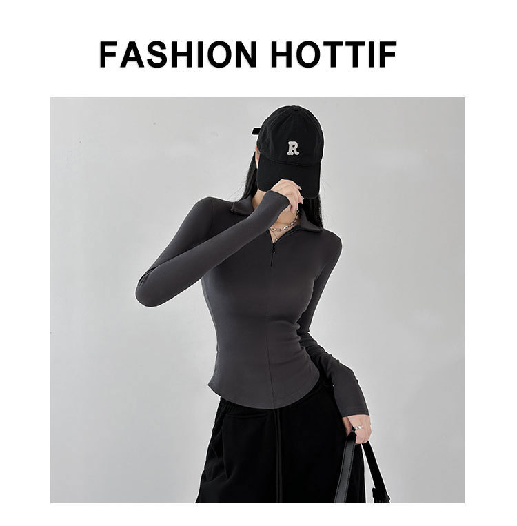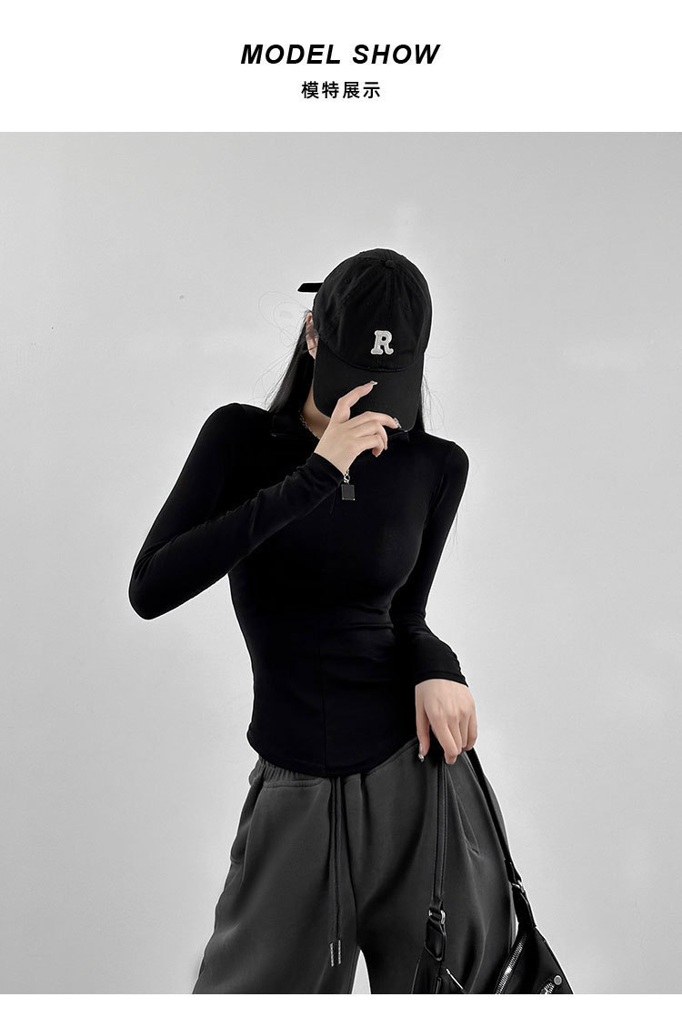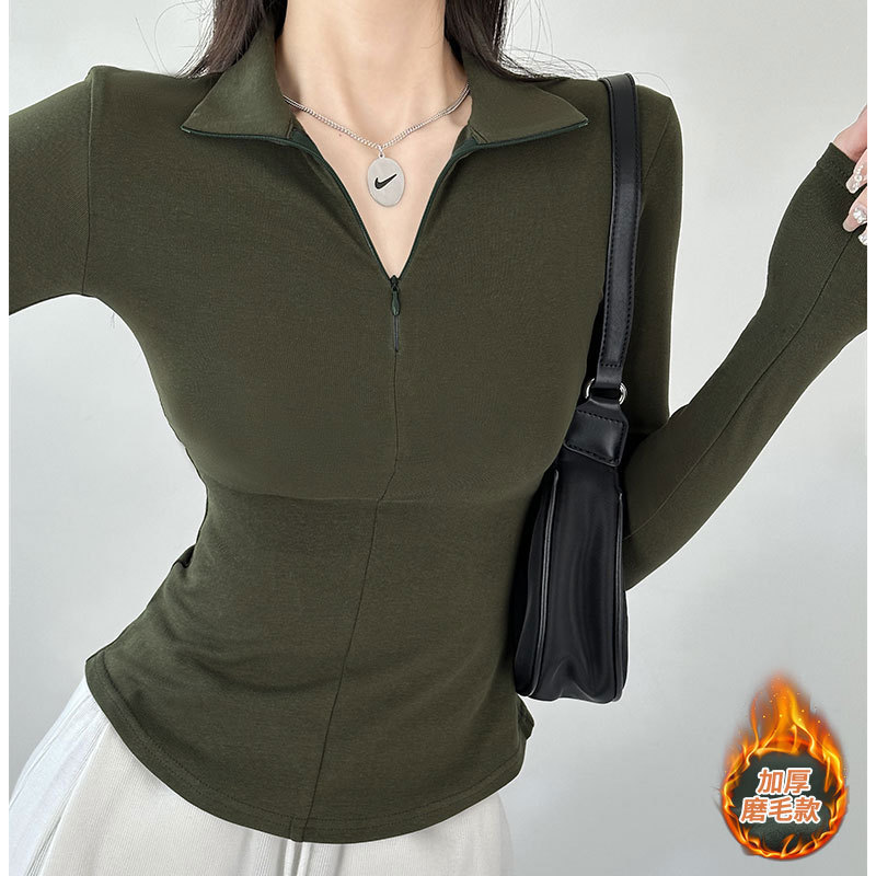긴팔 티셔츠 여성용 2023 새로운 가을과 겨울 슬림핏 슬리밍 블랙 스파이스 걸스 기모 폴로 칼라 탑 베이스 셔츠