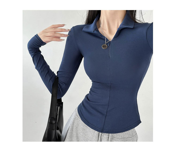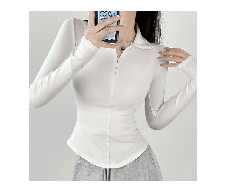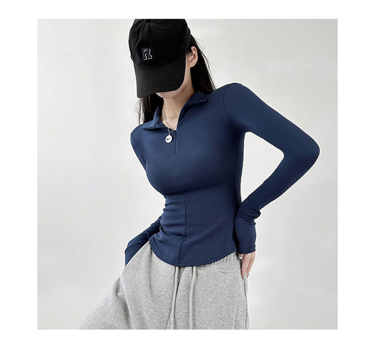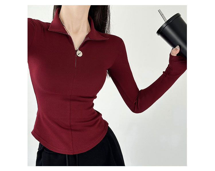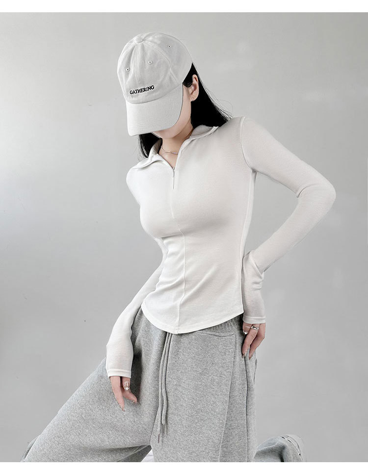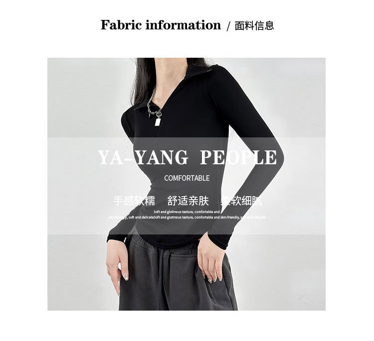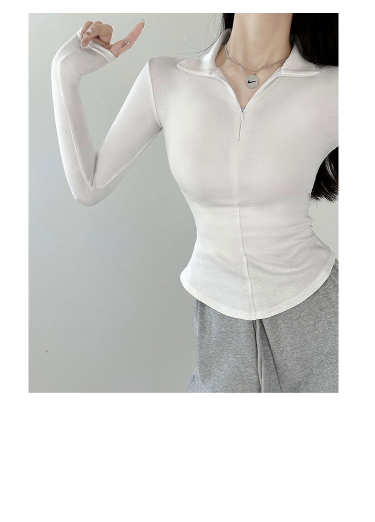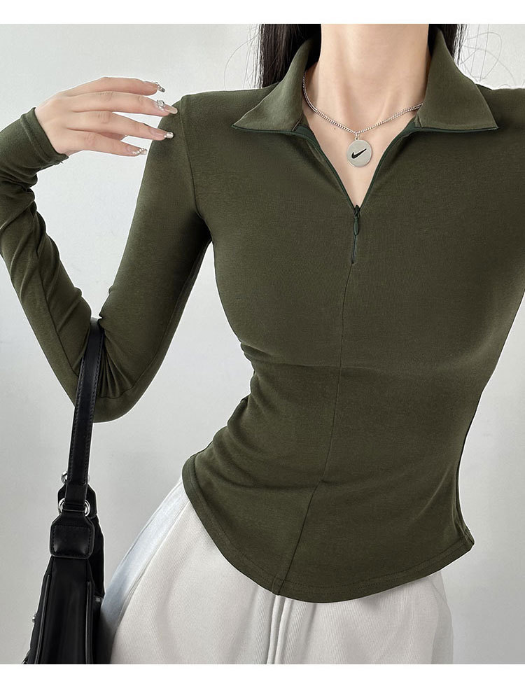 긴팔 티셔츠 여성용 2023 새로운 가을과 겨울 슬림핏 슬리밍 블랙 스파이스 걸스 기모 폴로 칼라 탑 베이스 셔츠