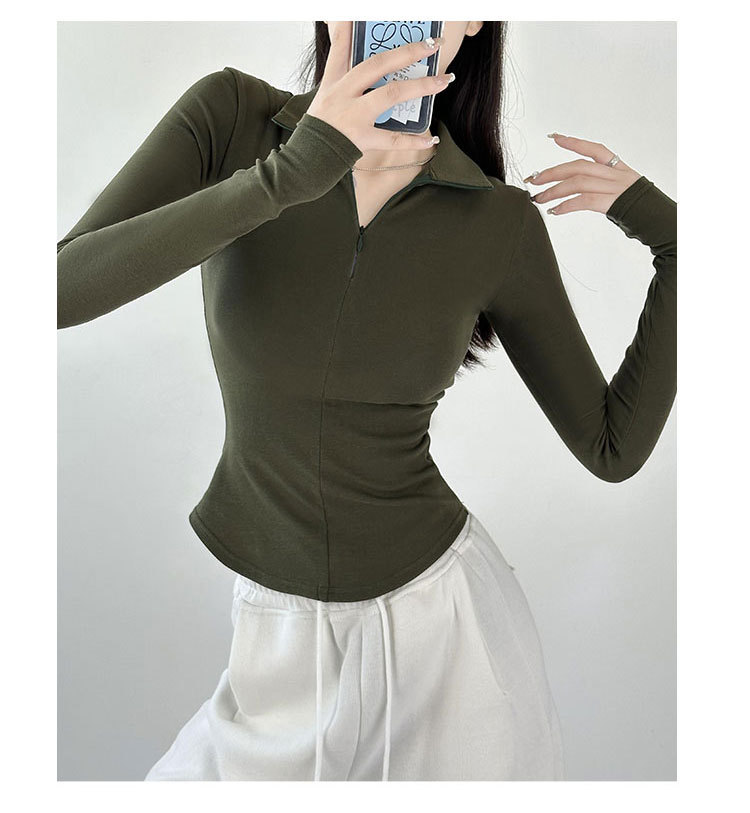 긴팔 티셔츠 여성용 2023 새로운 가을과 겨울 슬림핏 슬리밍 블랙 스파이스 걸스 기모 폴로 칼라 탑 베이스 셔츠스토어 가기