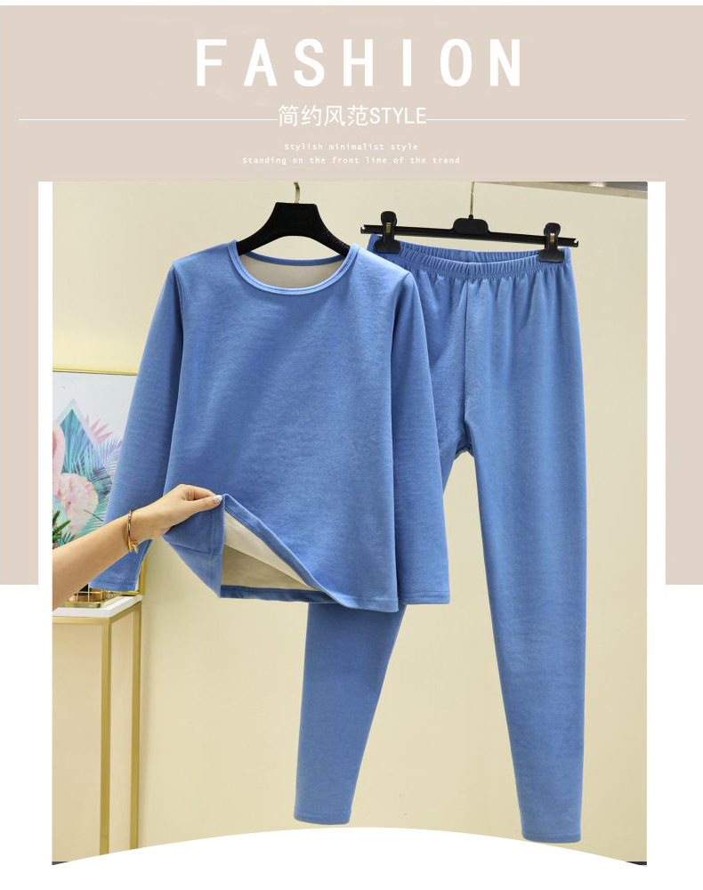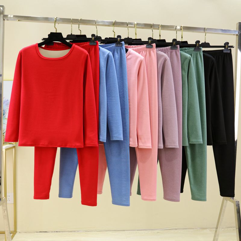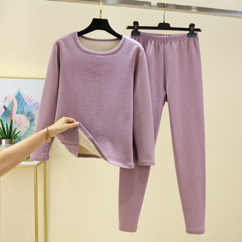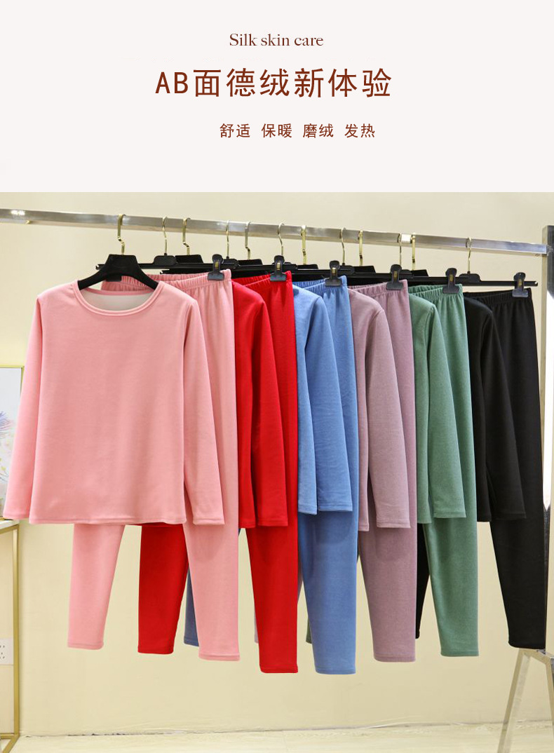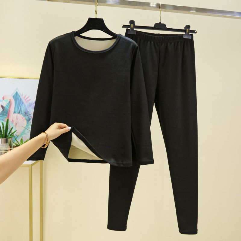여자의 열 속옷 가을과 겨울 바닥 셔츠 de 벨벳 난방 양면 벨벳 패딩 기모 가을 옷 가을 바지 세트스토어 가기