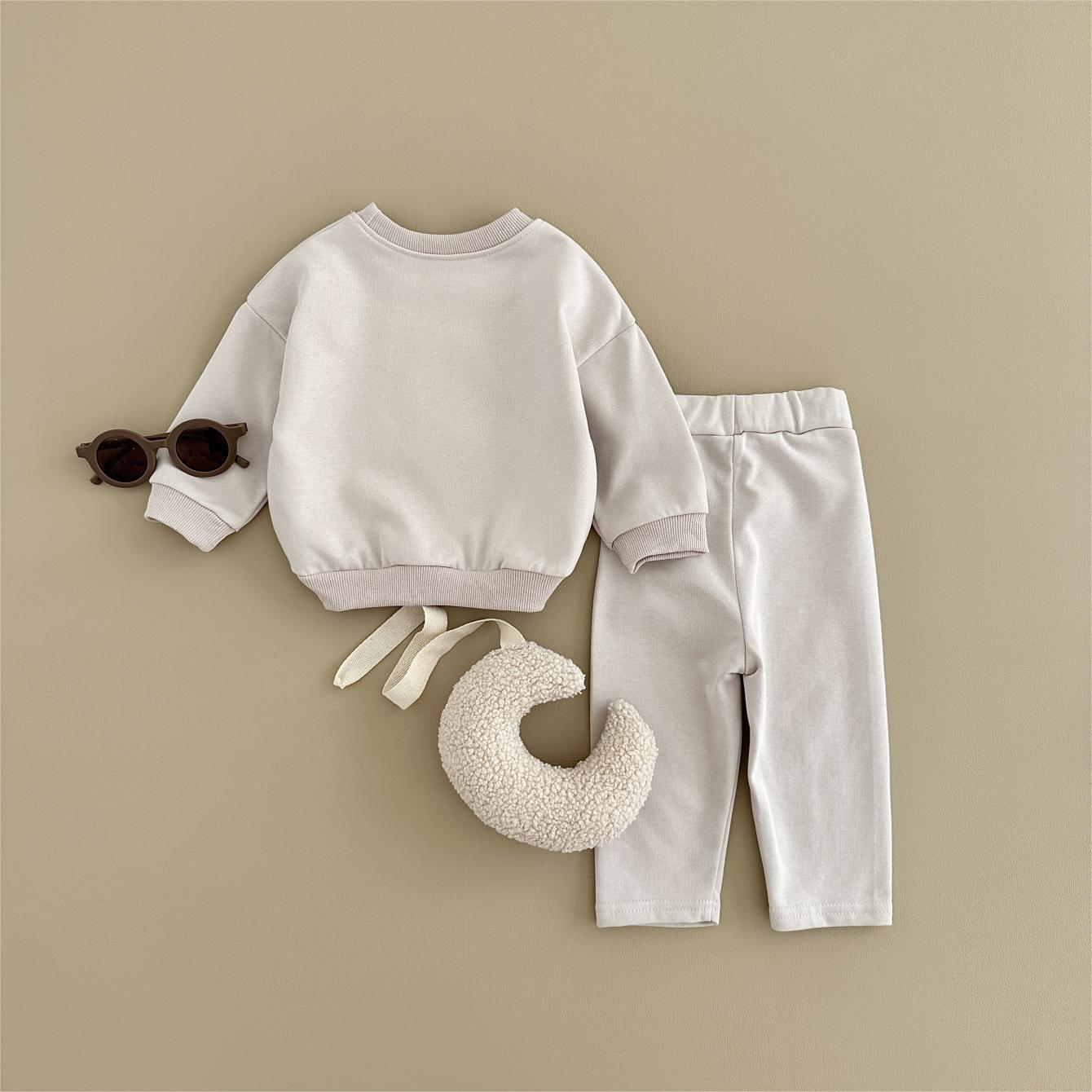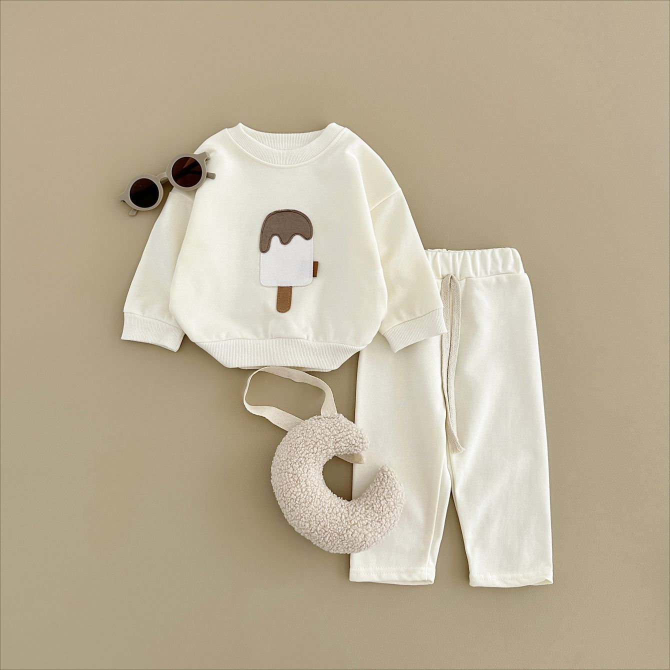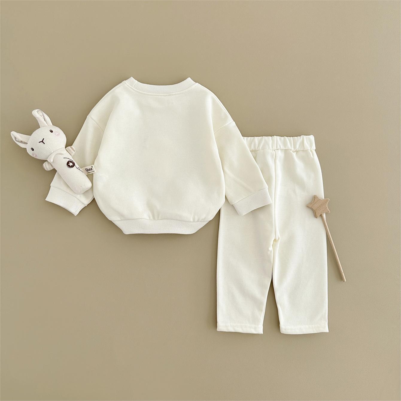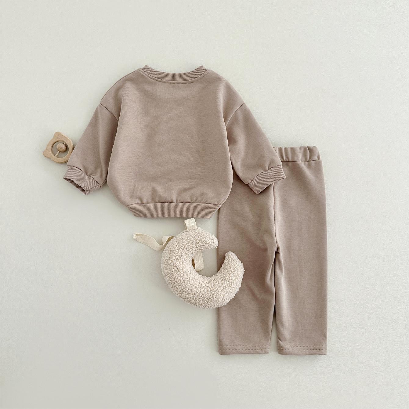 소년과 소녀를위한 투피스 세트 아기 귀여운 아이스크림 새로운 긴팔 바지 아기 세트 캐주얼 스포츠웨어 가을과 겨울스토어 가기