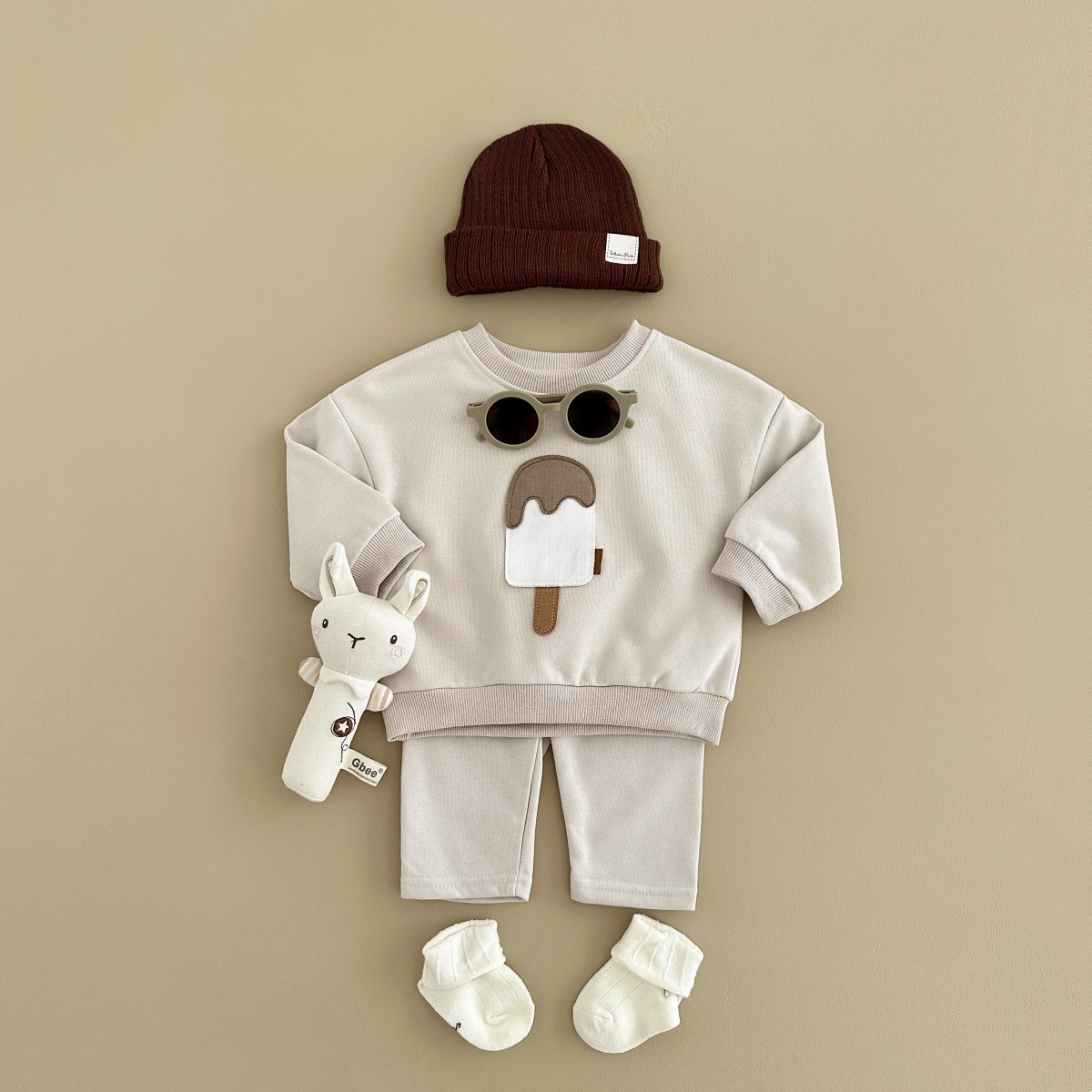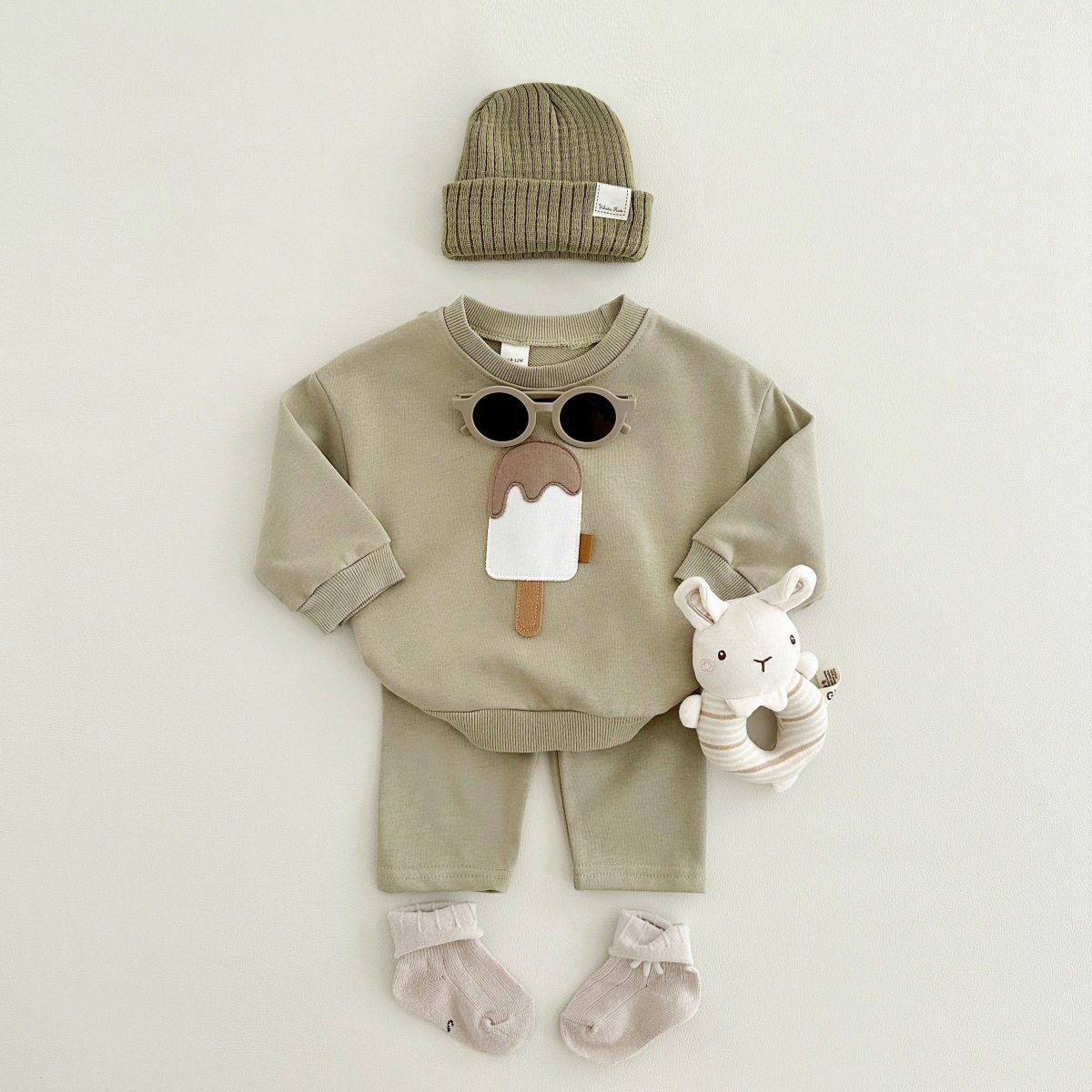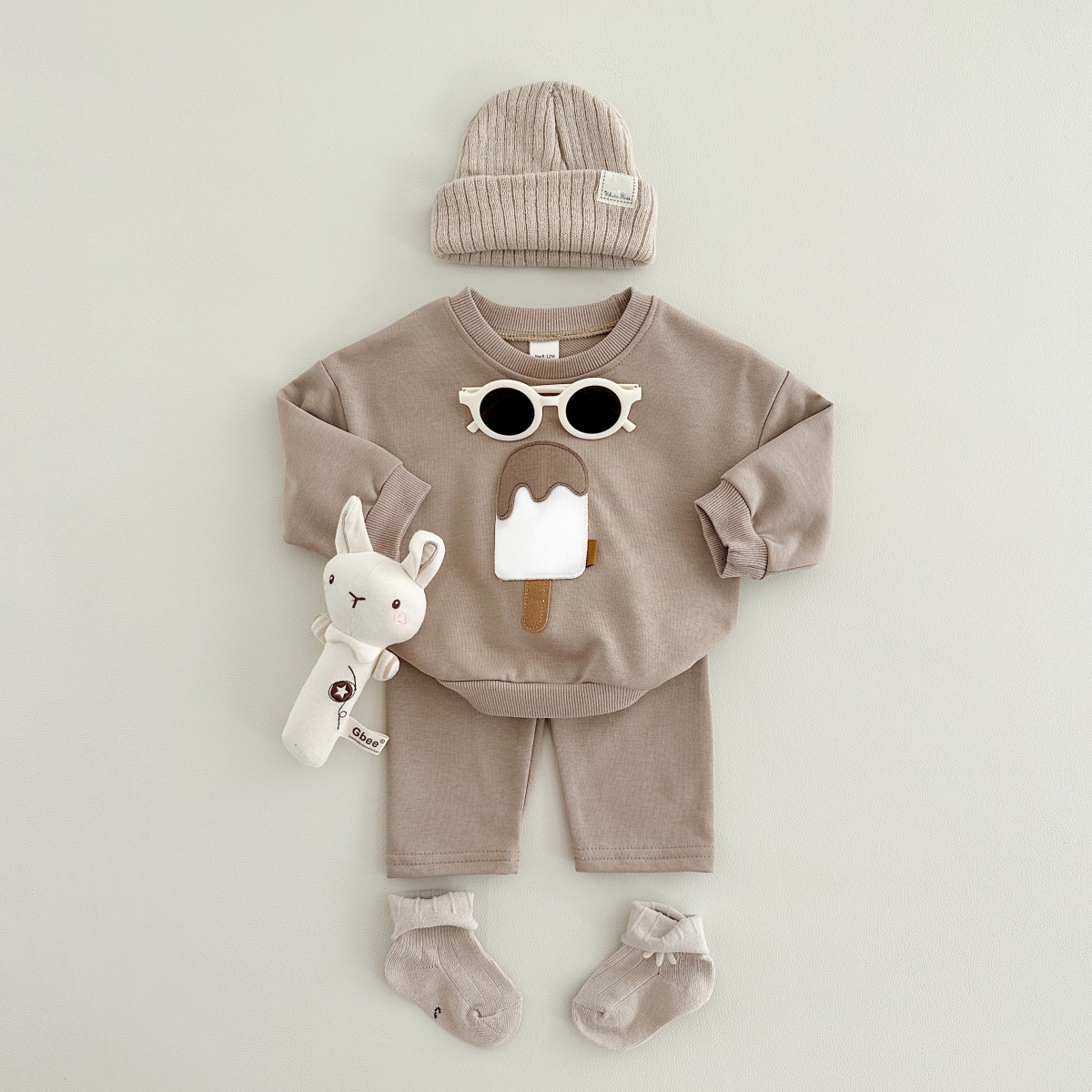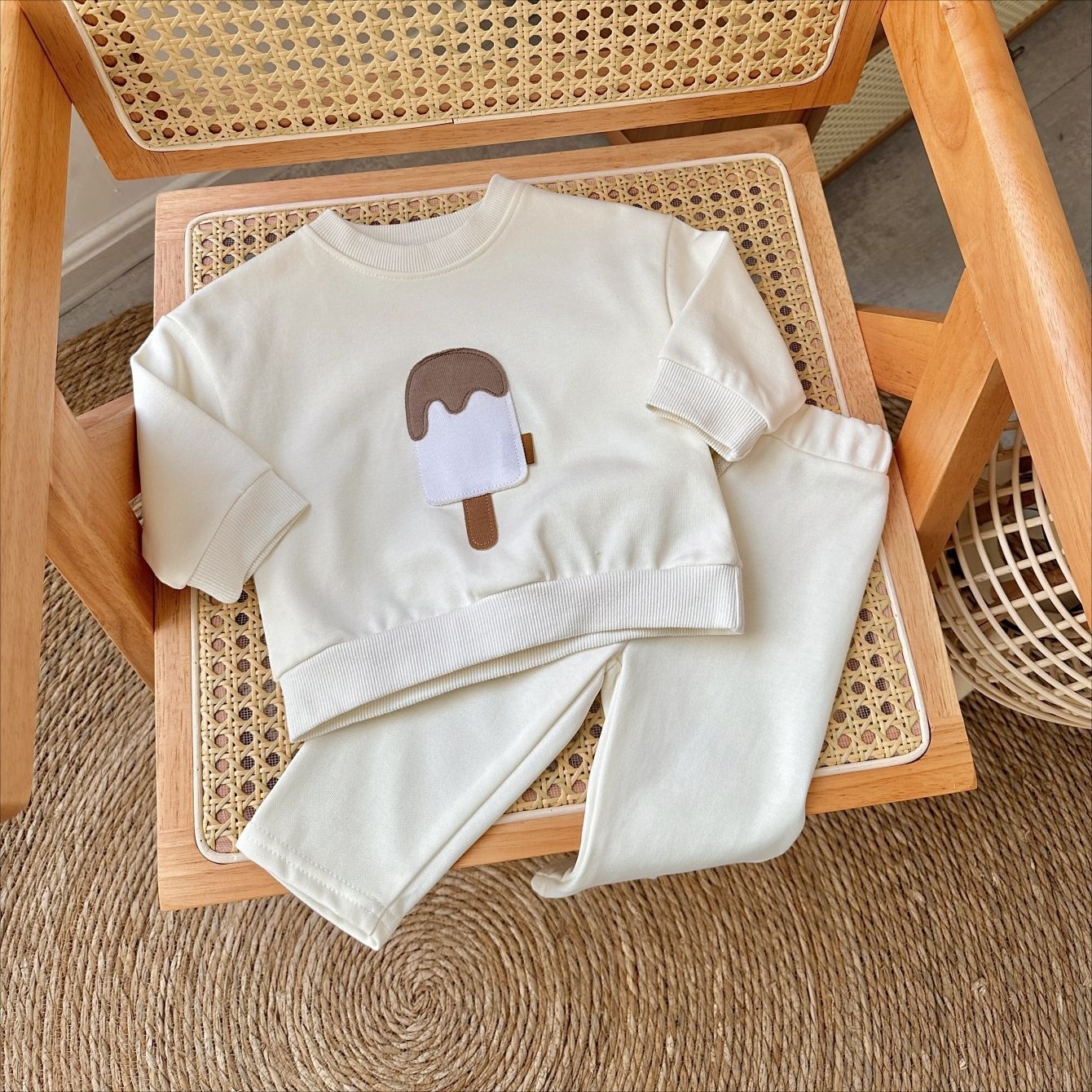 소년과 소녀를위한 투피스 세트 아기 귀여운 아이스크림 새로운 긴팔 바지 아기 세트 캐주얼 스포츠웨어 가을과 겨울스토어 가기