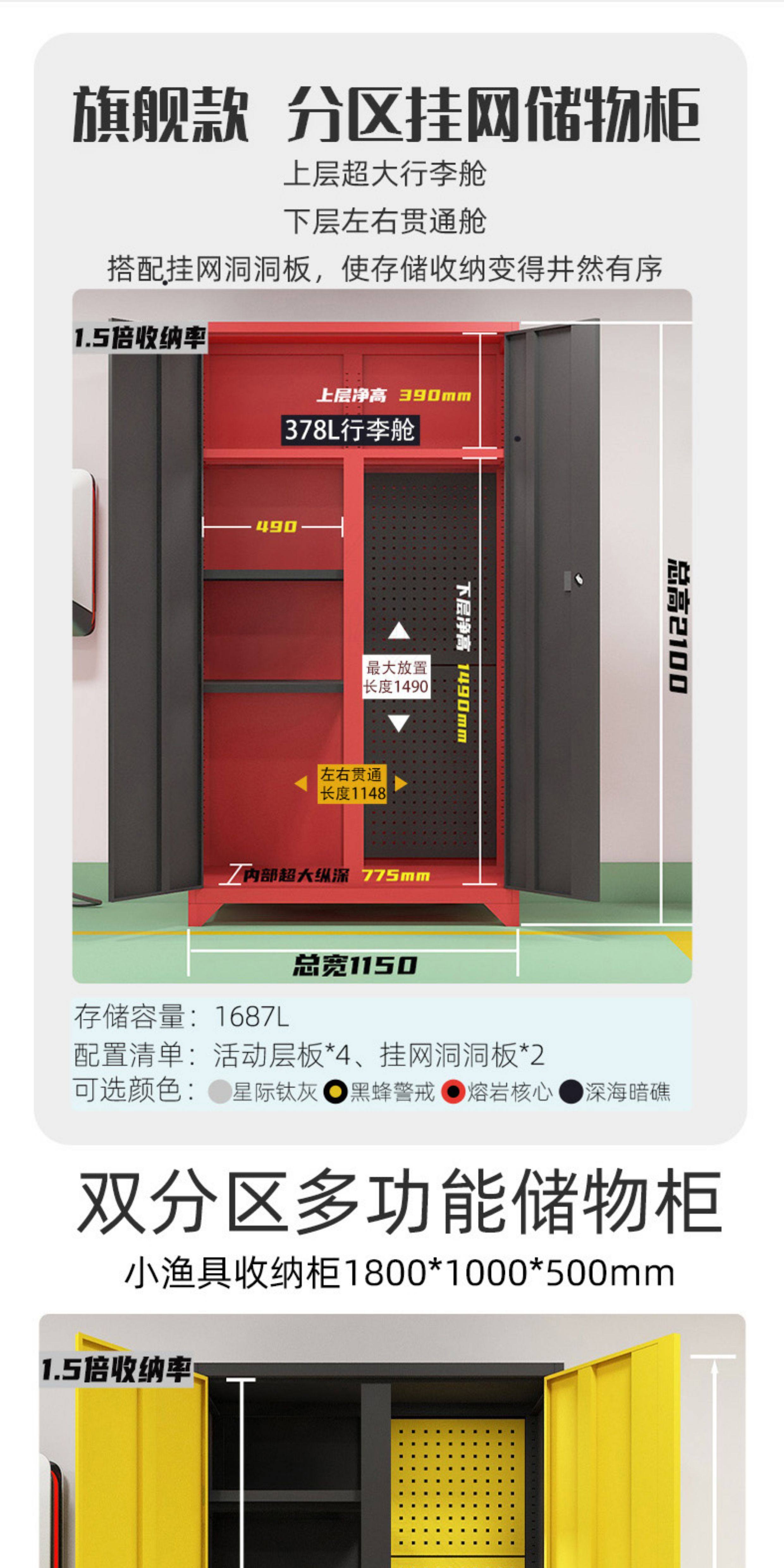 • 빨간색과 검정색 - 1.8m 걸이형 낚시 장비 캐비닛