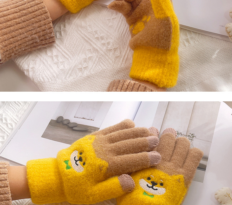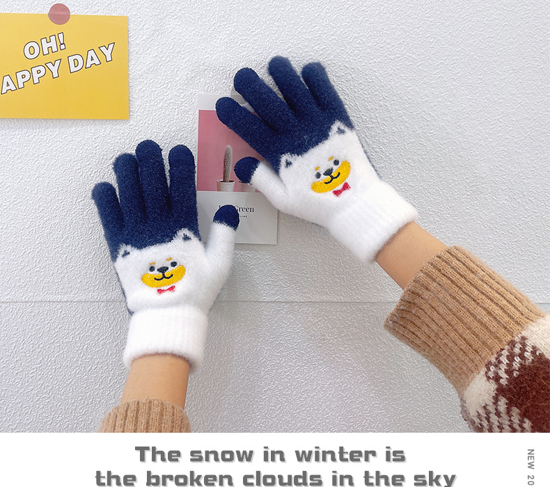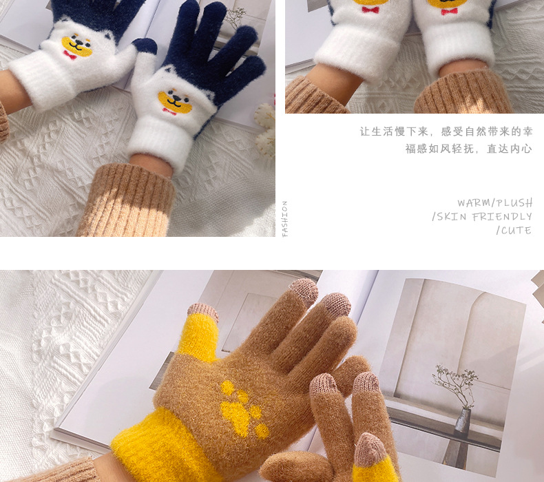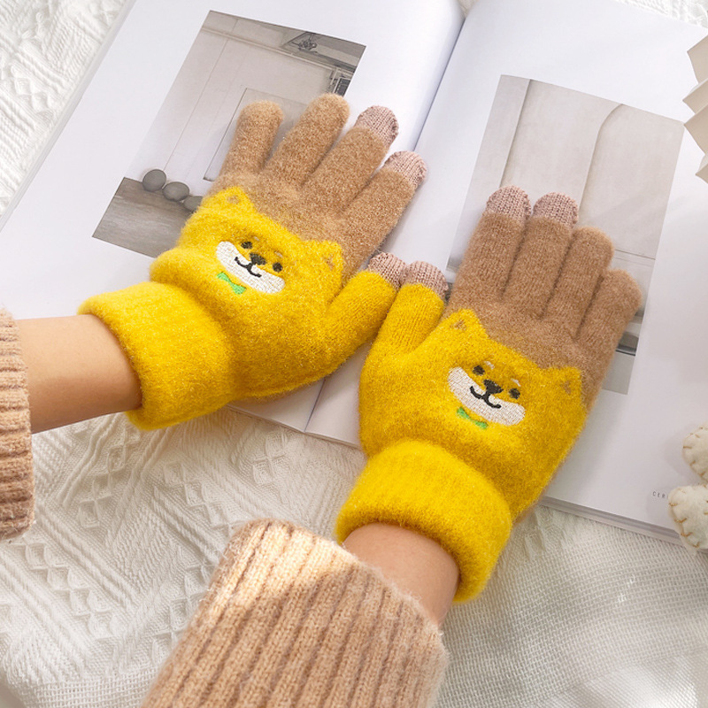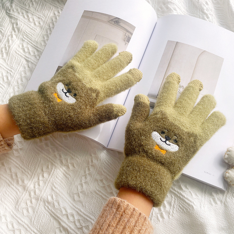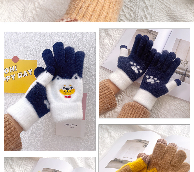 만화 강아지 니트 양모 봉제 장갑 남성용 겨울 기모 두꺼운 따뜻한 방한 터치 스크린 일본식 달콤하고 귀여운스토어 가기