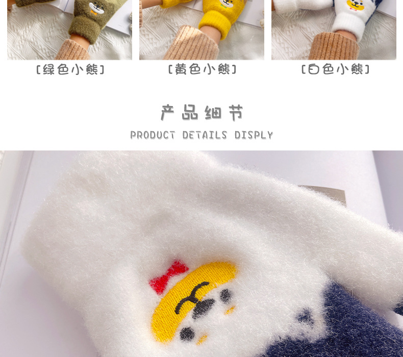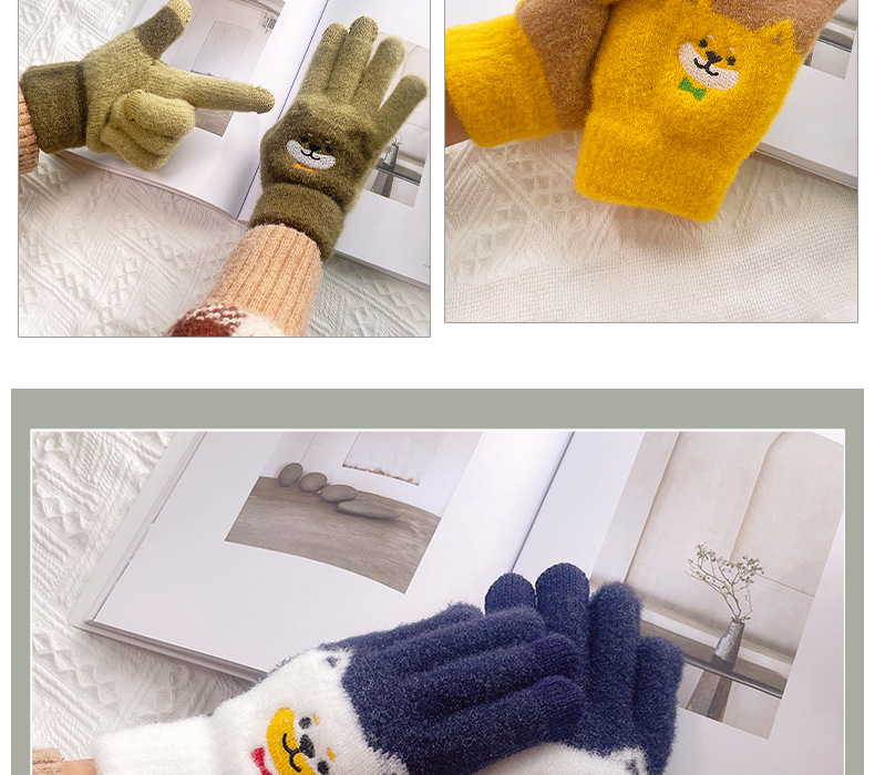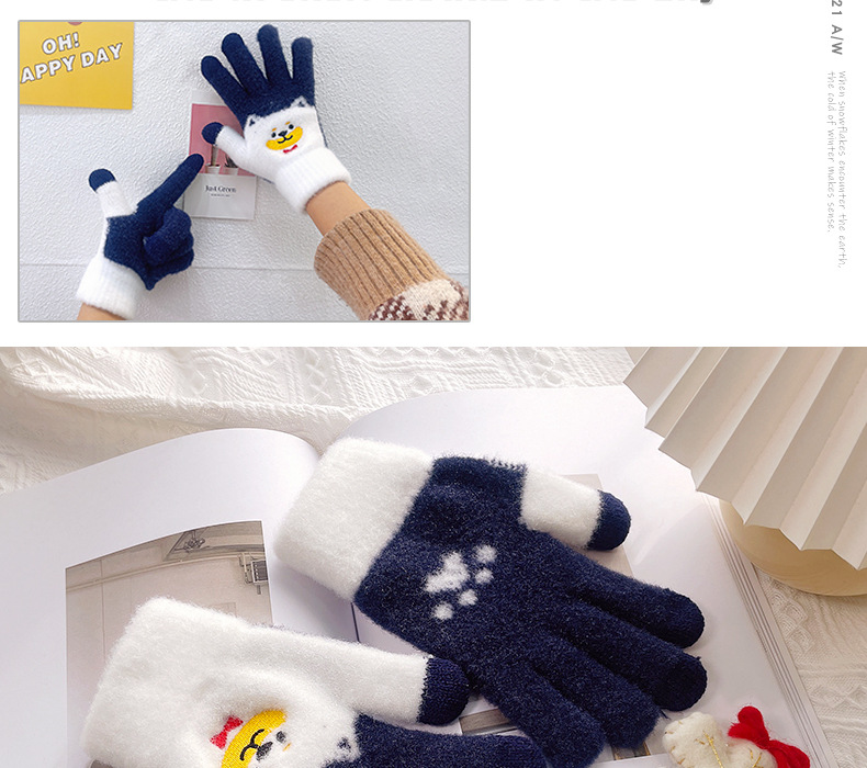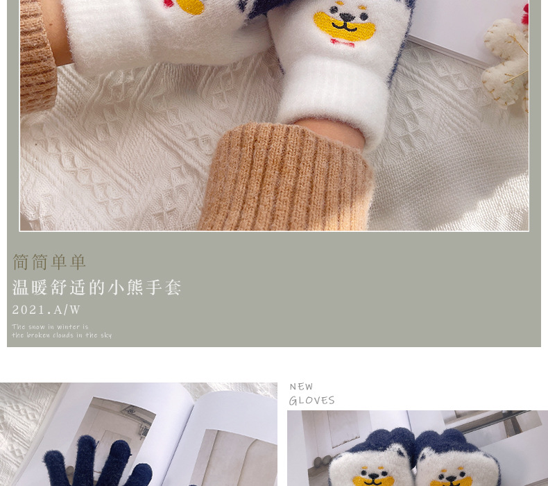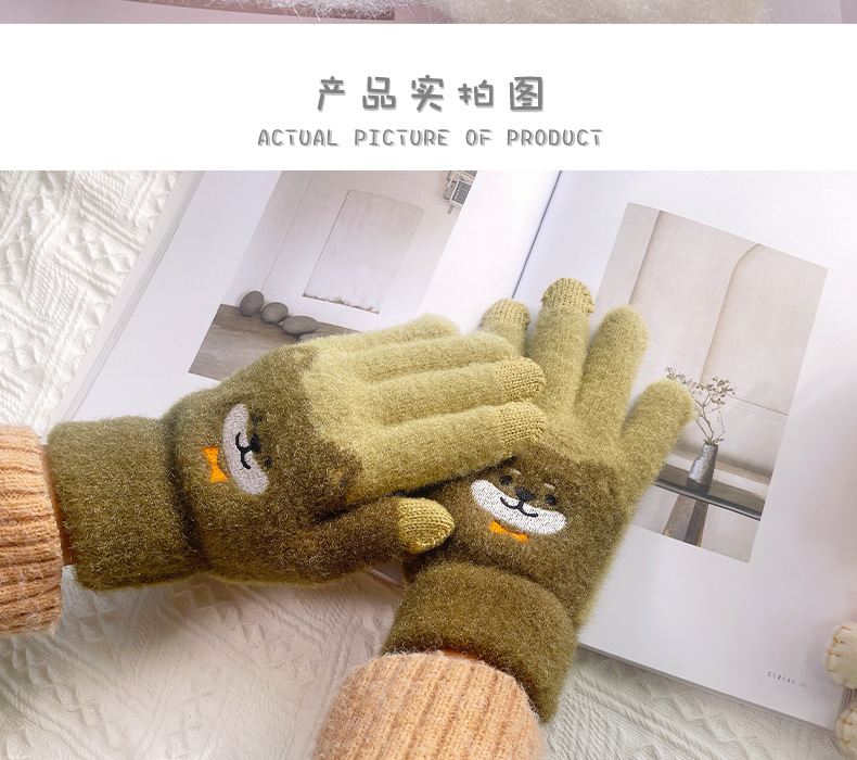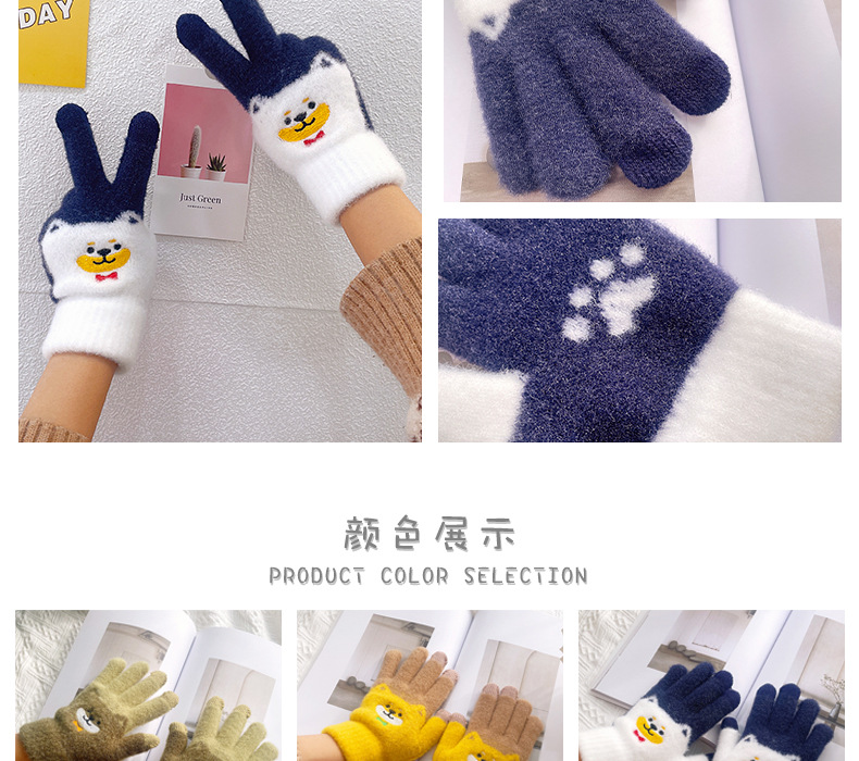 만화 강아지 니트 양모 봉제 장갑 남성용 겨울 기모 두꺼운 따뜻한 방한 터치 스크린 일본식 달콤하고 귀여운스토어 가기