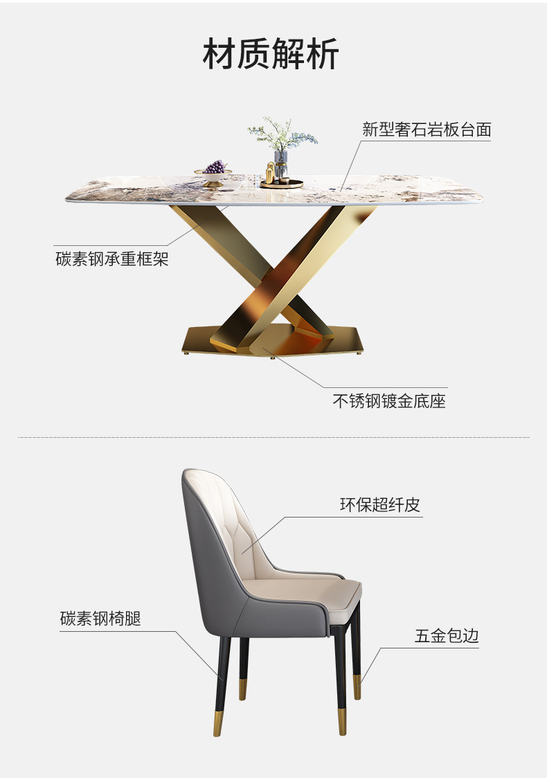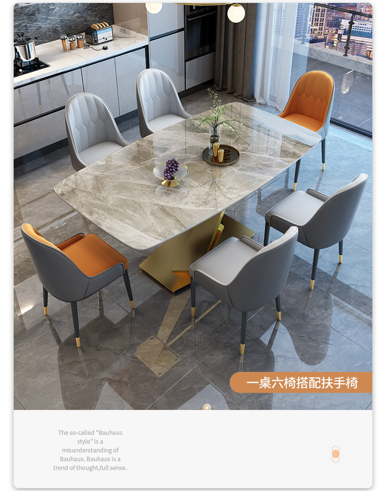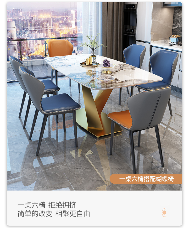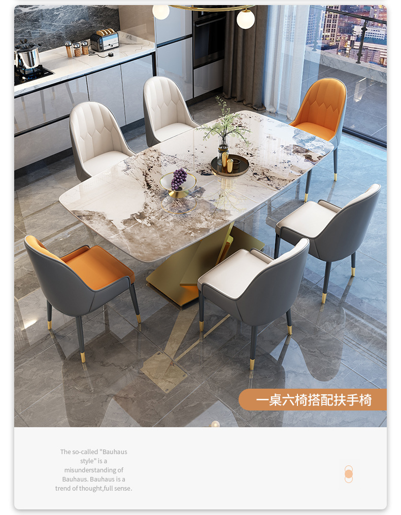 가벼운 럭셔리 락 보드 식탁과 의자 조합 현대 간단한 가정용 소형 아파트 조명 직사각형 다기능 식탁