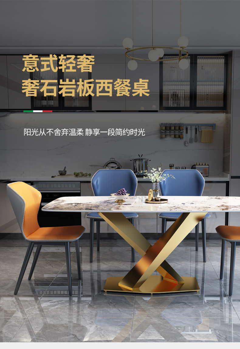 가벼운 럭셔리 락 보드 식탁과 의자 조합 현대 간단한 가정용 소형 아파트 조명 직사각형 다기능 식탁스토어 가기