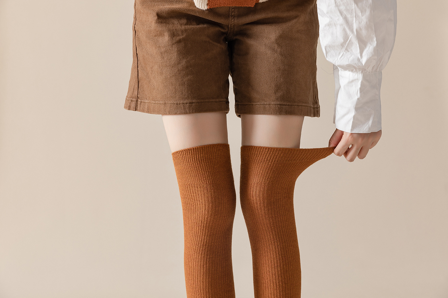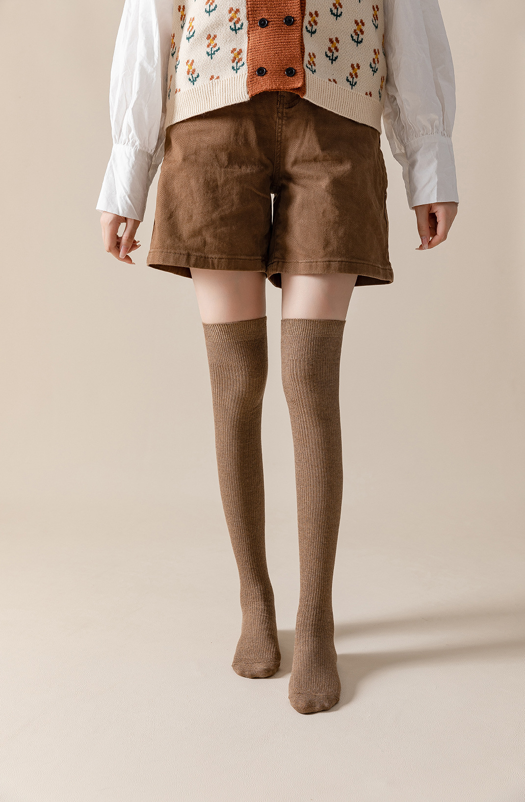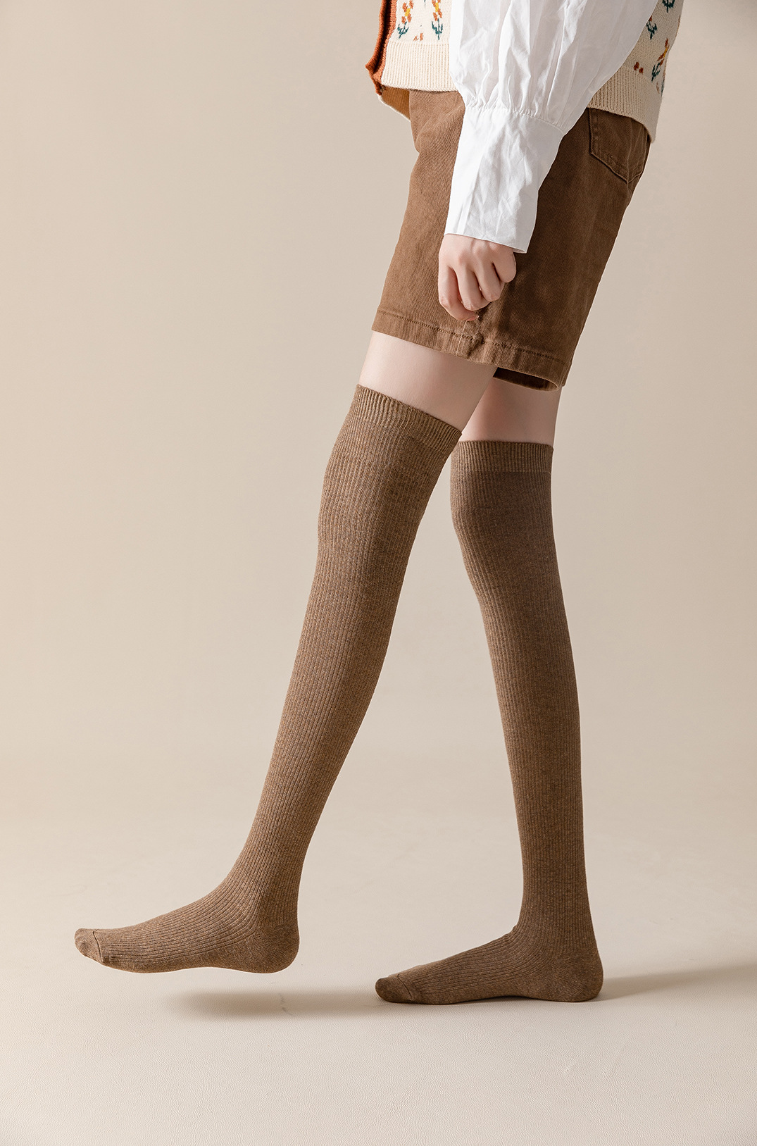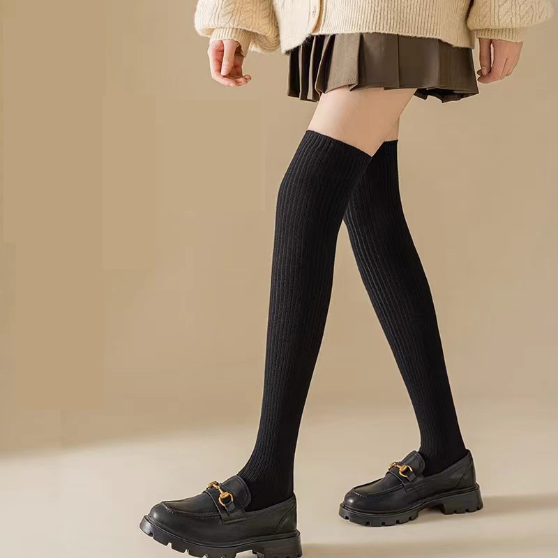 무릎 위 양말 여성의 가을과 겨울 슬리밍 단색 더블 니들 코튼 수직 패턴 JK 파일 양말, 달콤한 대학 트렌디 스타킹