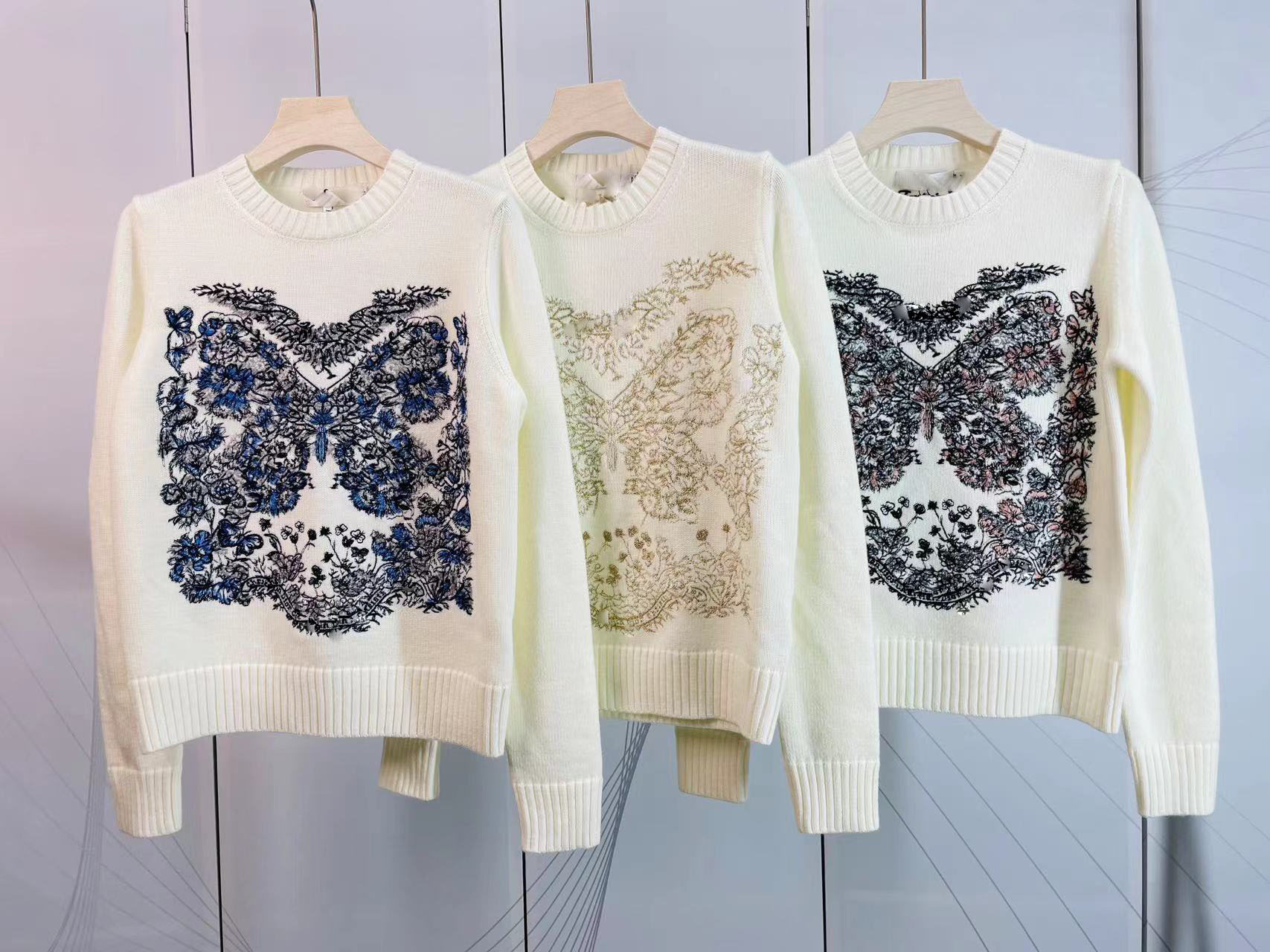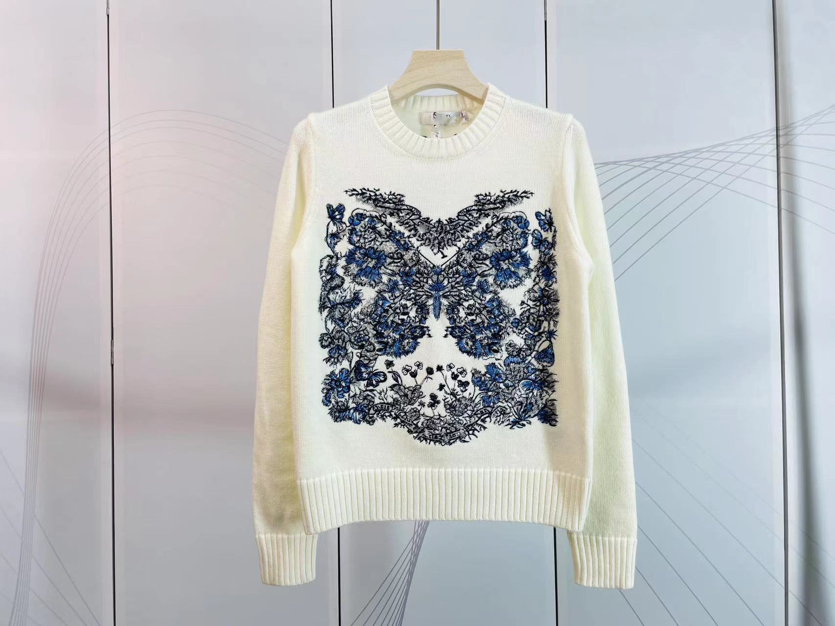 심천 난유 유럽풍 나비 자수 라운드넥 긴팔 니트 캐시미어 스웨터 여성용 이너웨어 캐시미어 자수스토어 가기