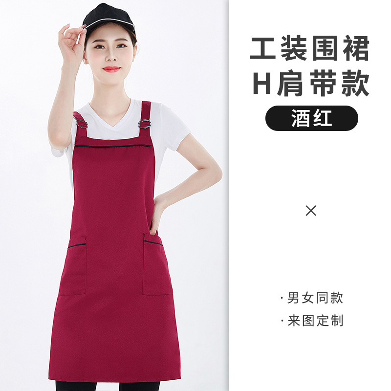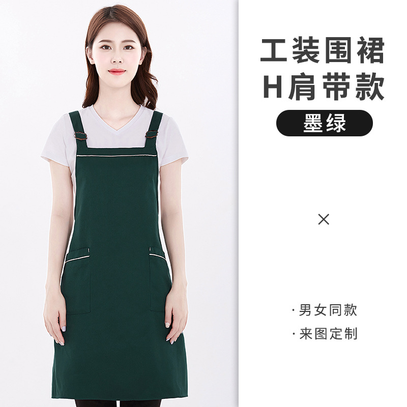앞치마 어깨 스트랩 맞춤형 로고 인쇄 취사 주방 여성 패션 과일 우유 차 가게 허리 작업복 도매
