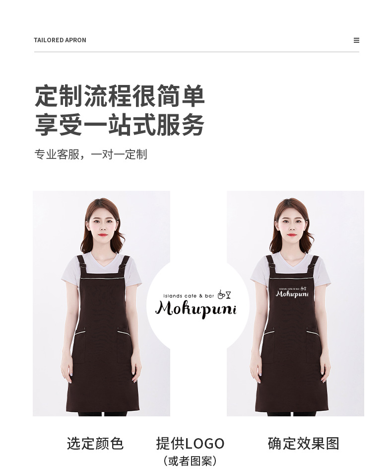 앞치마 어깨 스트랩 맞춤형 로고 인쇄 취사 주방 여성 패션 과일 우유 차 가게 허리 작업복 도매스토어 가기