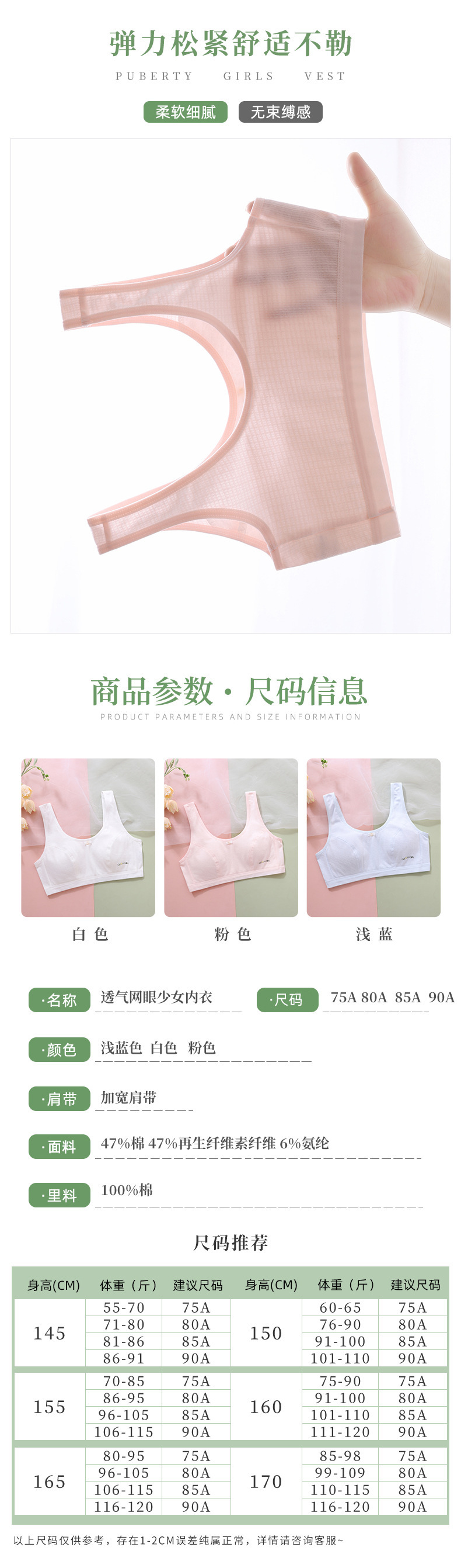 여아 속옷 개발 사춘기 2 단계 조끼 중학생 브래지어 10-16 세 소녀스토어 가기