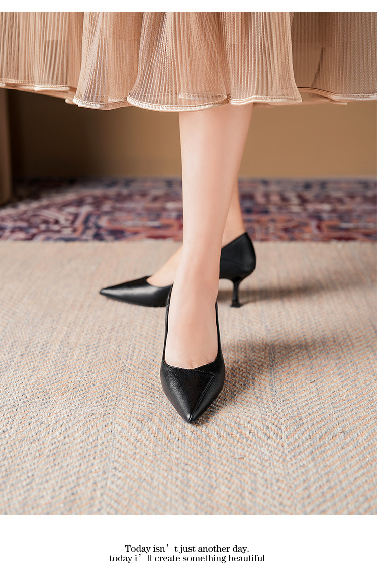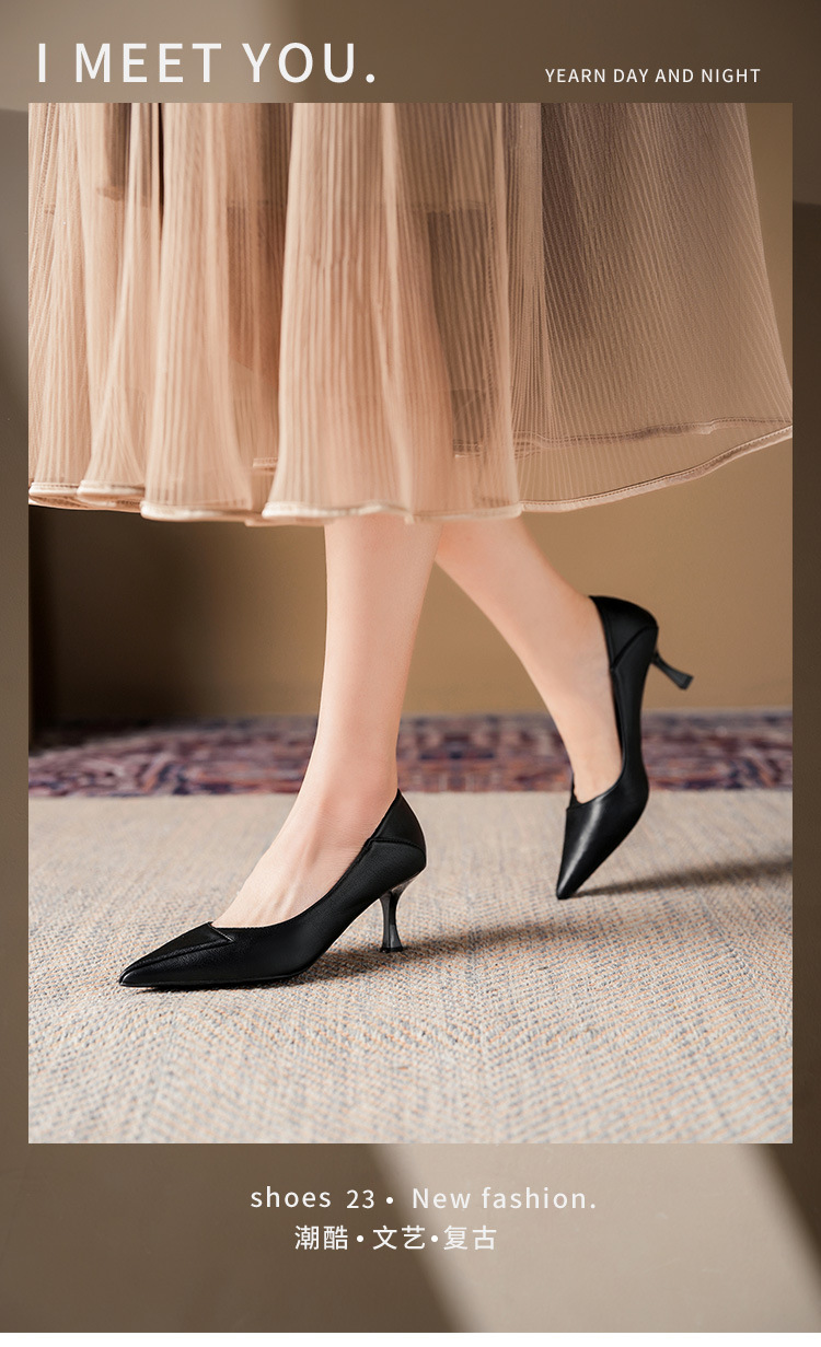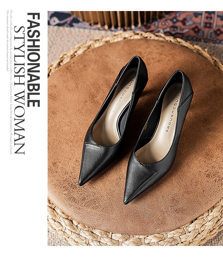 4,616-6 개의 뾰족한 얇은 뒤꿈치 신발 여성 봄과 가을 새로운 가죽 얕은 하이힐 조커 전문 패션 여성 신발스토어 가기