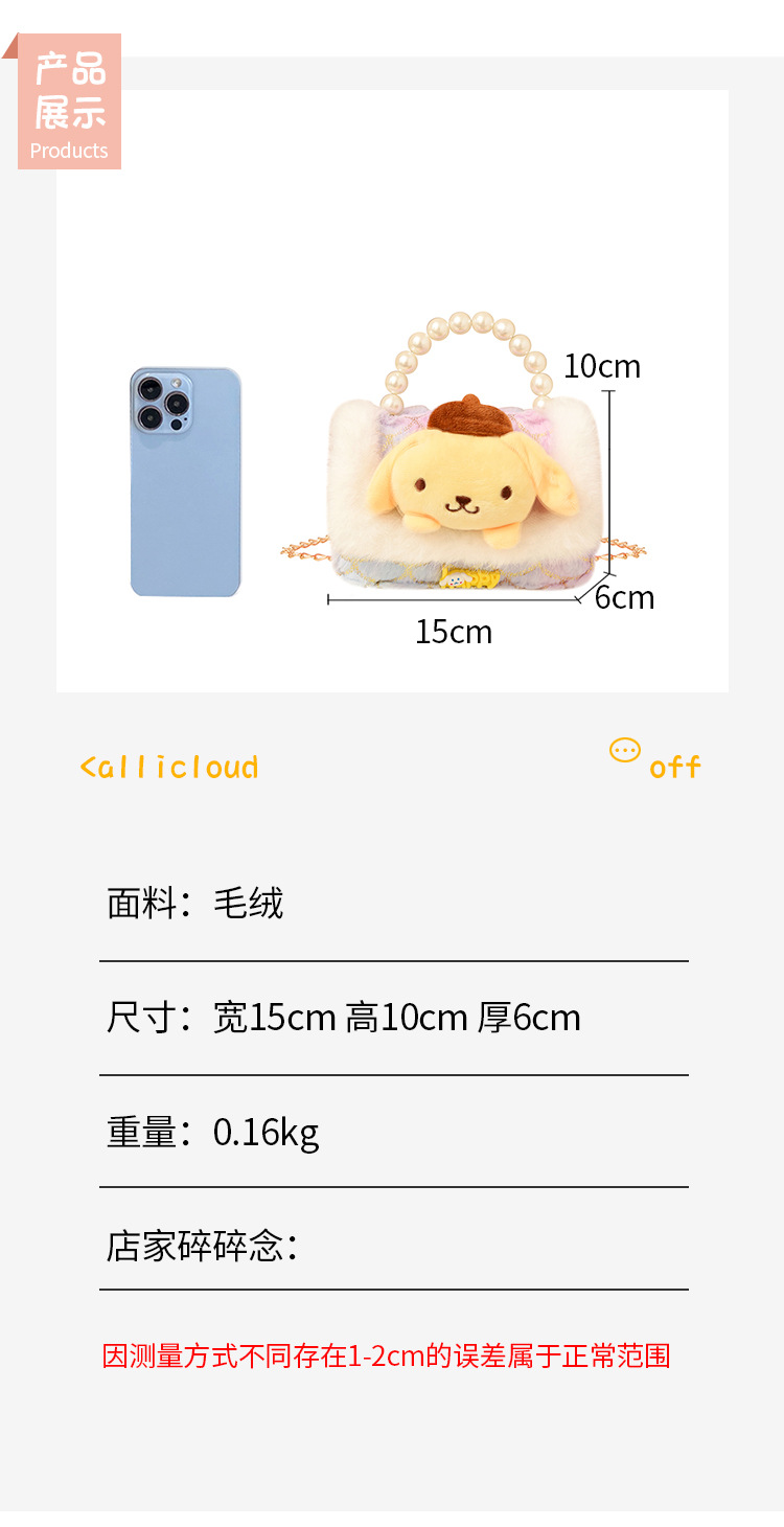 크로스백 쿠로미 어린이 가방 인기 공주 크로스백 핸드백 작은 향수풍 패션 동전 지갑 도매 어린이용스토어 가기