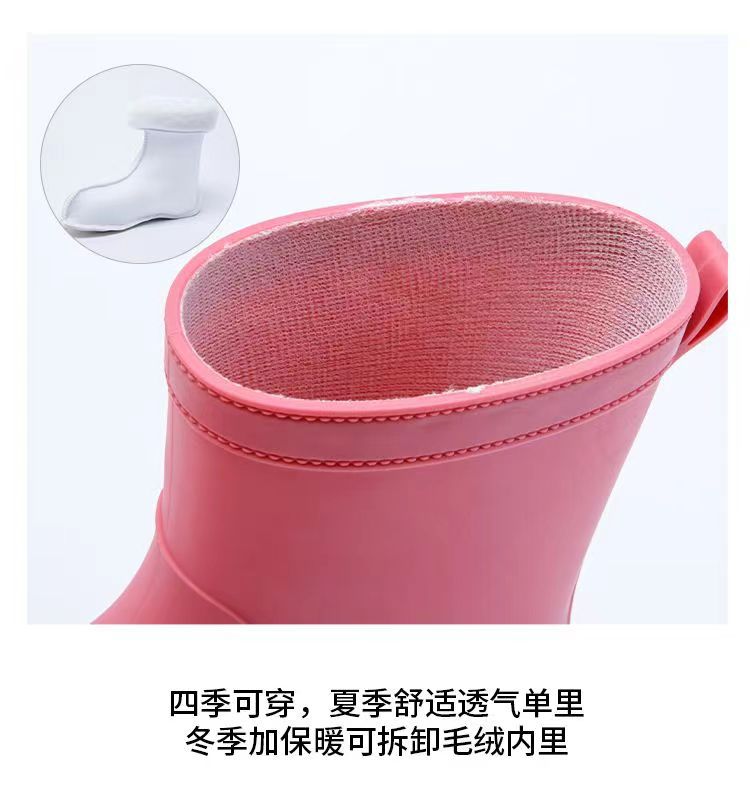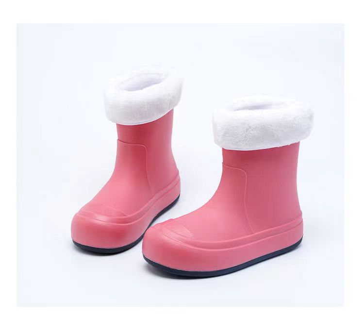 귀여운 어린이 장화, 가벼운 학생용 워터슈즈, 중대형 어린이용 아우터 방수 장화, 부모-자식 벨벳 따뜻한 고무신스토어 가기