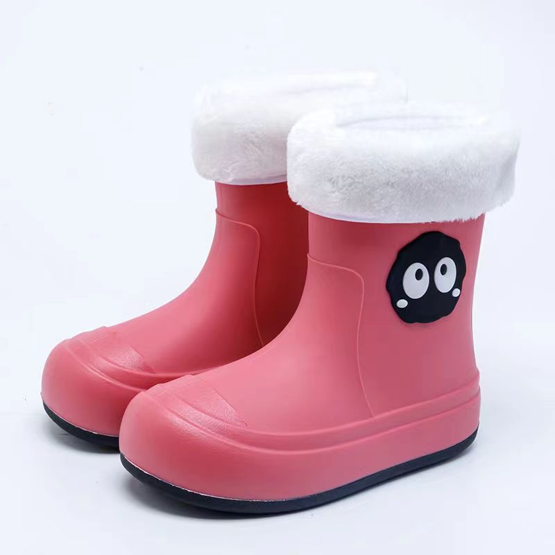 귀여운 어린이 장화, 가벼운 학생용 워터슈즈, 중대형 어린이용 아우터 방수 장화, 부모-자식 벨벳 따뜻한 고무신