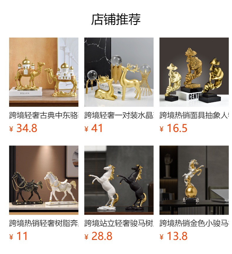 국경을 넘는 수지 고전 예술 낙타 조각 장식품 가정용 와인 캐비닛 거실 현관 텔레비전 캐비닛 장식 수공예품스토어 가기