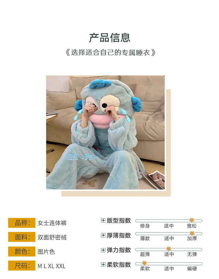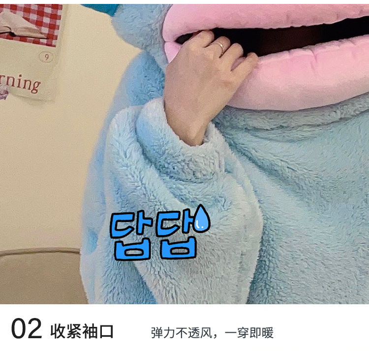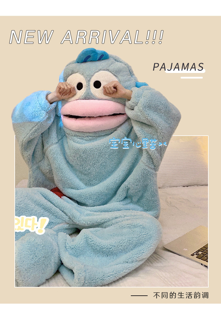 한톤 못생긴 물고기 원피스 잠옷 여성용 산호 양털 두꺼운 따뜻한 가을과 겨울 만화 재미있는 커플의 남성용 긴 잠옷스토어 가기