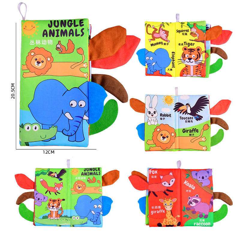 • 큰 사이즈 4페이지 8면 숲속 꼬리 소리 나는 천 소재 아기 그림책
