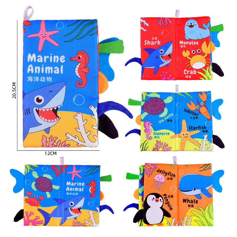 • 대형 4페이지 8면 바다 꼬리 천 소재 아기 그림책 (사운드 페이퍼 내장)