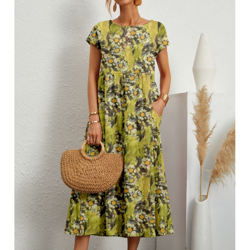 2023 크로스 국경 대외 무역 유럽과 미국 새로운 패션 숙녀 느슨한 면 민소매 라운드 넥 인쇄 여름 원피스스토어 가기