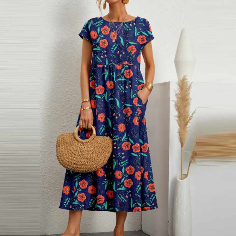 2023 크로스 국경 대외 무역 유럽과 미국 새로운 패션 숙녀 느슨한 면 민소매 라운드 넥 인쇄 여름 원피스