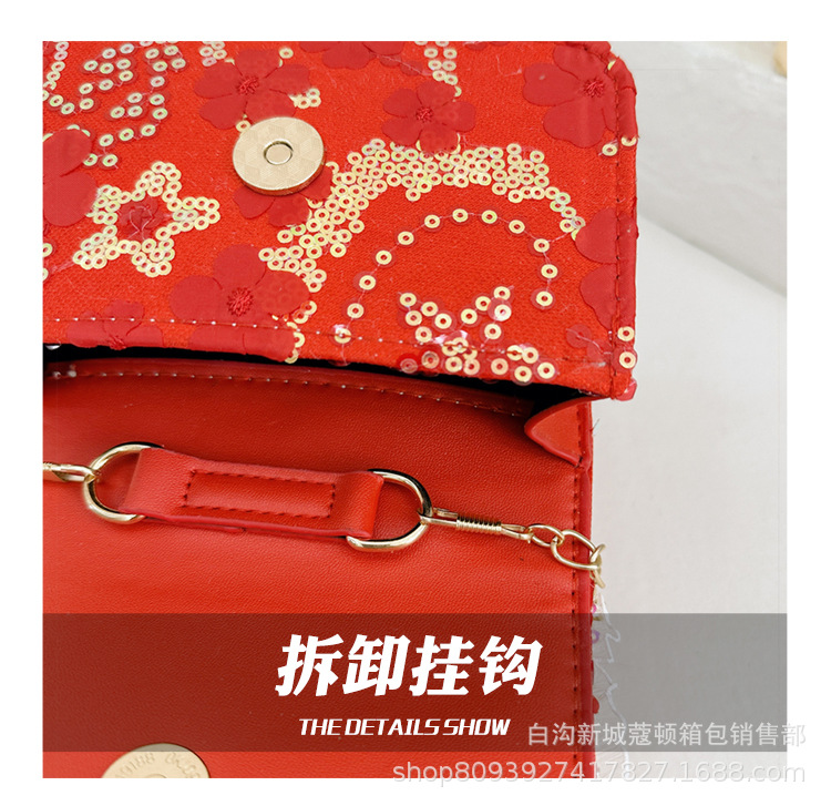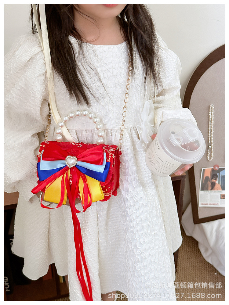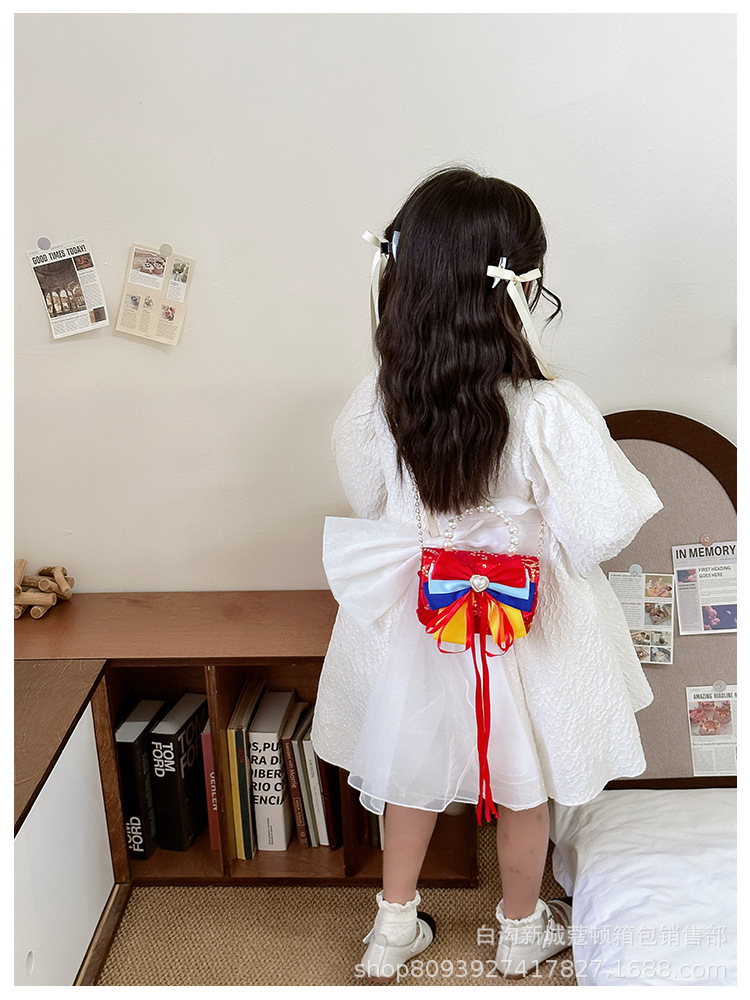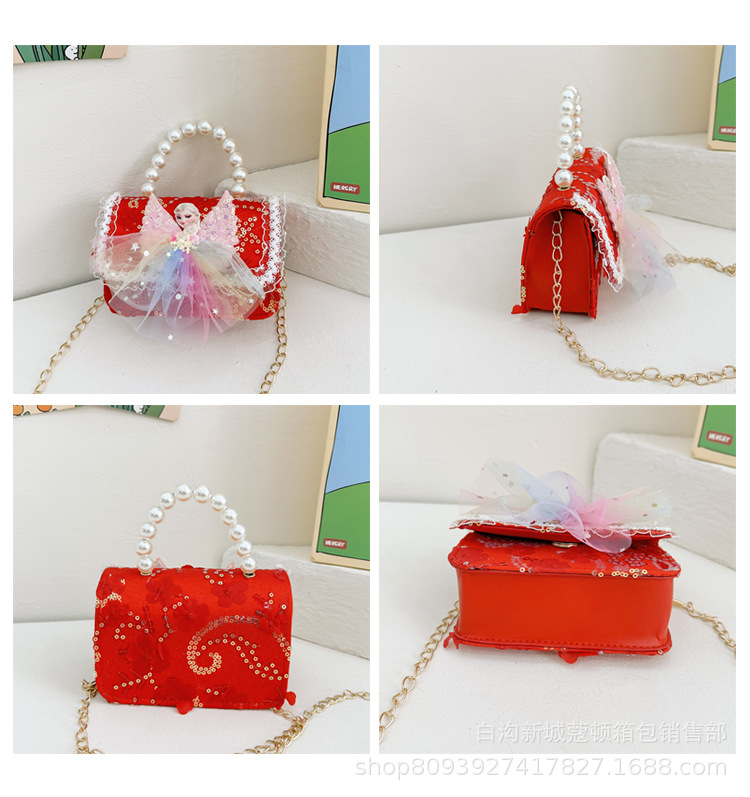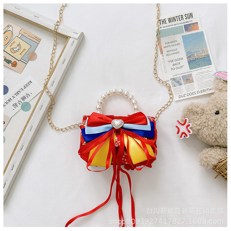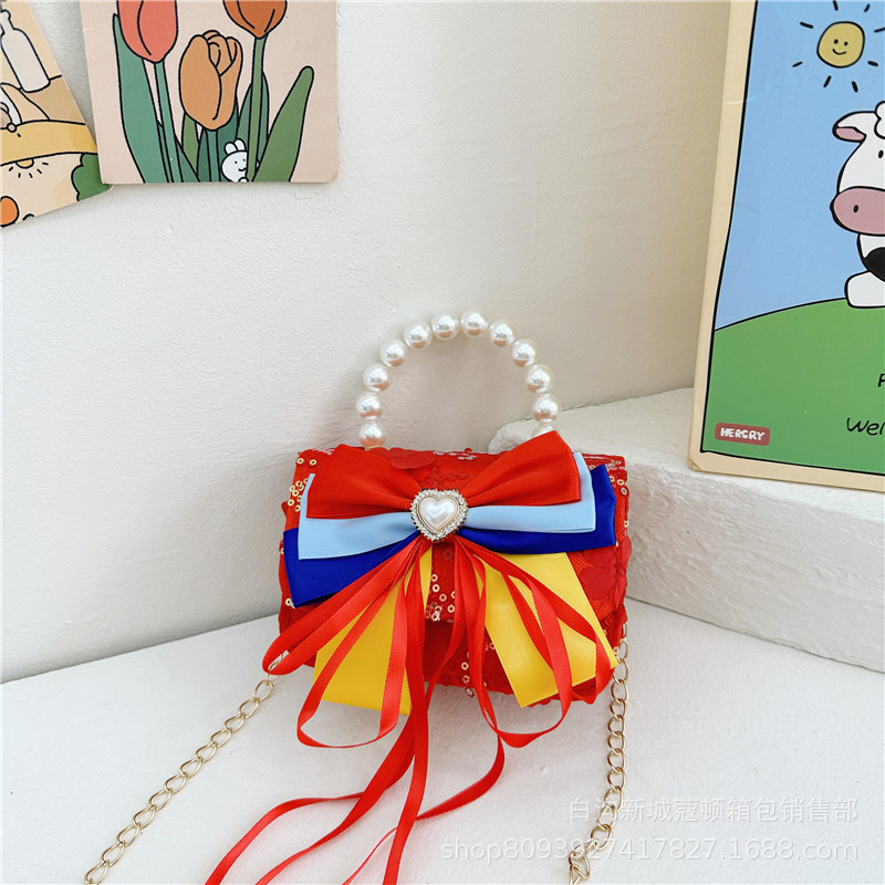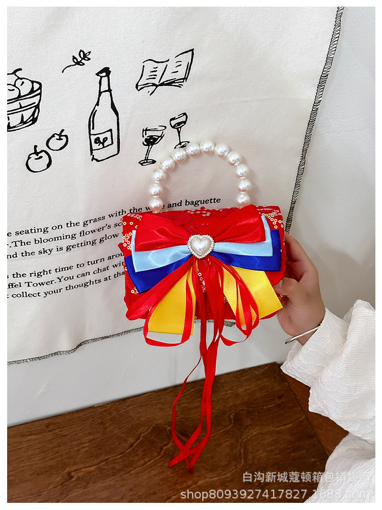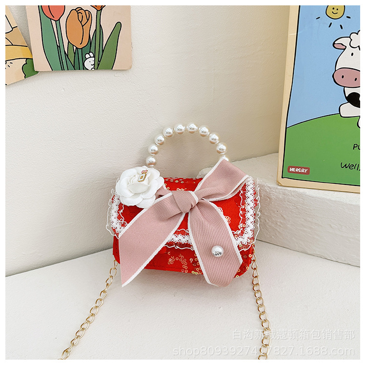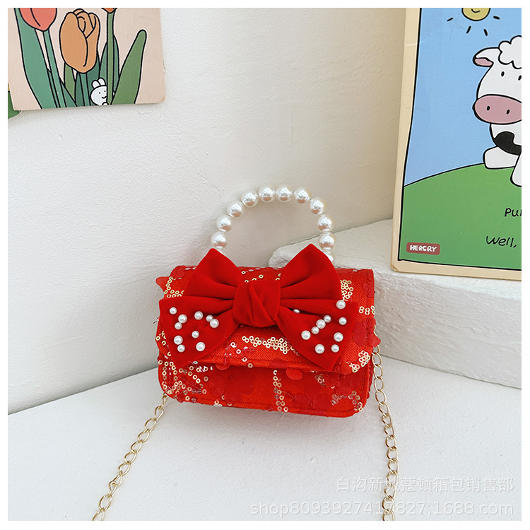 새해 빨간 샤넬 스타일 어린이 진주 핸드백 아기 귀여운 활 체인 가방 소녀 동전 지갑