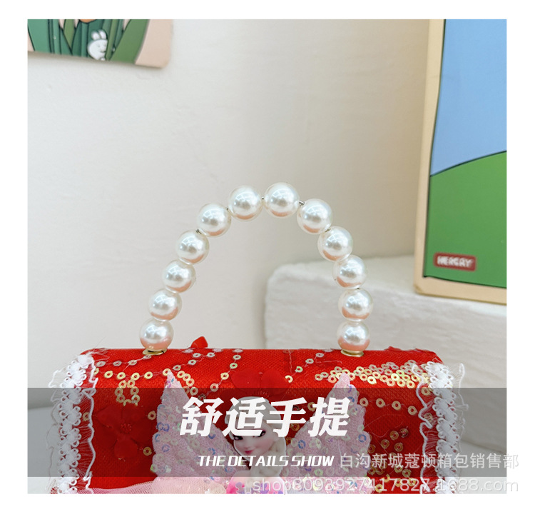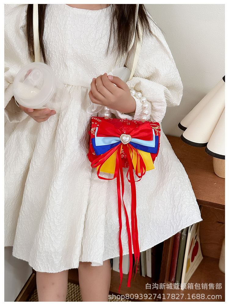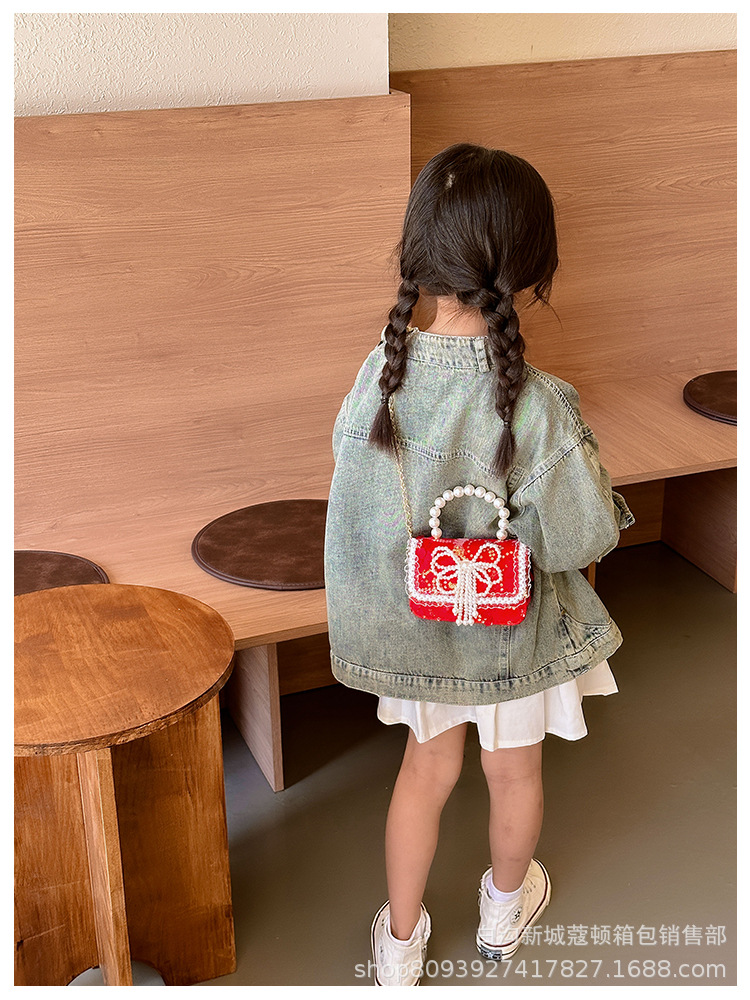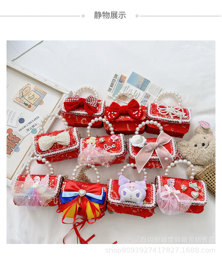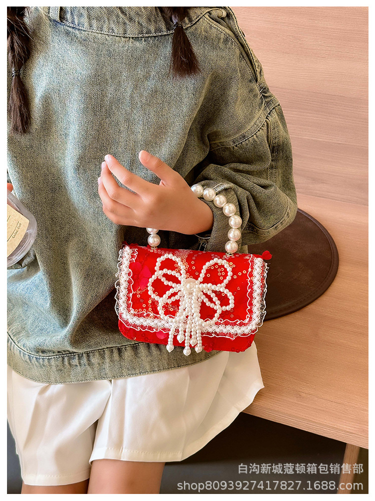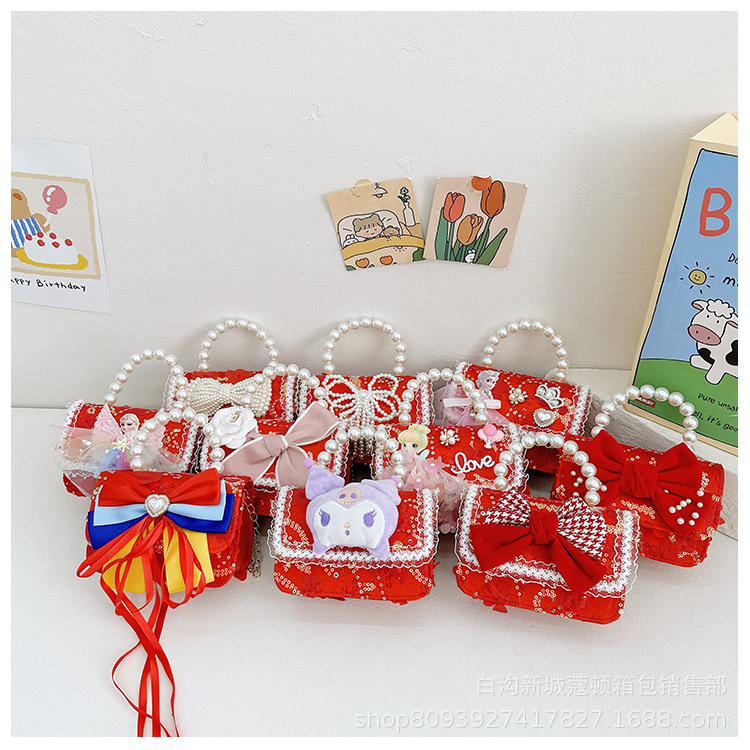 새해 빨간 샤넬 스타일 어린이 진주 핸드백 아기 귀여운 활 체인 가방 소녀 동전 지갑스토어 가기
